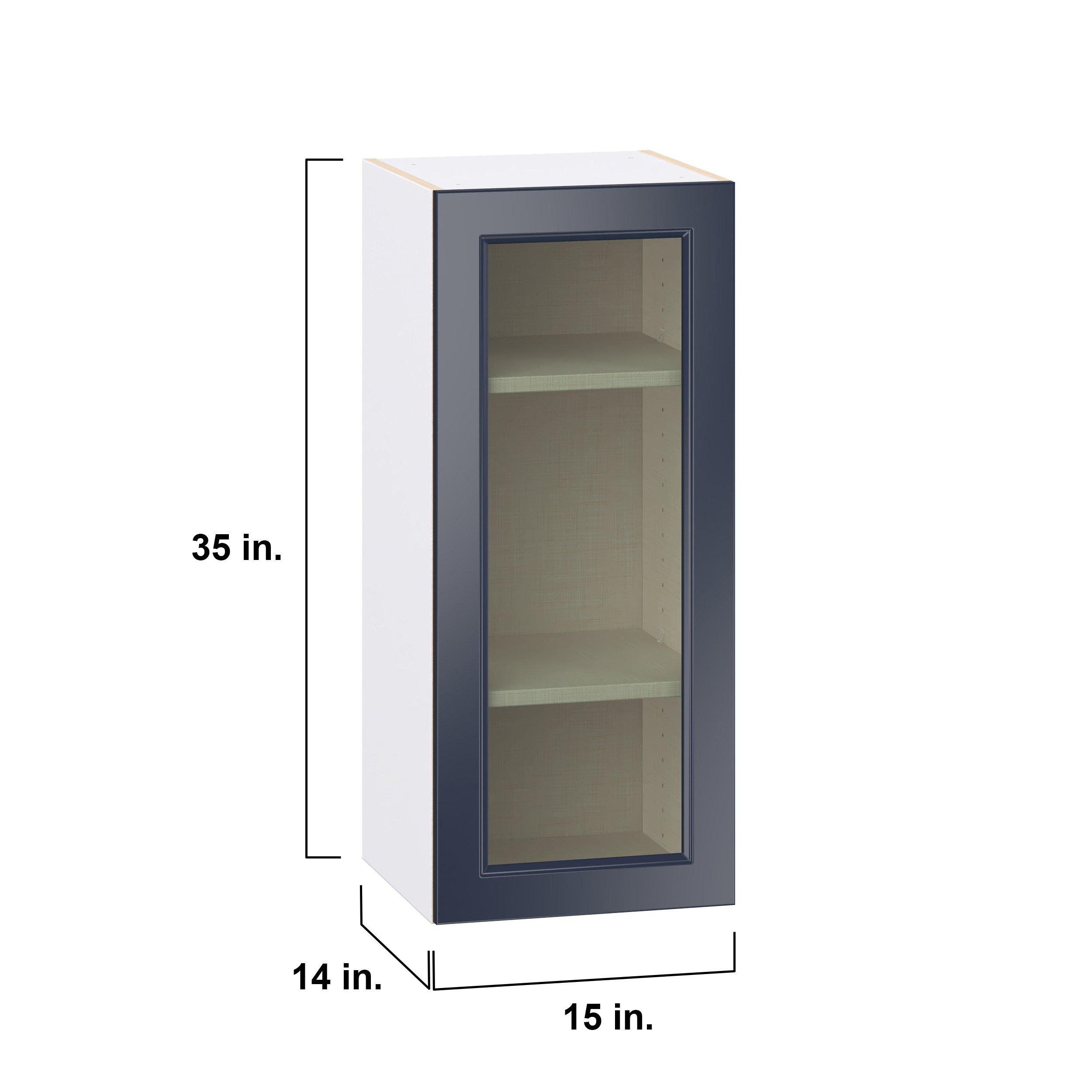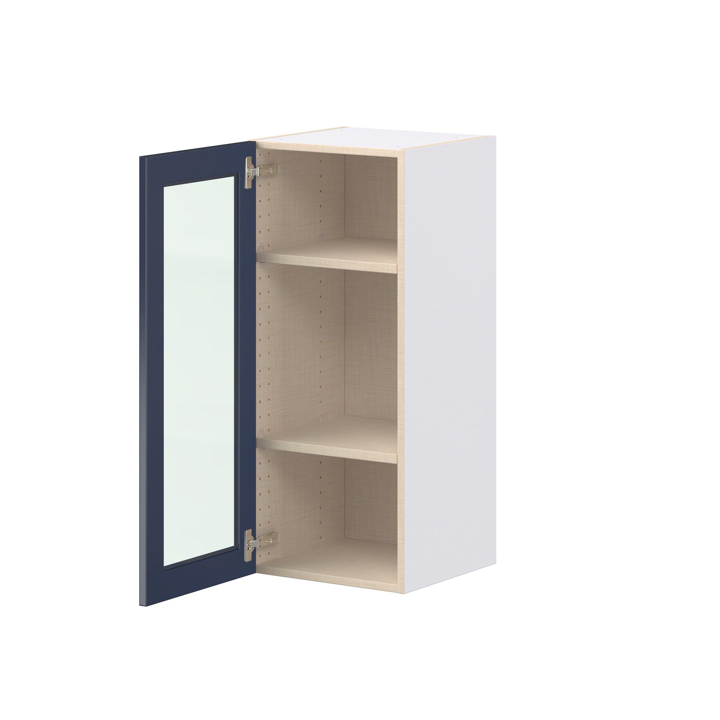 Make a statement with Peachtree premium painted shaker-inspired cabinets, offering both style and durability for years to come. Available in classic bright white and rich midnight blue, this collection is designed to fit seamlessly into both modern and transitional interiors. Crafted from one-piece MDF Studio Design Collection Peachtree 15 in. Painted Midnight Blue Wall Cabinet with Glass Door is designed to resist hairline cracks while the easy-to-clean finish stands up to stains and moisture. Featuring 5-piece doors and dovetail drawer joints, these cabinets offer durability and elegance. This collection combines style with everyday storage solutions.