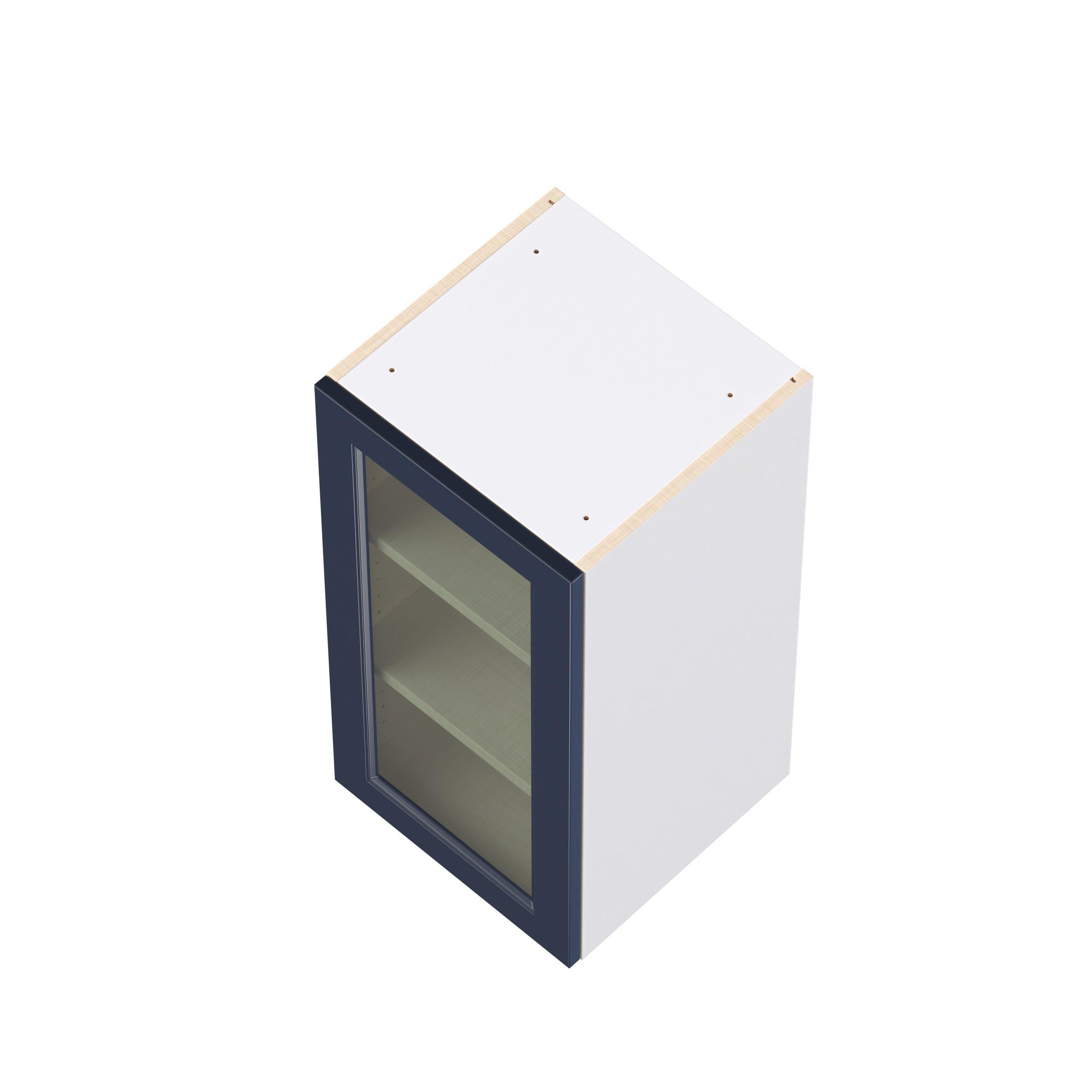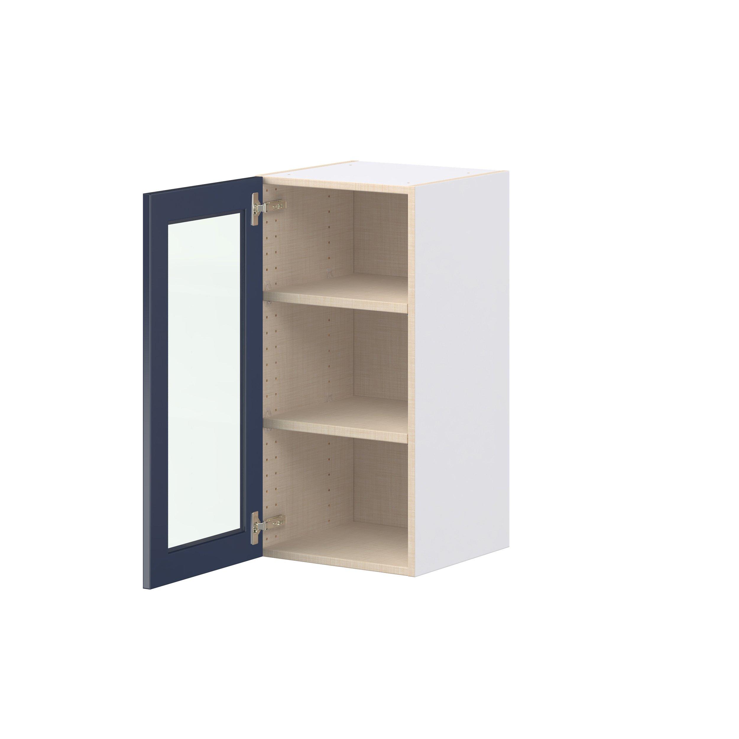 Make a statement with Peachtree premium painted shaker-inspired cabinets, offering both style and durability for years to come. Available in classic bright white and rich midnight blue, this collection is designed to fit seamlessly into both modern and transitional interiors. Crafted from one-piece MDF Studio Design Collection Peachtree 15 in. Painted Midnight Blue Wall Cabinet with Glass Door is designed to resist hairline cracks while the easy-to-clean finish stands up to stains and moisture. Featuring 5-piece doors and dovetail drawer joints, these cabinets offer durability and elegance. This collection combines style with everyday storage solutions.