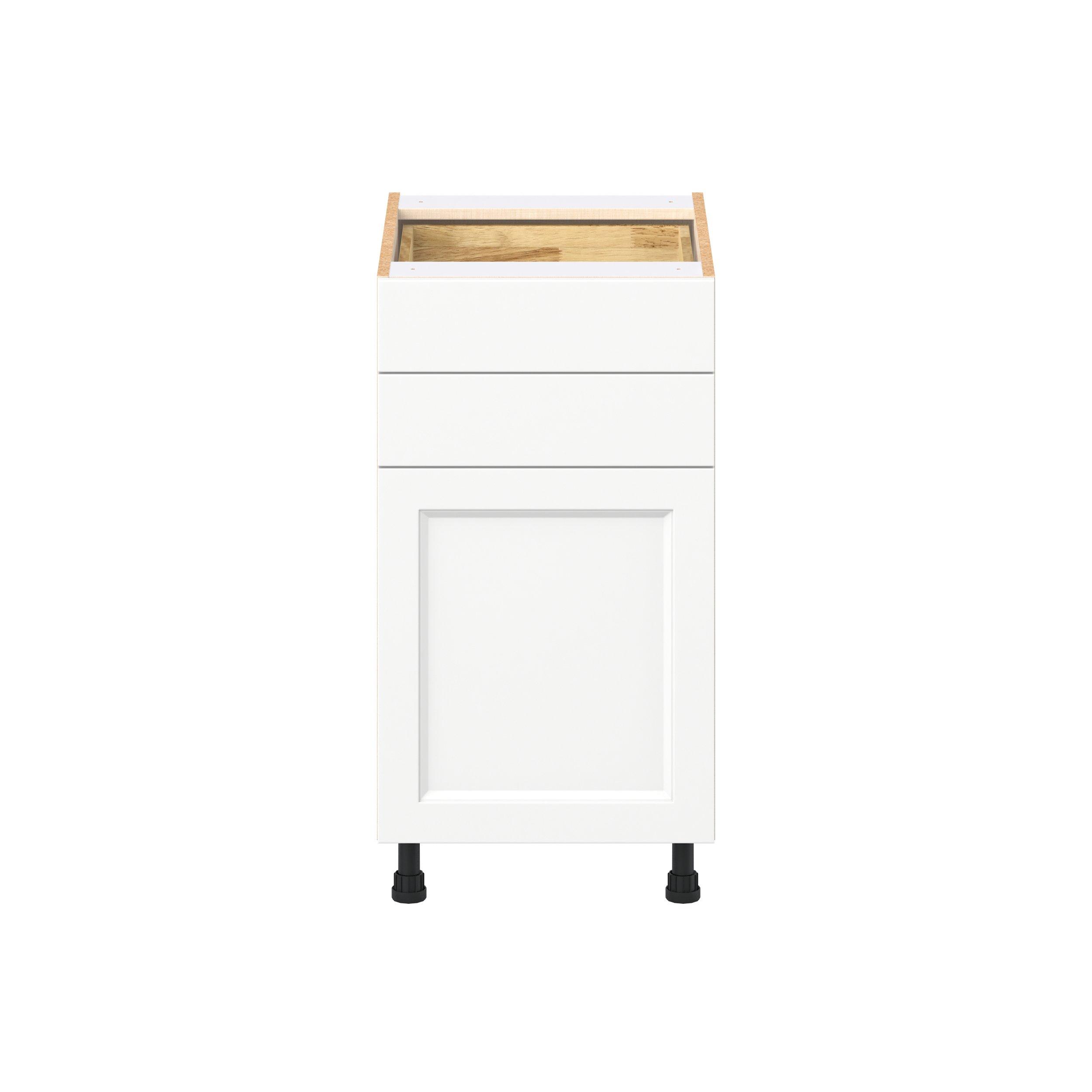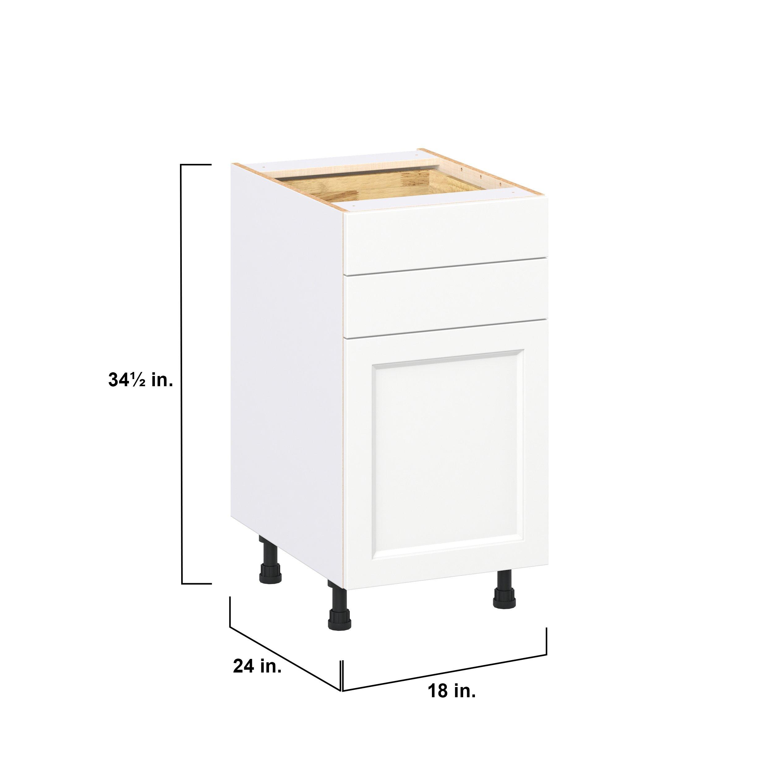 Make a statement with Peachtree premium painted shaker-inspired cabinets, offering both style and durability for years to come. Available in classic bright white and rich midnight blue, this collection is designed to fit seamlessly into both modern and transitional interiors. Crafted from one-piece MDF Studio Design Collection Peachtree 18 in. Painted Bright White Door and Drawer Base Cabinet is designed to resist hairline cracks while the easy-to-clean finish stands up to stains and moisture. Featuring 5-piece doors and dovetail drawer joints, these cabinets offer durability and elegance. This collection combines style with everyday storage solutions.