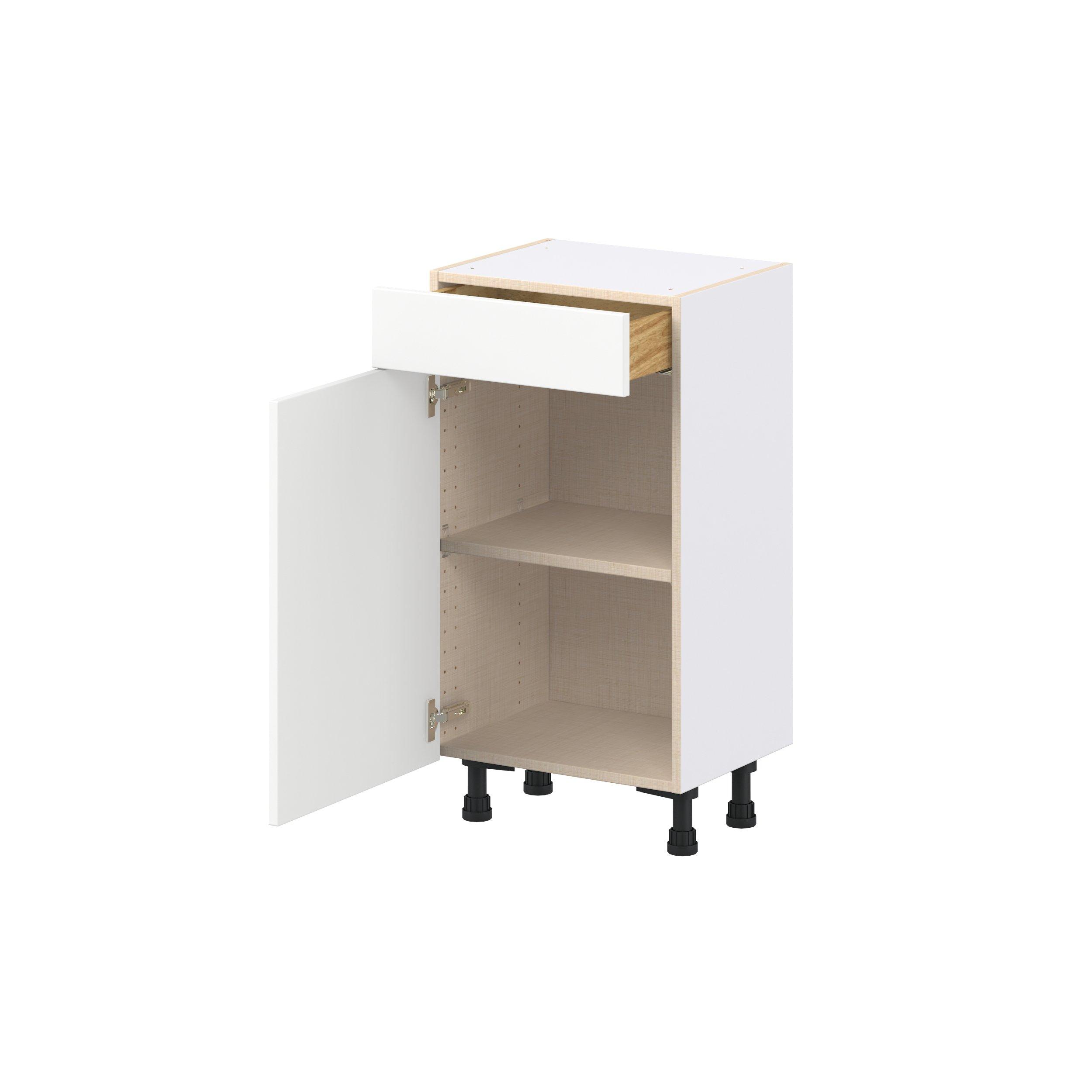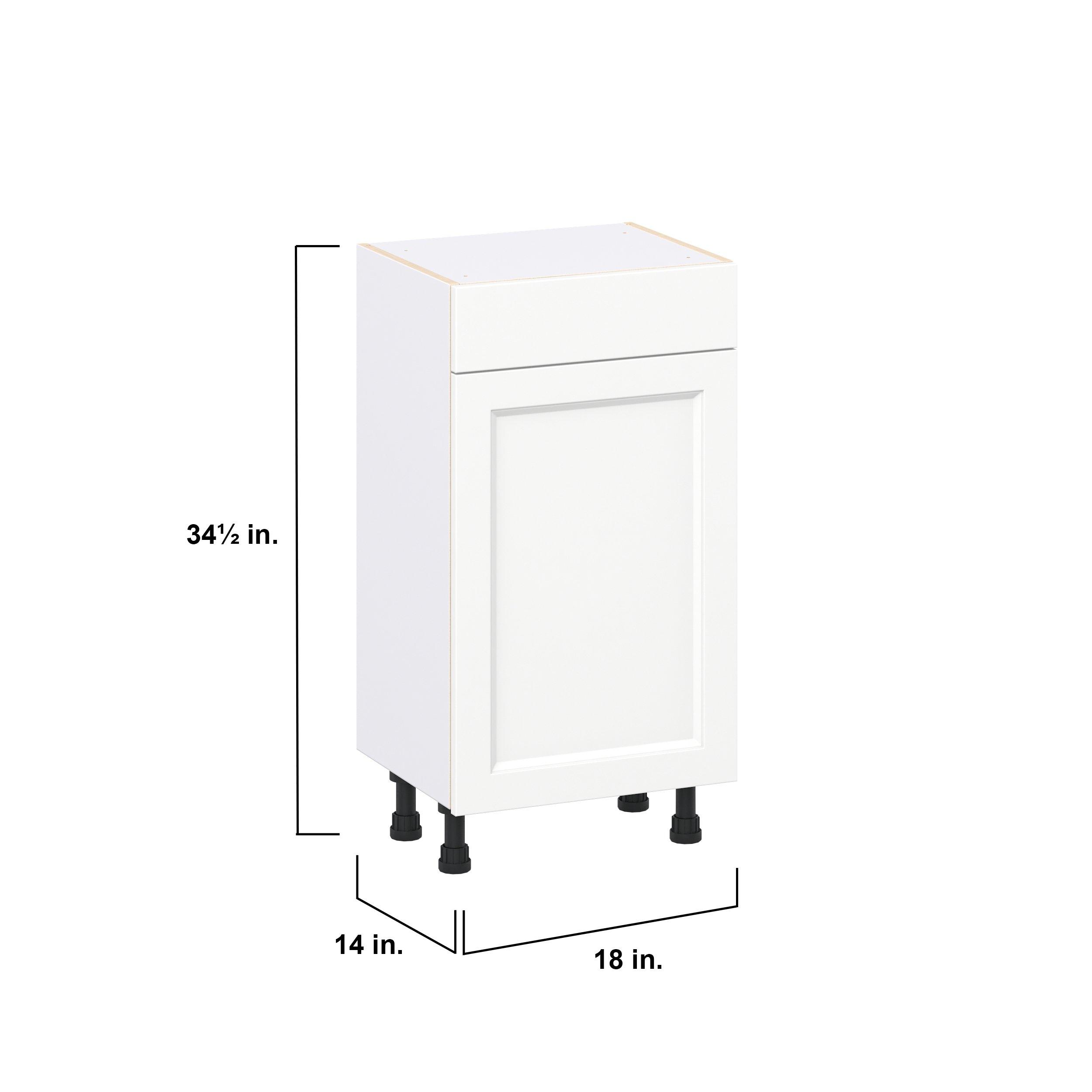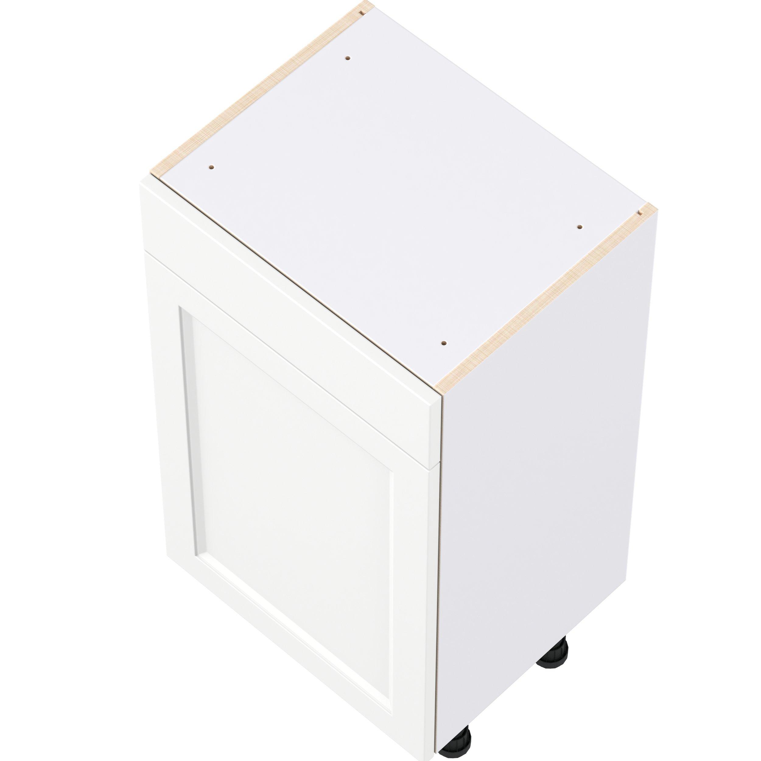 Make a statement with Peachtree premium painted shaker-inspired cabinets, offering both style and durability for years to come. Available in classic bright white and rich midnight blue, this collection is designed to fit seamlessly into both modern and transitional interiors. Crafted from one-piece MDF Studio Design Collection Peachtree 18 in. Painted Bright White Shallow Base Cabinet is designed to resist hairline cracks while the easy-to-clean finish stands up to stains and moisture. Featuring 5-piece doors and dovetail drawer joints, these cabinets offer durability and elegance. This collection combines style with everyday storage solutions.