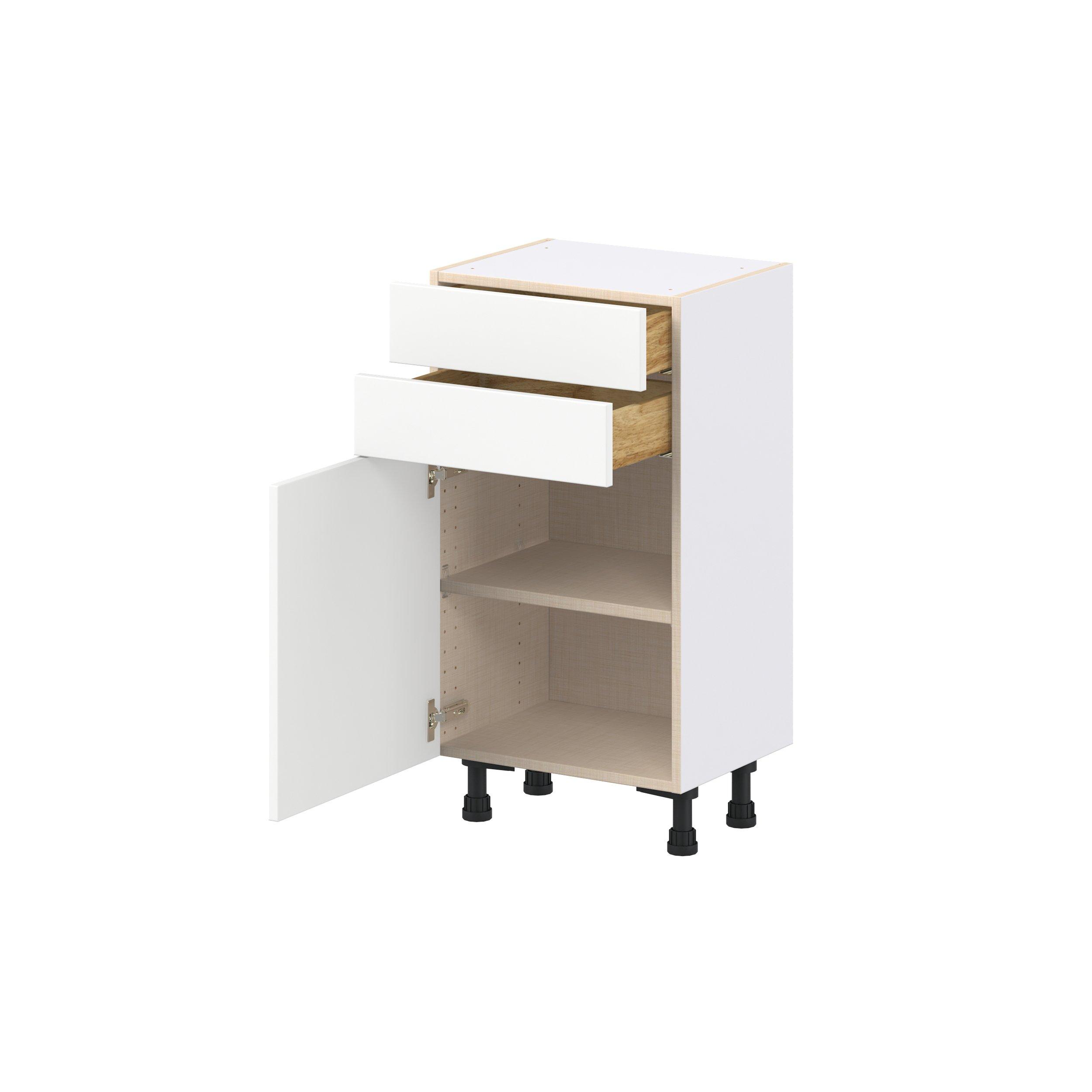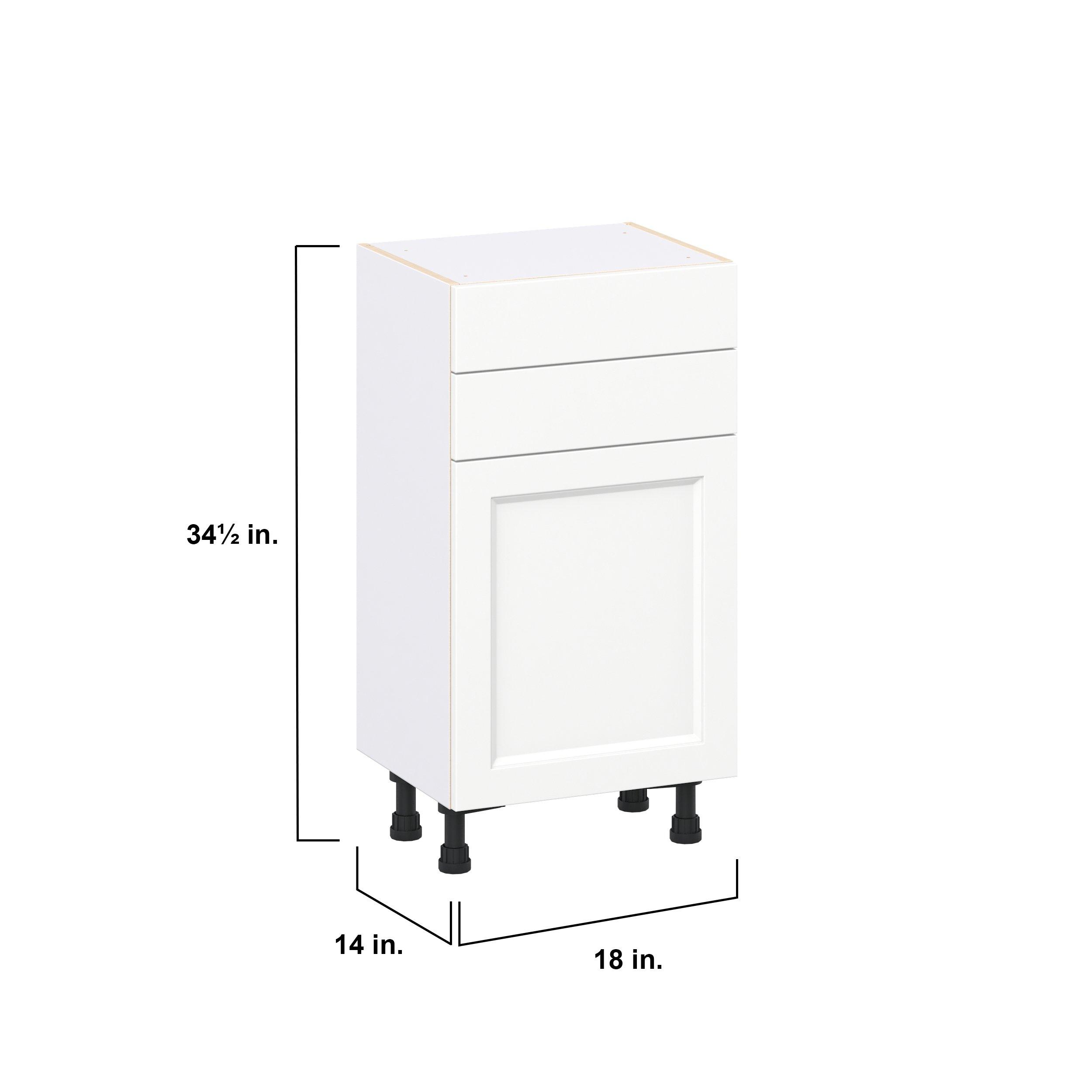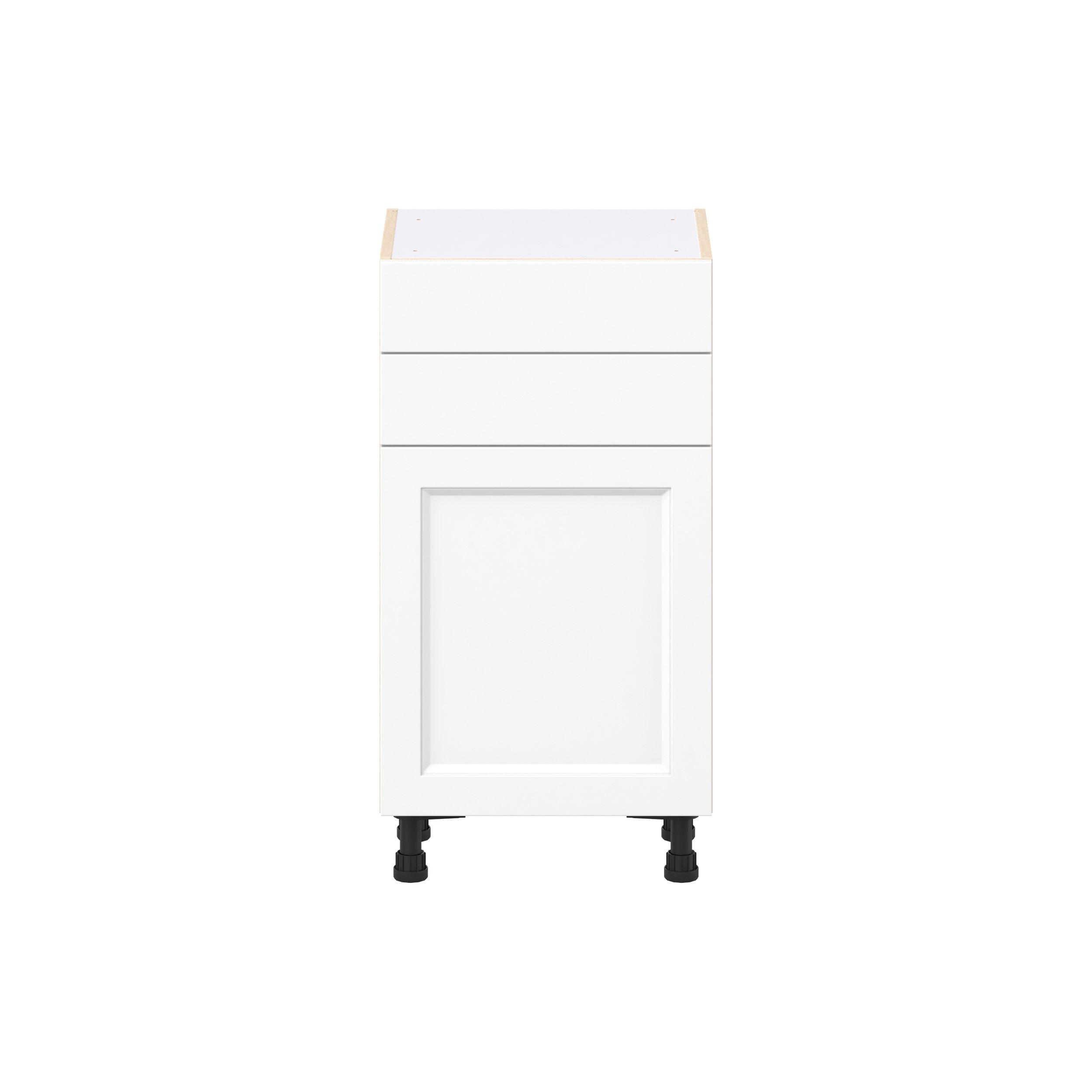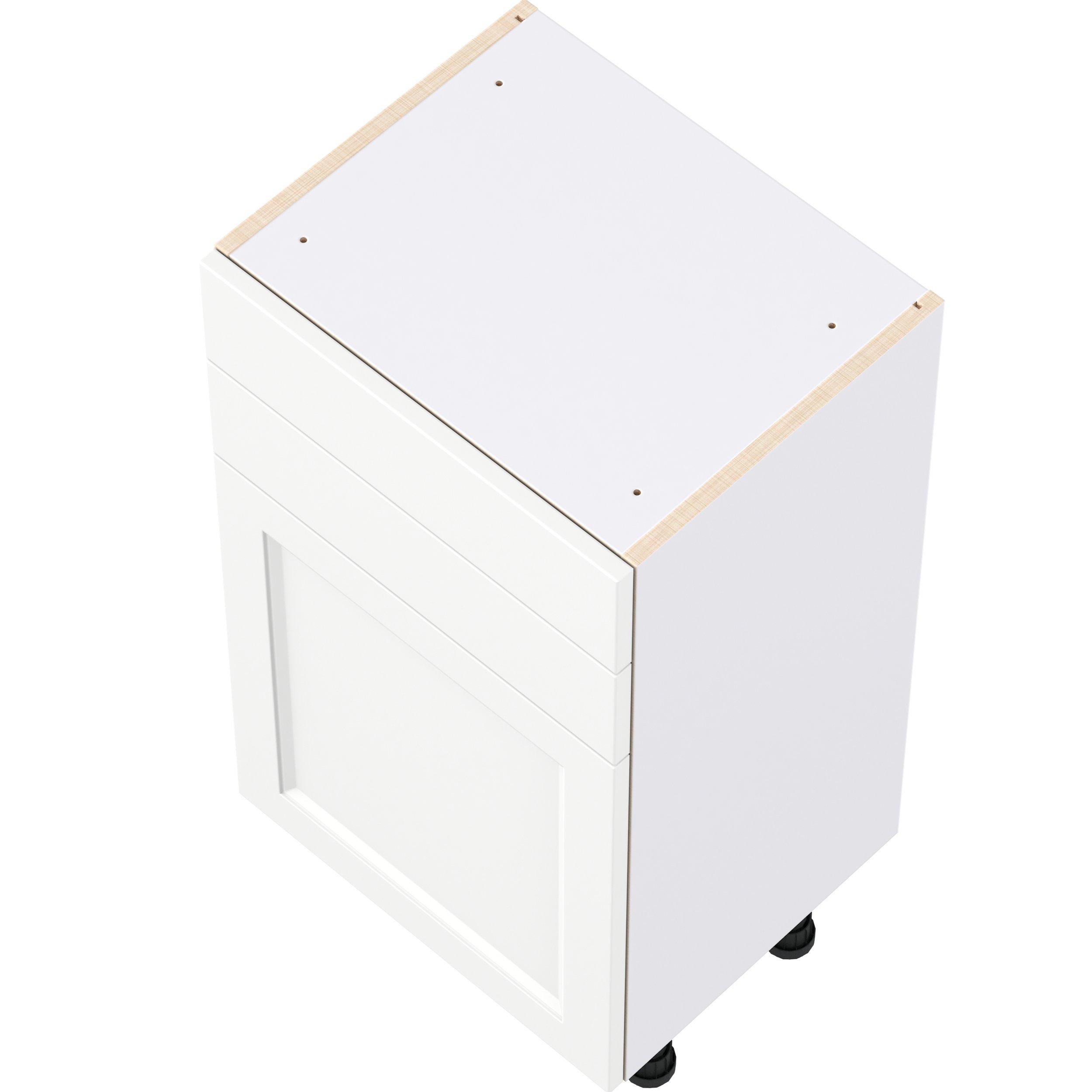 Make a statement with Peachtree premium painted shaker-inspired cabinets, offering both style and durability for years to come. Available in classic bright white and rich midnight blue, this collection is designed to fit seamlessly into both modern and transitional interiors. Crafted from one-piece MDF Studio Design Collection Peachtree 18 in. Painted Bright White Shallow Base Cabinet is designed to resist hairline cracks while the easy-to-clean finish stands up to stains and moisture. Featuring 5-piece doors and dovetail drawer joints, these cabinets offer durability and elegance. This collection combines style with everyday storage solutions.