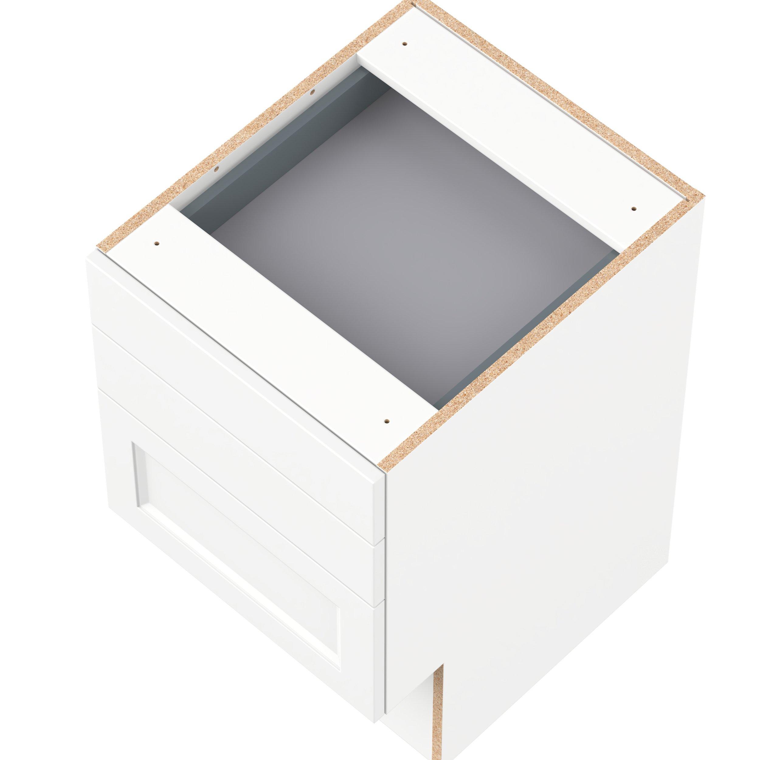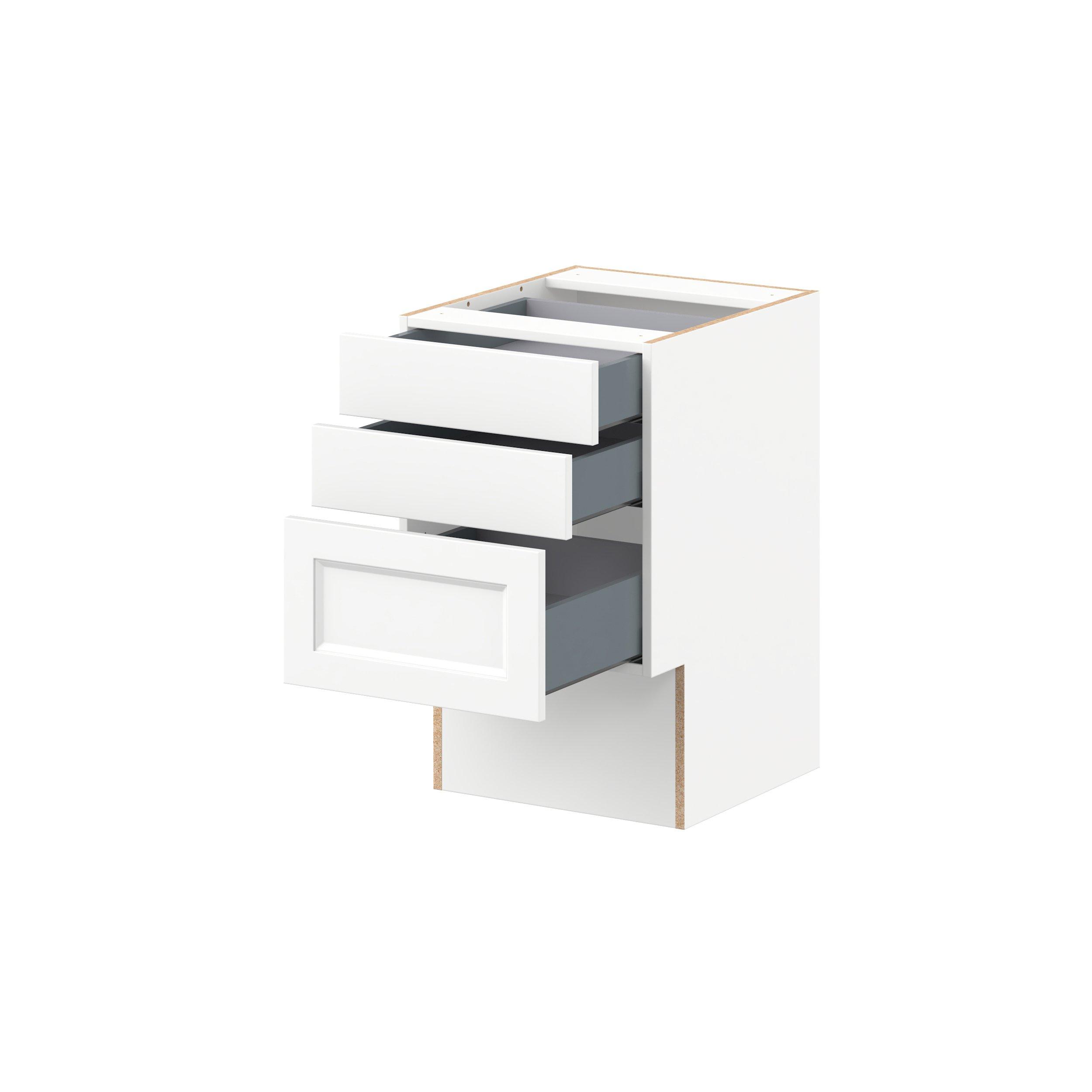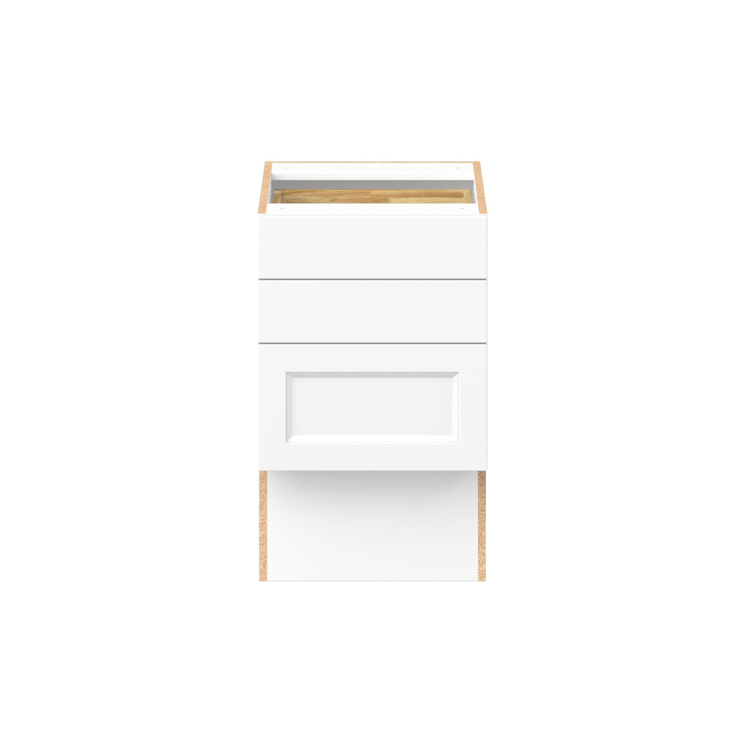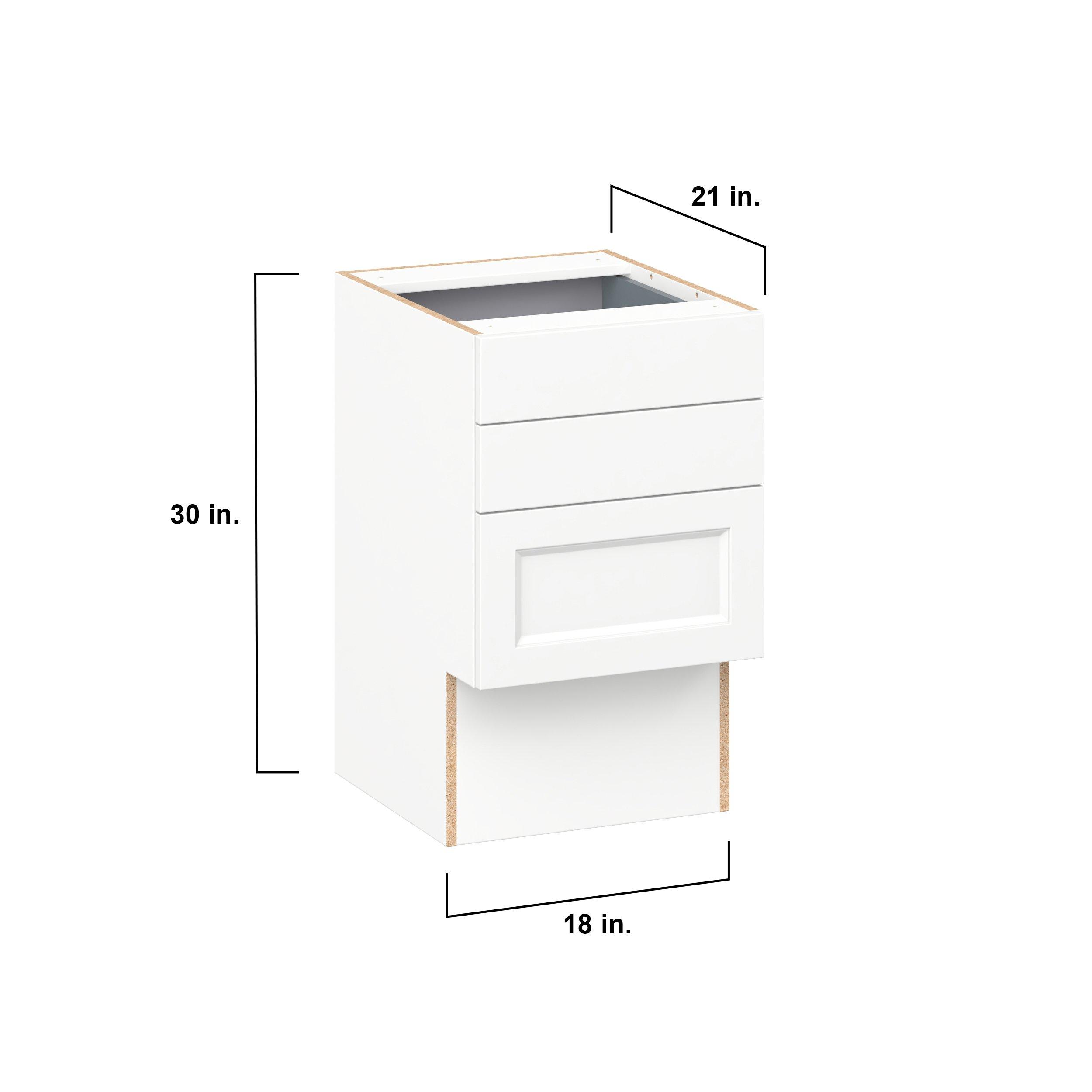 Make a statement with Peachtree premium painted shaker-inspired cabinets, offering both style and durability for years to come. Available in classic bright white and rich midnight blue, this collection is designed to fit seamlessly into both modern and transitional interiors. Crafted from one-piece MDF Studio Design Collection Peachtree 18 in. Painted Bright White Vanity Drawer Base Cabinet is designed to resist hairline cracks while the easy-to-clean finish stands up to stains and moisture. Featuring 5-piece doors and dovetail drawer joints, these cabinets offer durability and elegance. This collection combines style with everyday storage solutions.