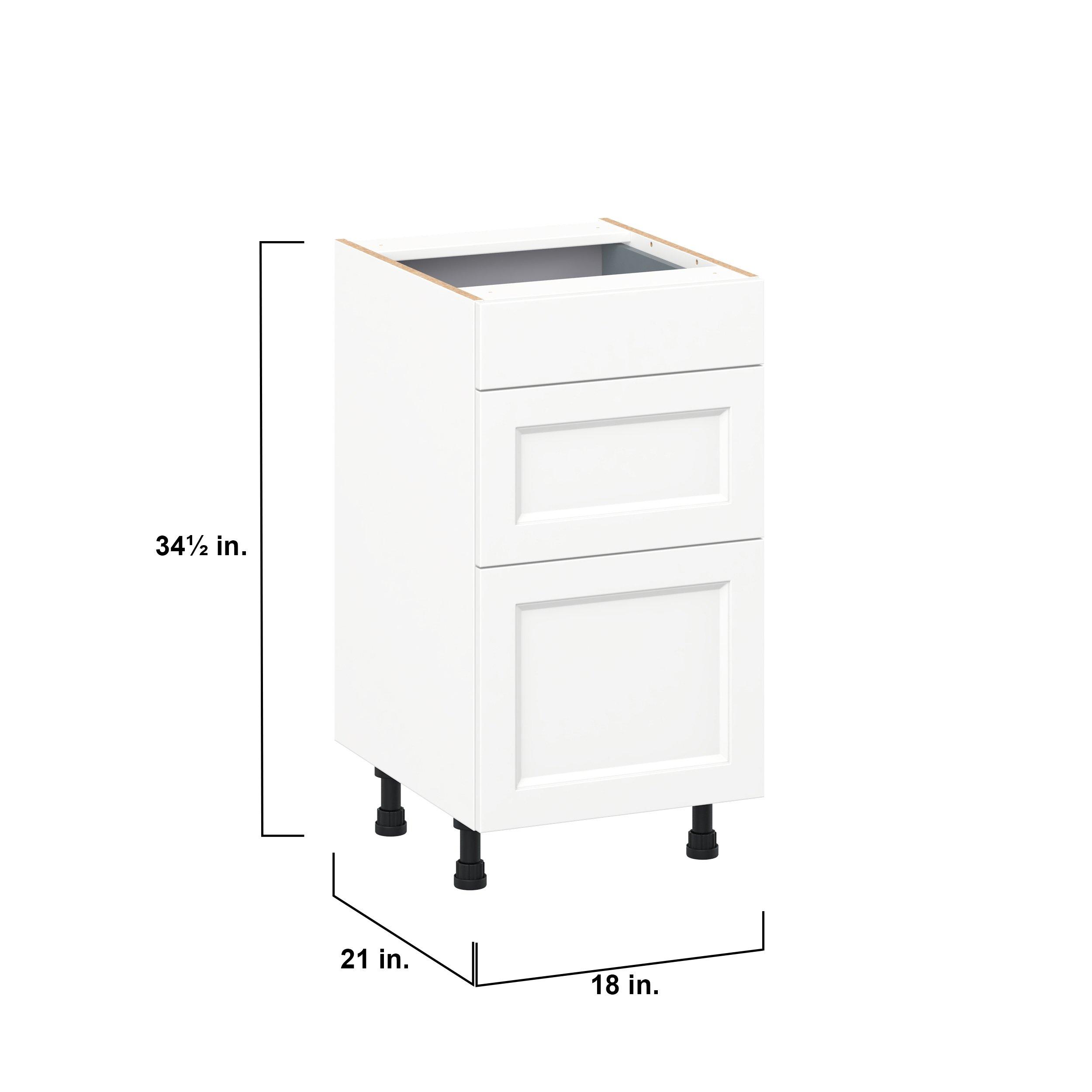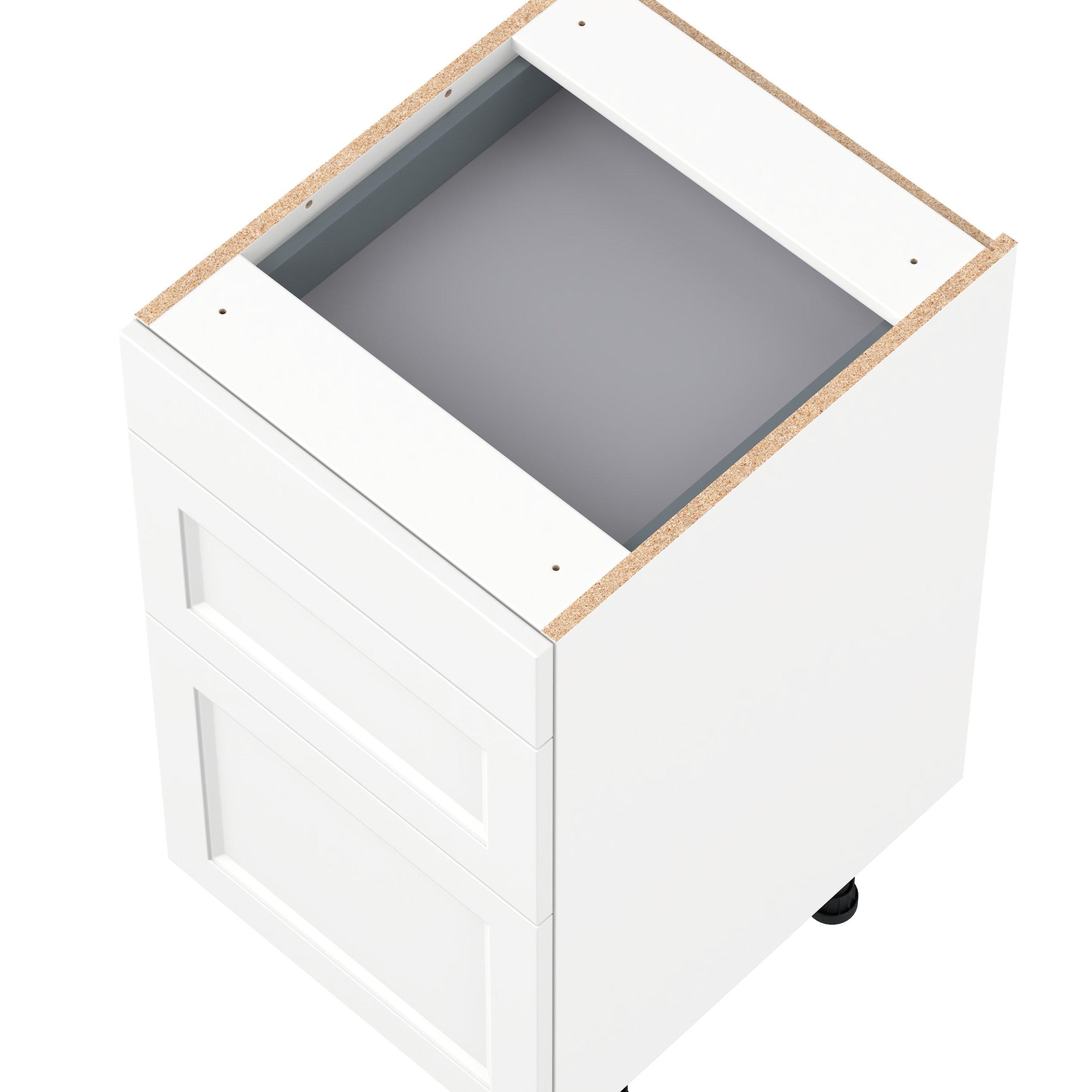 Make a statement with Peachtree premium painted shaker-inspired cabinets, offering both style and durability for years to come. Available in classic bright white and rich midnight blue, this collection is designed to fit seamlessly into both modern and transitional interiors. Crafted from one-piece MDF Studio Design Collection Peachtree 18 in. Painted Bright White Vanity Drawer Base Cabinet is designed to resist hairline cracks while the easy-to-clean finish stands up to stains and moisture. Featuring 5-piece doors and dovetail drawer joints, these cabinets offer durability and elegance. This collection combines style with everyday storage solutions.