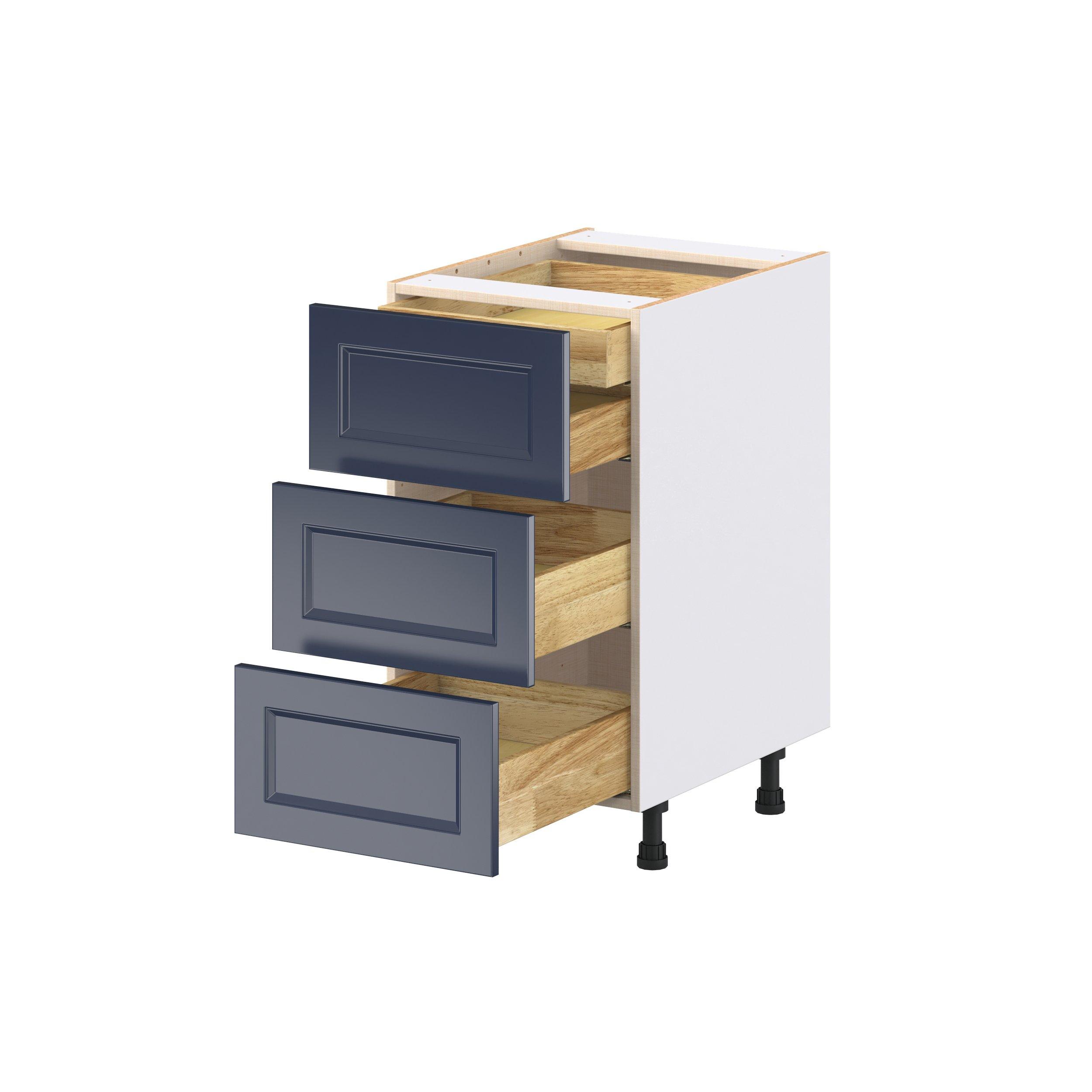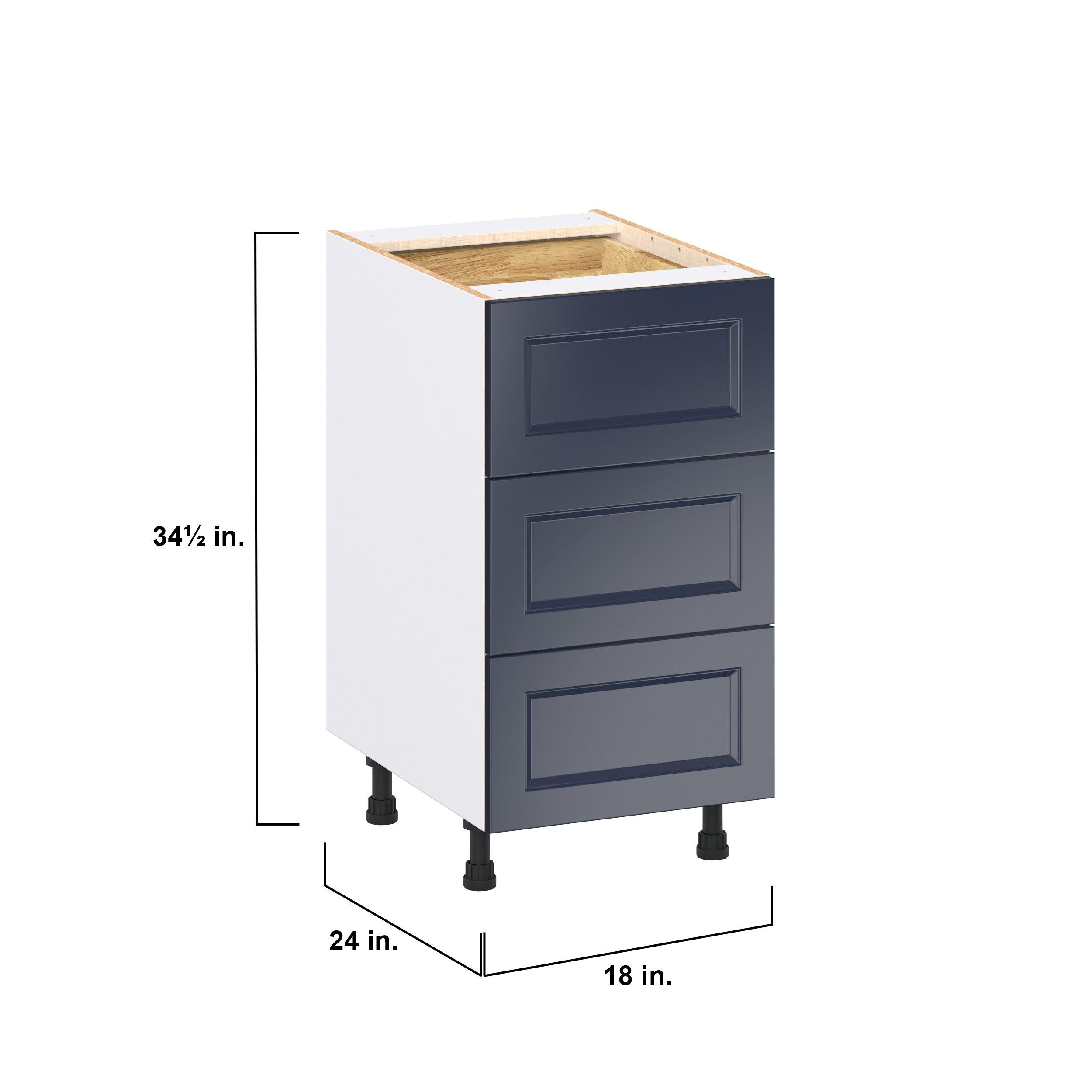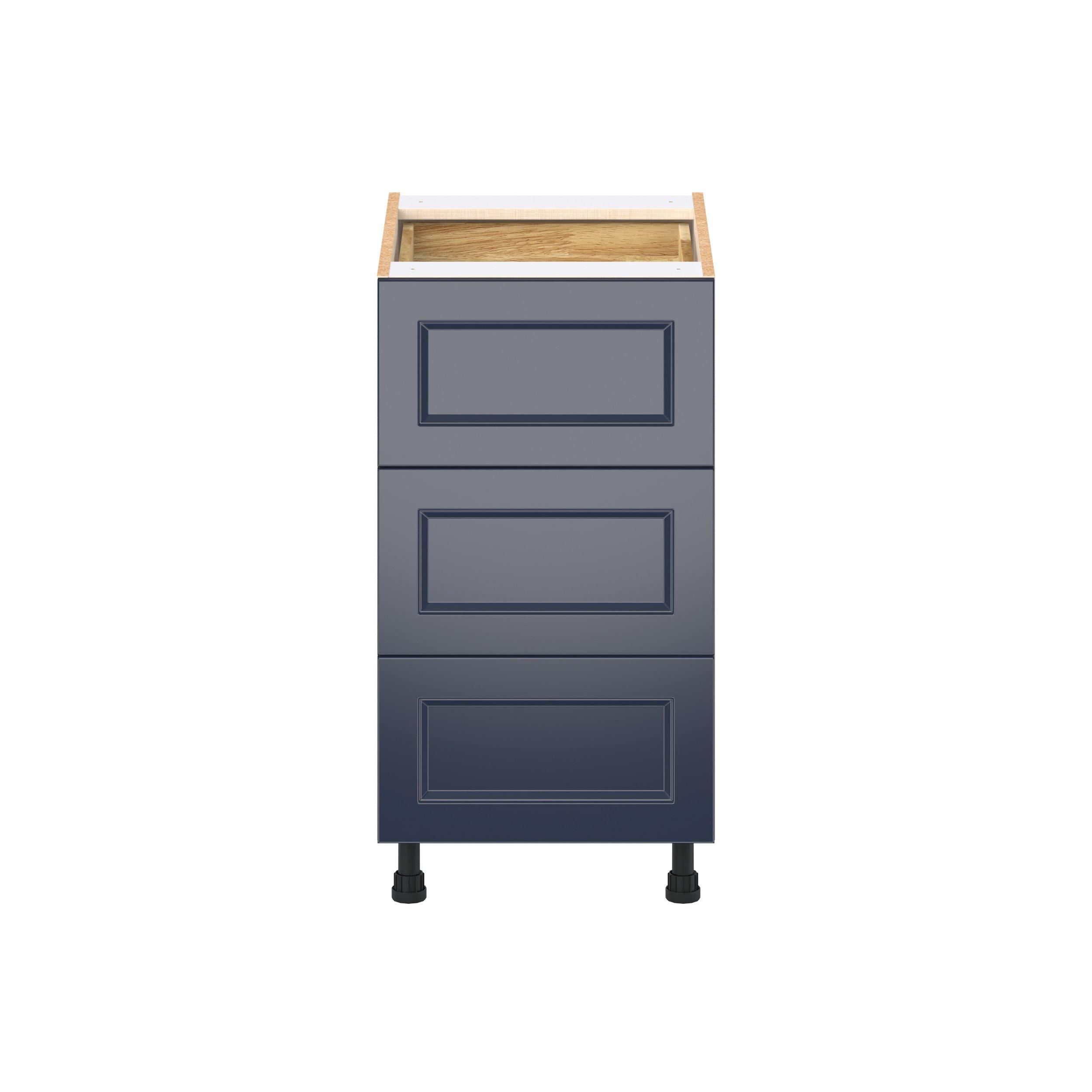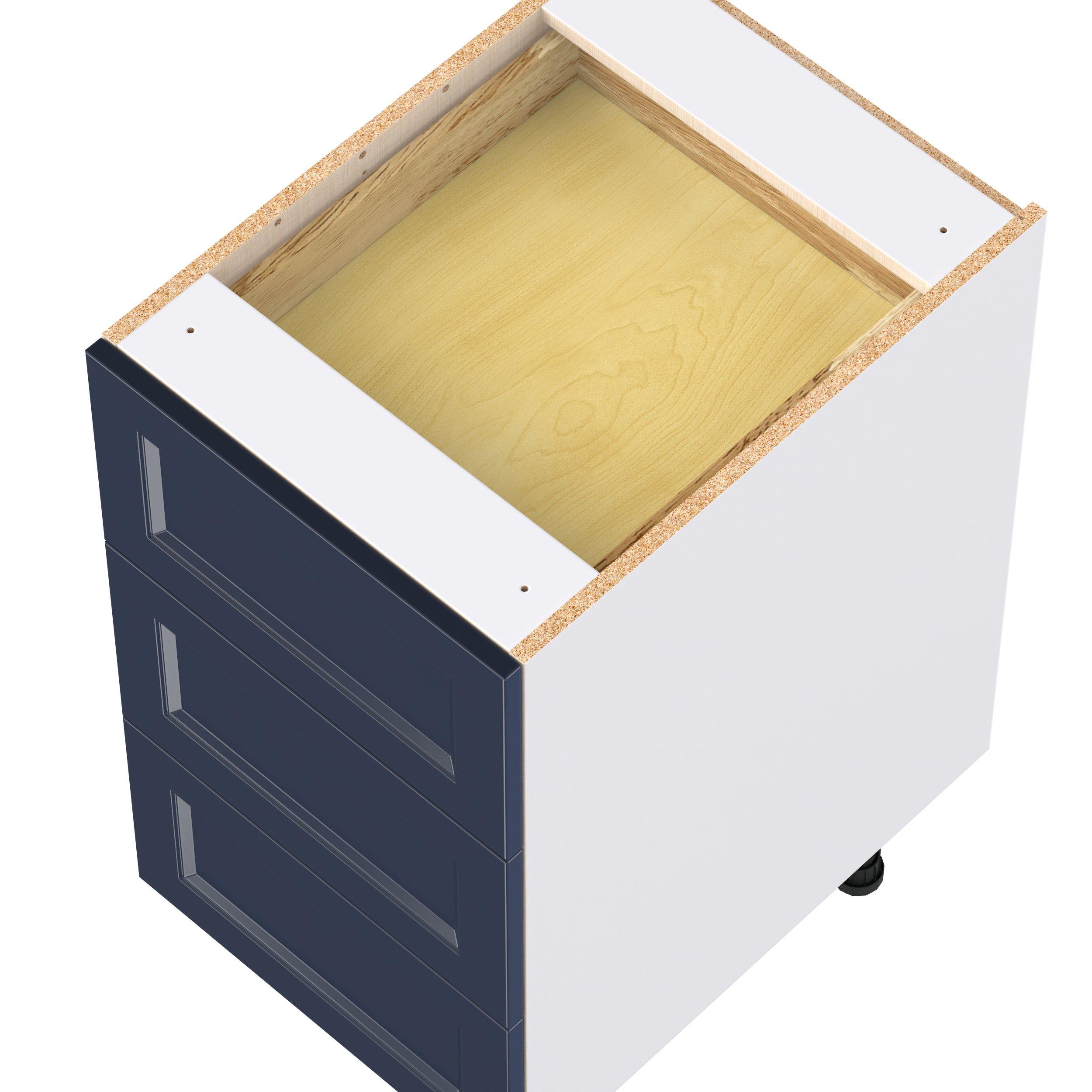 Make a statement with Peachtree premium painted shaker-inspired cabinets, offering both style and durability for years to come. Available in classic bright white and rich midnight blue, this collection is designed to fit seamlessly into both modern and transitional interiors. Crafted from one-piece MDF Studio Design Collection Peachtree 18 in. Painted Midnight Blue Base Cabinet with Inner Pull-Out Drawer is designed to resist hairline cracks while the easy-to-clean finish stands up to stains and moisture. Featuring 5-piece doors and dovetail drawer joints, these cabinets offer durability and elegance. This collection combines style with everyday storage solutions.
