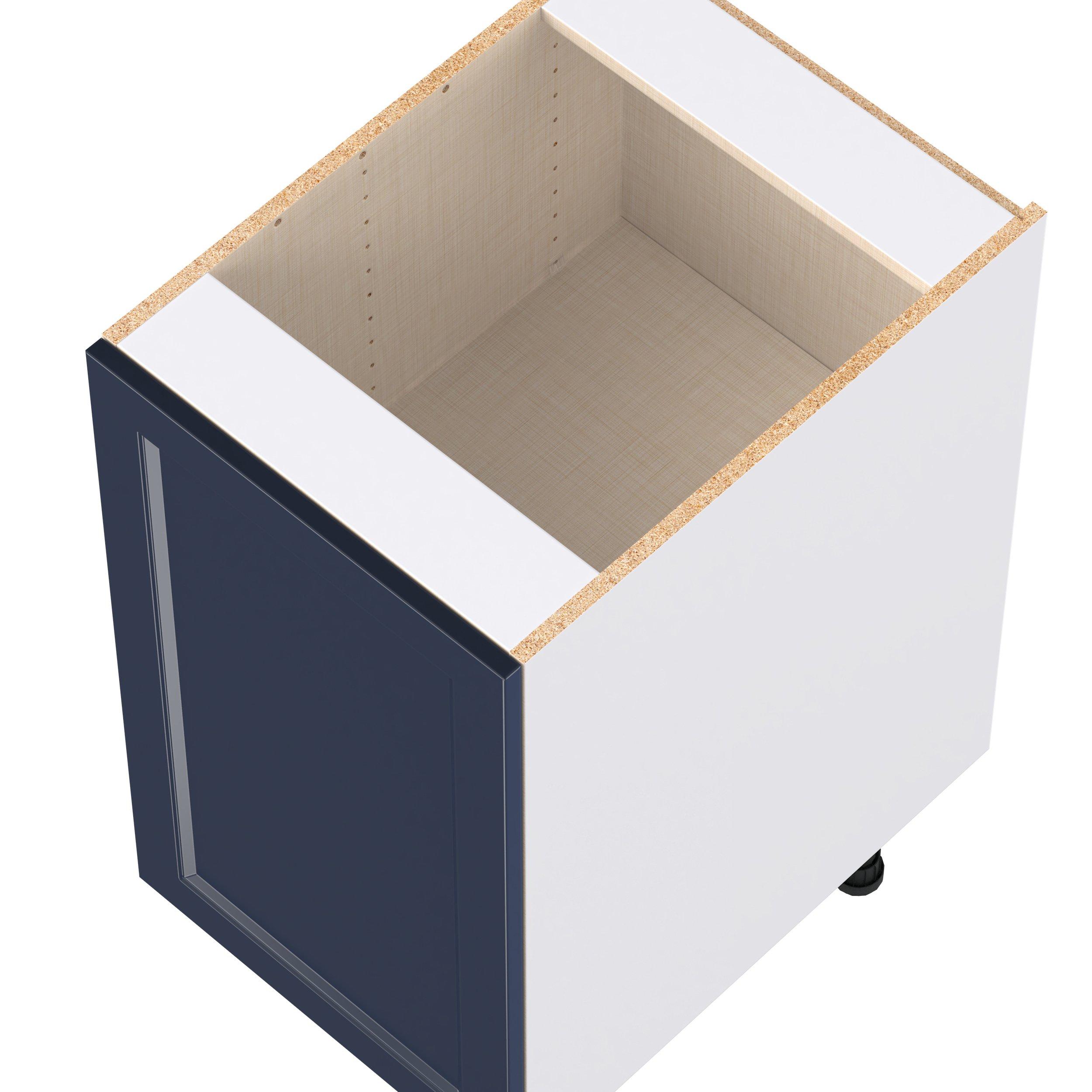 Make a statement with Peachtree premium painted shaker-inspired cabinets, offering both style and durability for years to come. Available in classic bright white and rich midnight blue, this collection is designed to fit seamlessly into both modern and transitional interiors. Crafted from one-piece MDF Studio Design Collection Peachtree 18 in. Painted Midnight Blue Door Base Cabinet is designed to resist hairline cracks while the easy-to-clean finish stands up to stains and moisture. Featuring 5-piece doors and dovetail drawer joints, these cabinets offer durability and elegance. This collection combines style with everyday storage solutions.