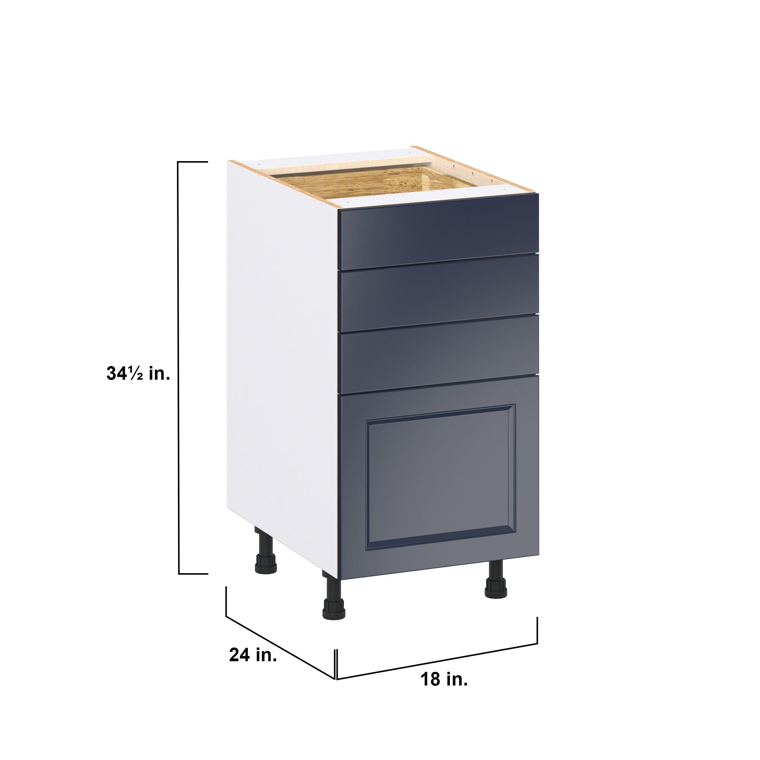 Make a statement with Peachtree premium painted shaker-inspired cabinets, offering both style and durability for years to come. Available in classic bright white and rich midnight blue, this collection is designed to fit seamlessly into both modern and transitional interiors. Crafted from one-piece MDF Studio Design Collection Peachtree 18 in. Painted Midnight Blue Drawer Base Cabinet is designed to resist hairline cracks while the easy-to-clean finish stands up to stains and moisture. Featuring 5-piece doors and dovetail drawer joints, these cabinets offer durability and elegance. This collection combines style with everyday storage solutions.