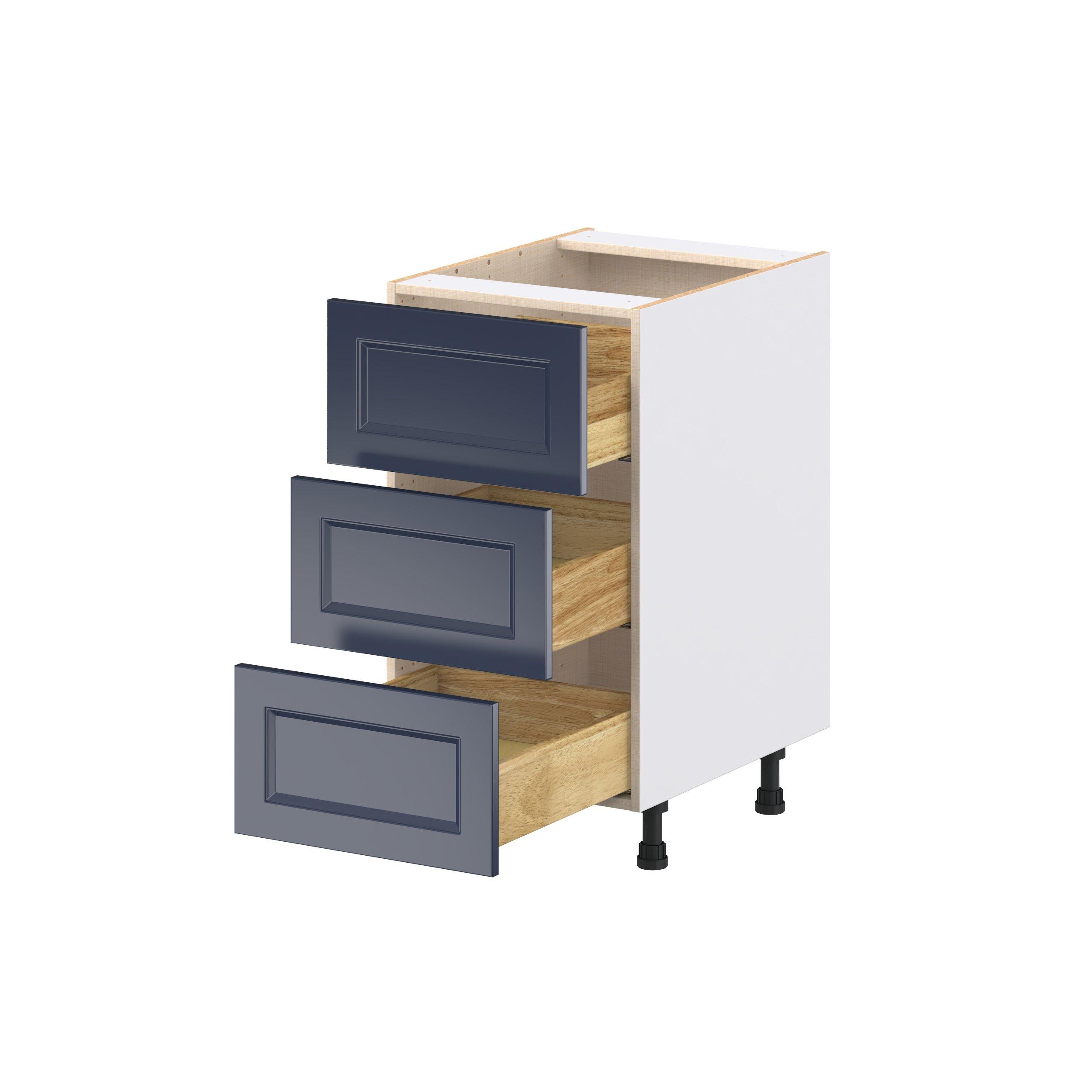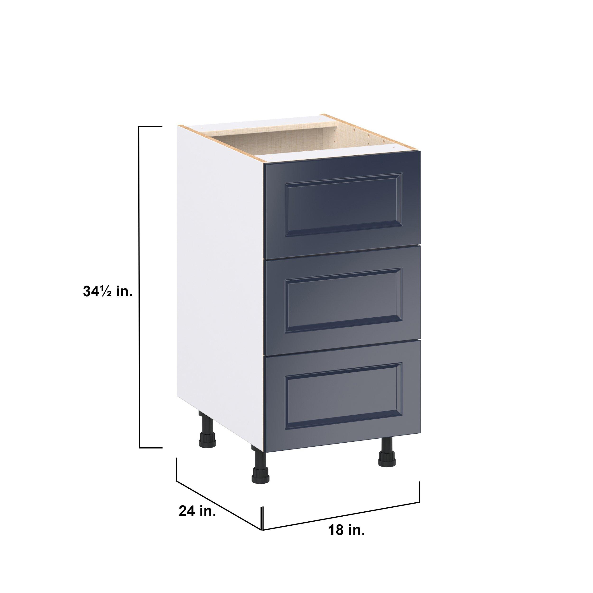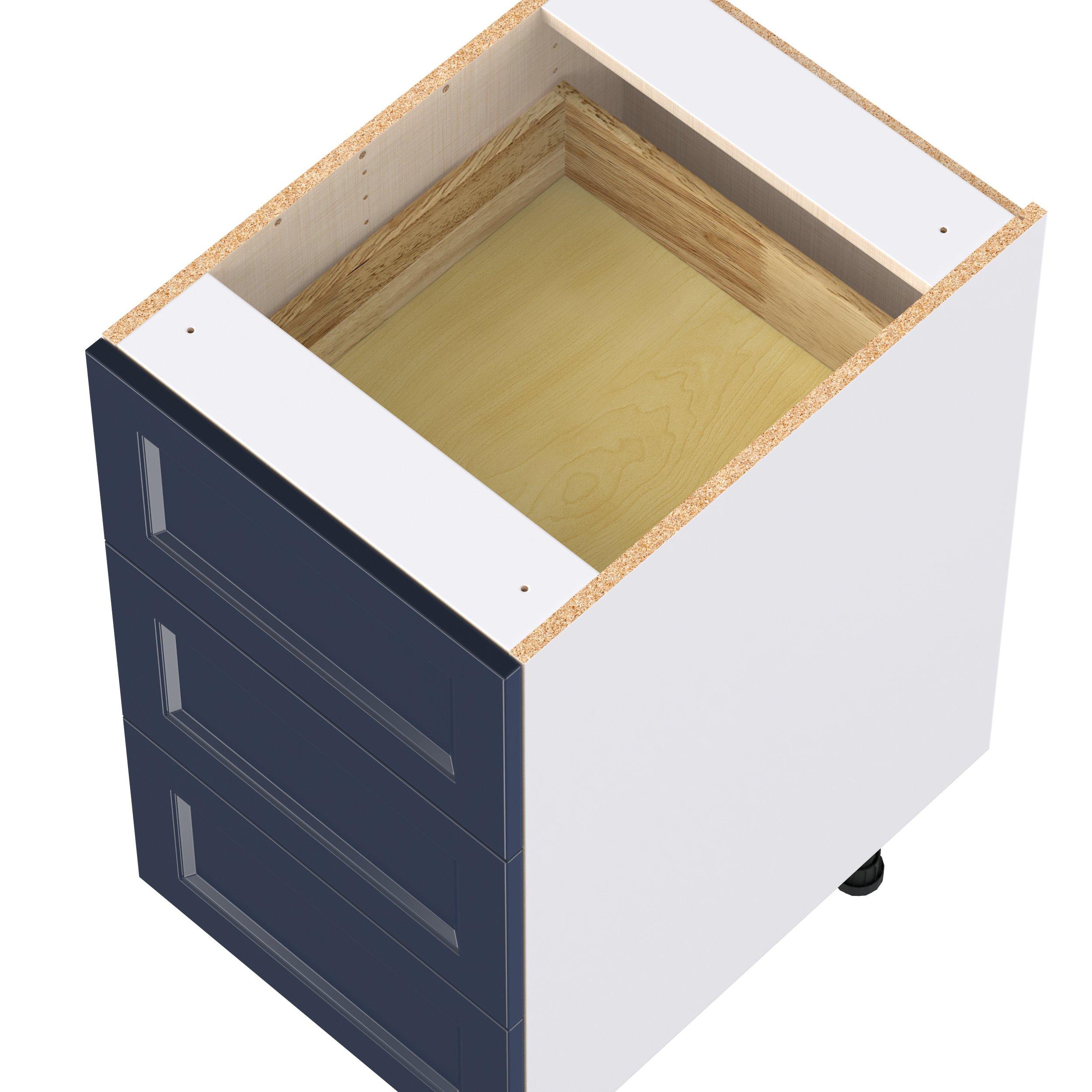 Make a statement with Peachtree premium painted shaker-inspired cabinets, offering both style and durability for years to come. Available in classic bright white and rich midnight blue, this collection is designed to fit seamlessly into both modern and transitional interiors. Crafted from one-piece MDF Studio Design Collection Peachtree 18 in. Painted Midnight Blue Drawer Base Cabinet is designed to resist hairline cracks while the easy-to-clean finish stands up to stains and moisture. Featuring 5-piece doors and dovetail drawer joints, these cabinets offer durability and elegance. This collection combines style with everyday storage solutions.