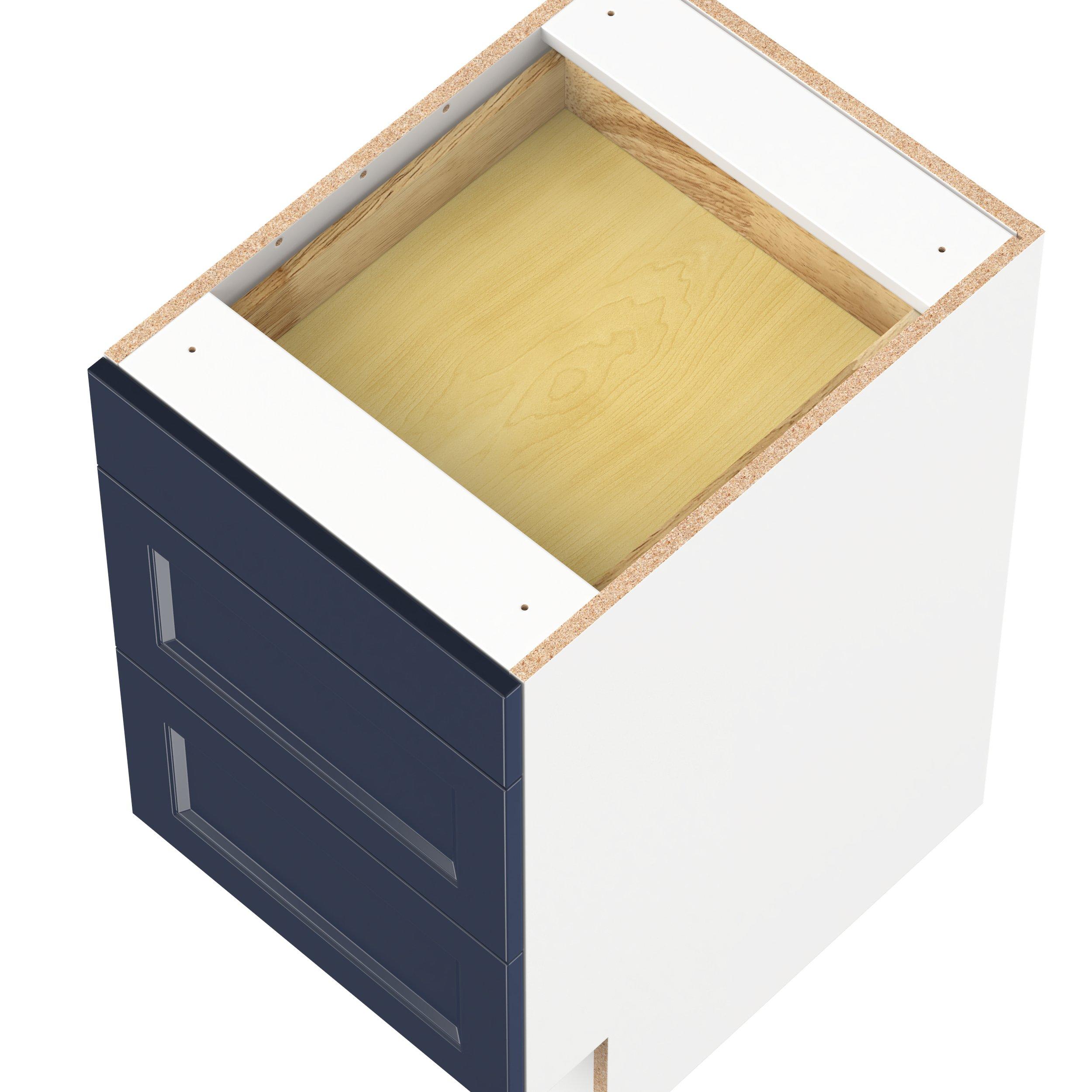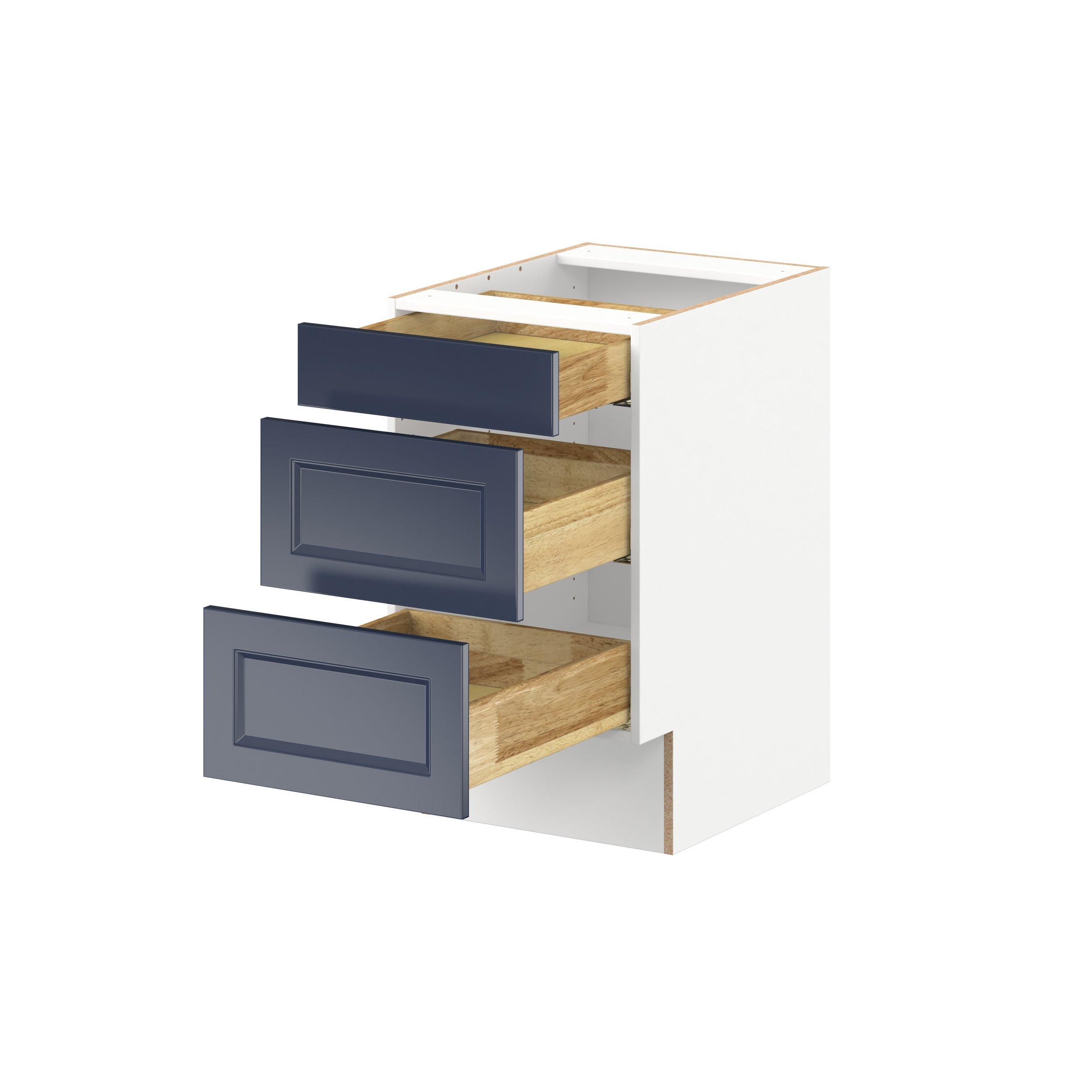 Make a statement with Peachtree premium painted shaker-inspired cabinets, offering both style and durability for years to come. Available in classic bright white and rich midnight blue, this collection is designed to fit seamlessly into both modern and transitional interiors. Crafted from one-piece MDF Studio Design Collection Peachtree 18 in. Painted Midnight Blue Drawer Base Cabinet is designed to resist hairline cracks while the easy-to-clean finish stands up to stains and moisture. Featuring 5-piece doors and dovetail drawer joints, these cabinets offer durability and elegance. This collection combines style with everyday storage solutions.