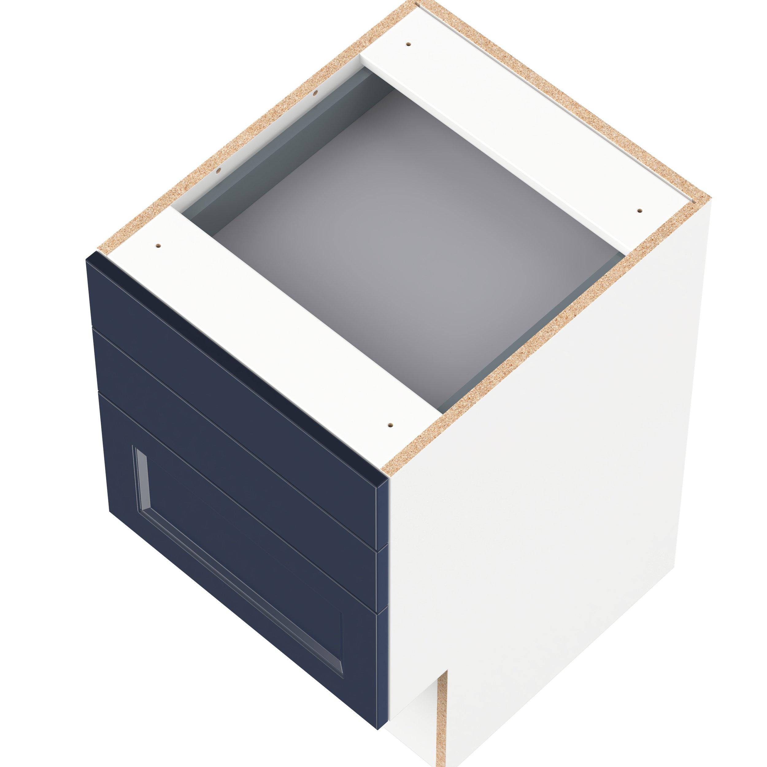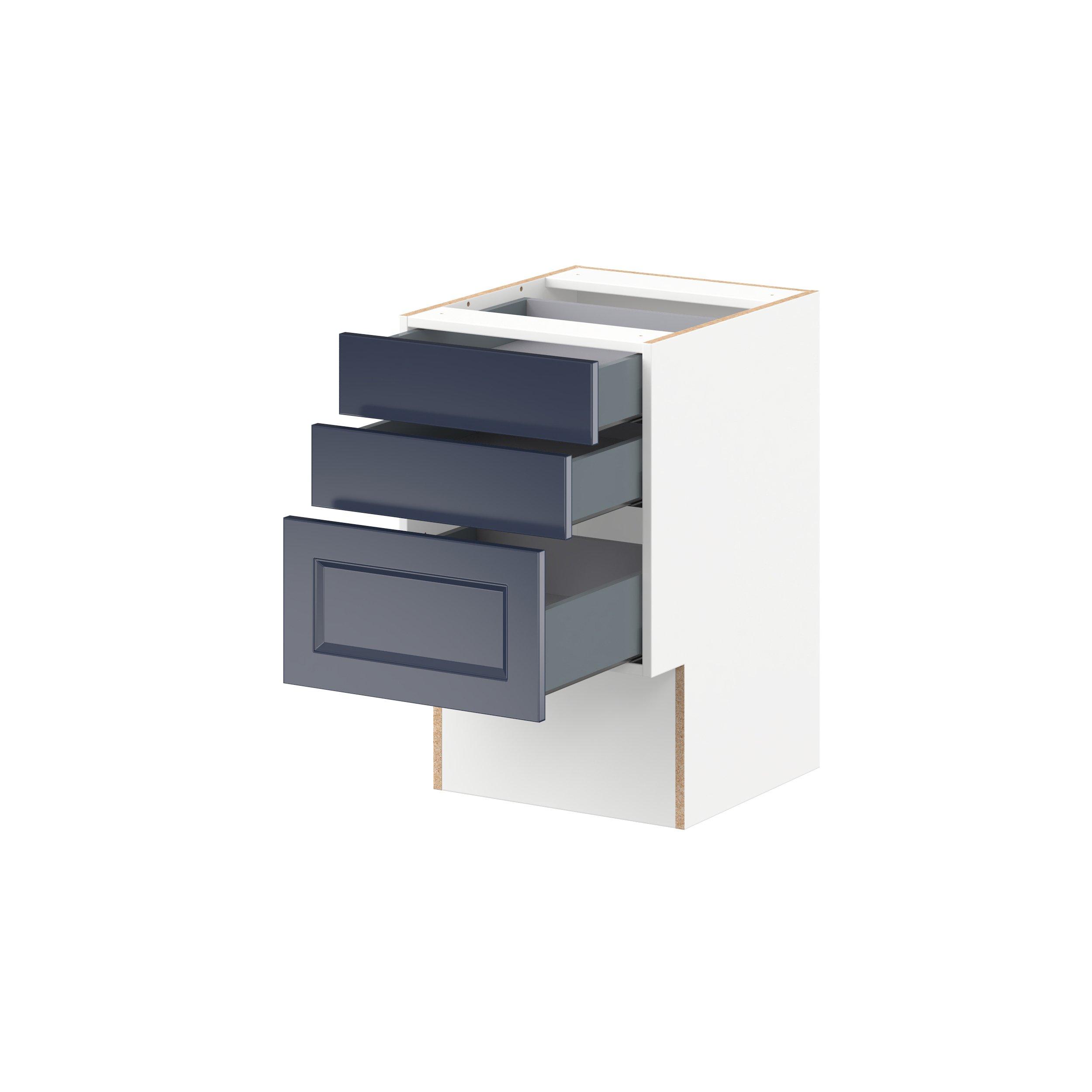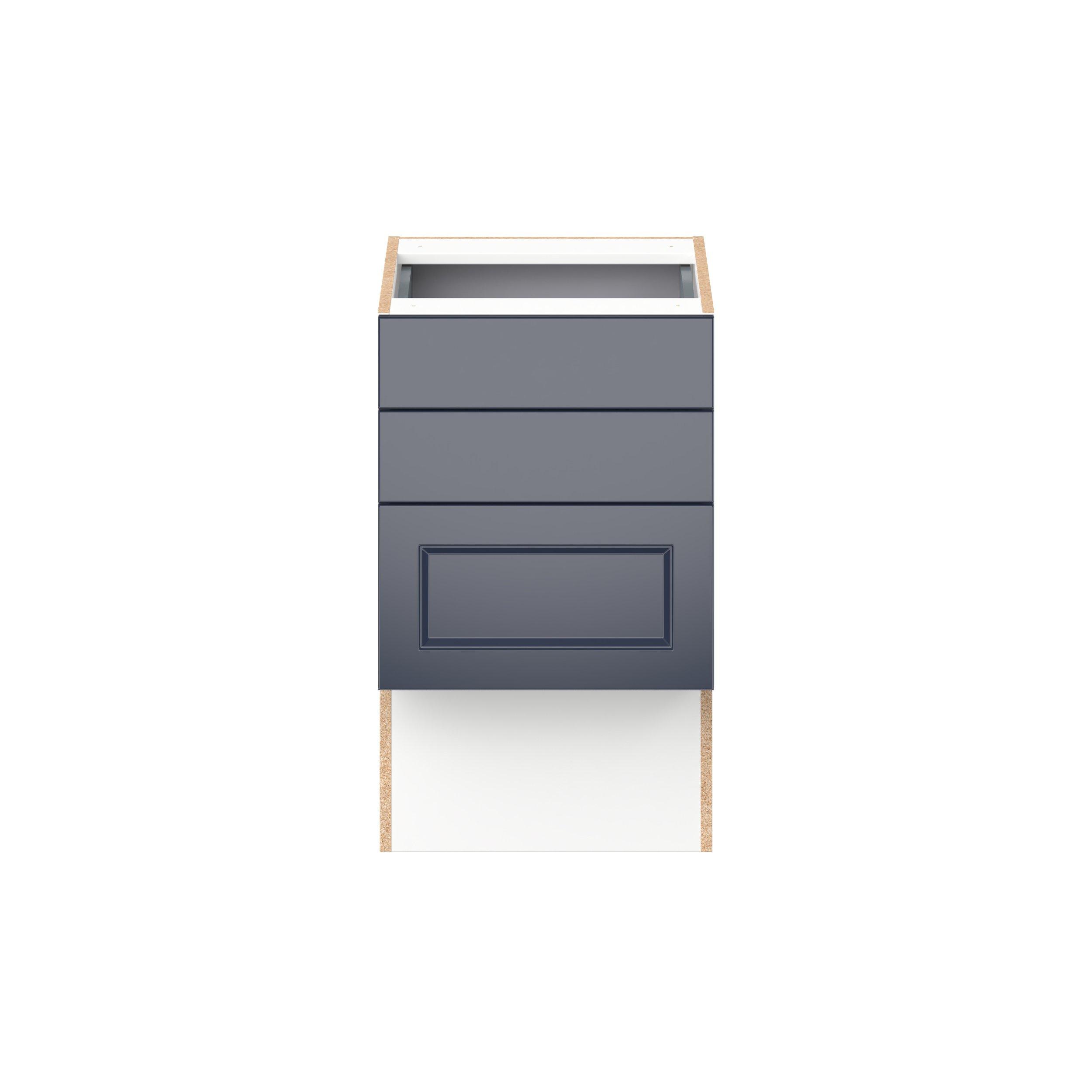 Make a statement with Peachtree premium painted shaker-inspired cabinets, offering both style and durability for years to come. Available in classic bright white and rich midnight blue, this collection is designed to fit seamlessly into both modern and transitional interiors. Crafted from one-piece MDF Studio Design Collection Peachtree 18 in. Painted Midnight Blue Vanity Drawer Base Cabinet is designed to resist hairline cracks while the easy-to-clean finish stands up to stains and moisture. Featuring 5-piece doors and dovetail drawer joints, these cabinets offer durability and elegance. This collection combines style with everyday storage solutions.