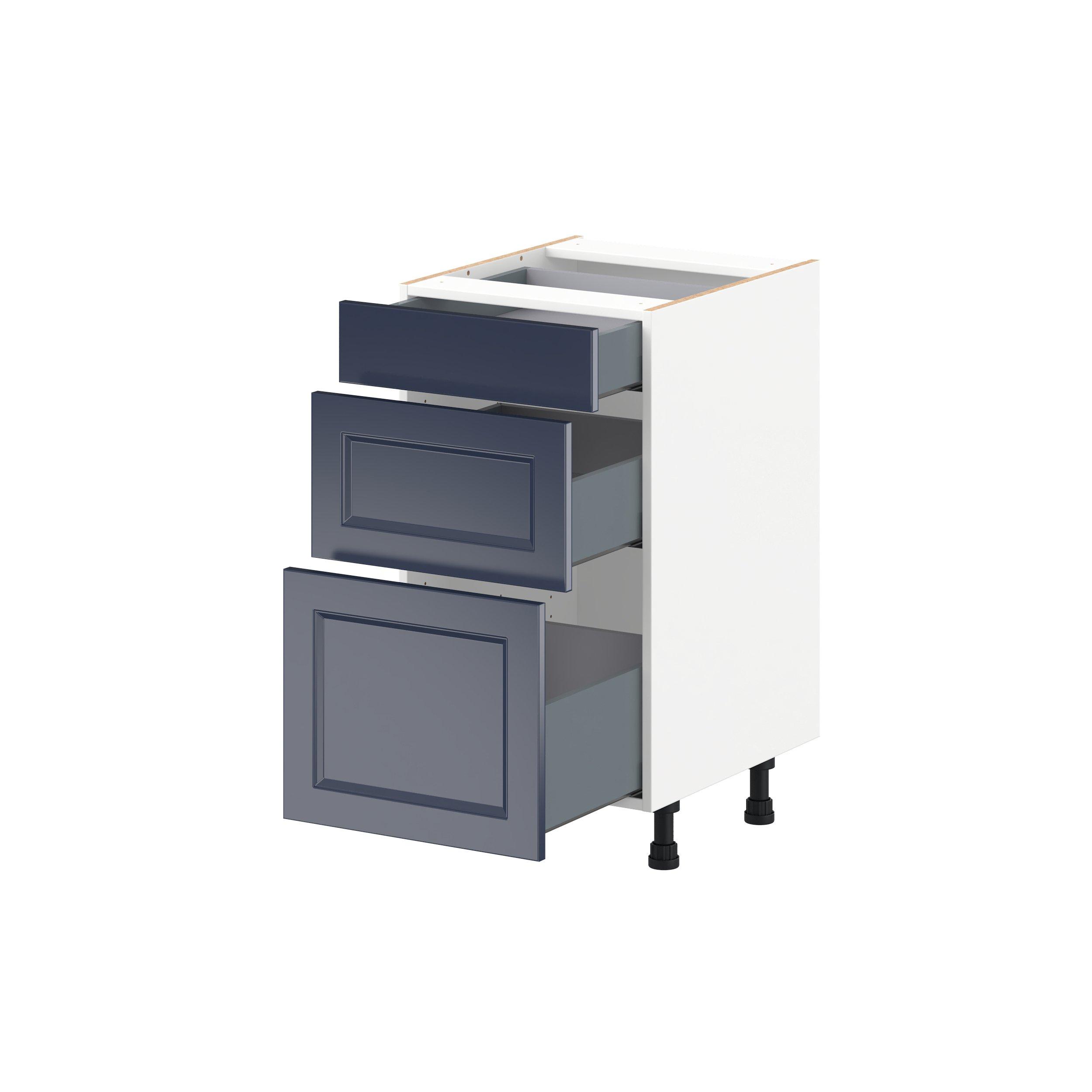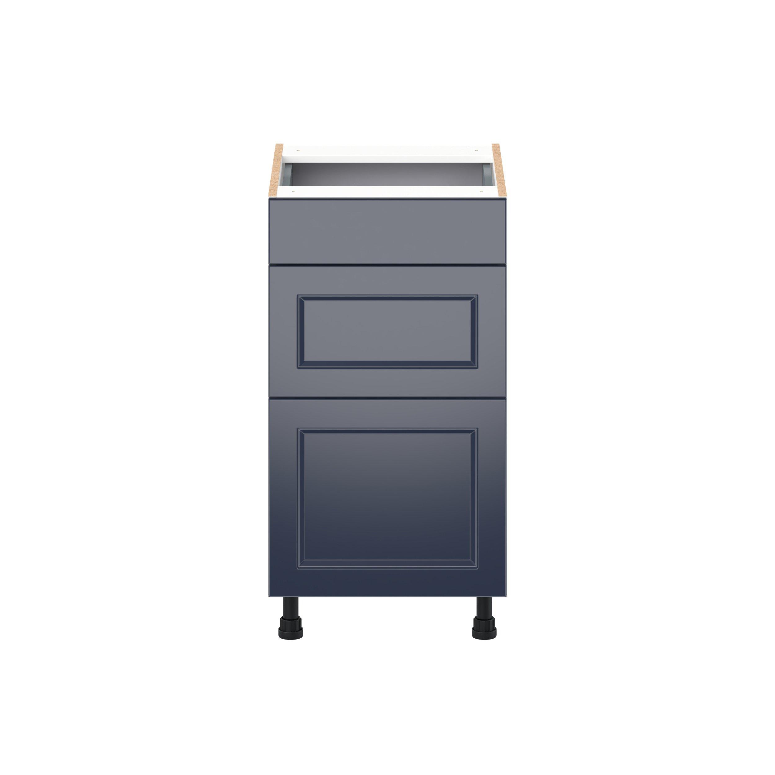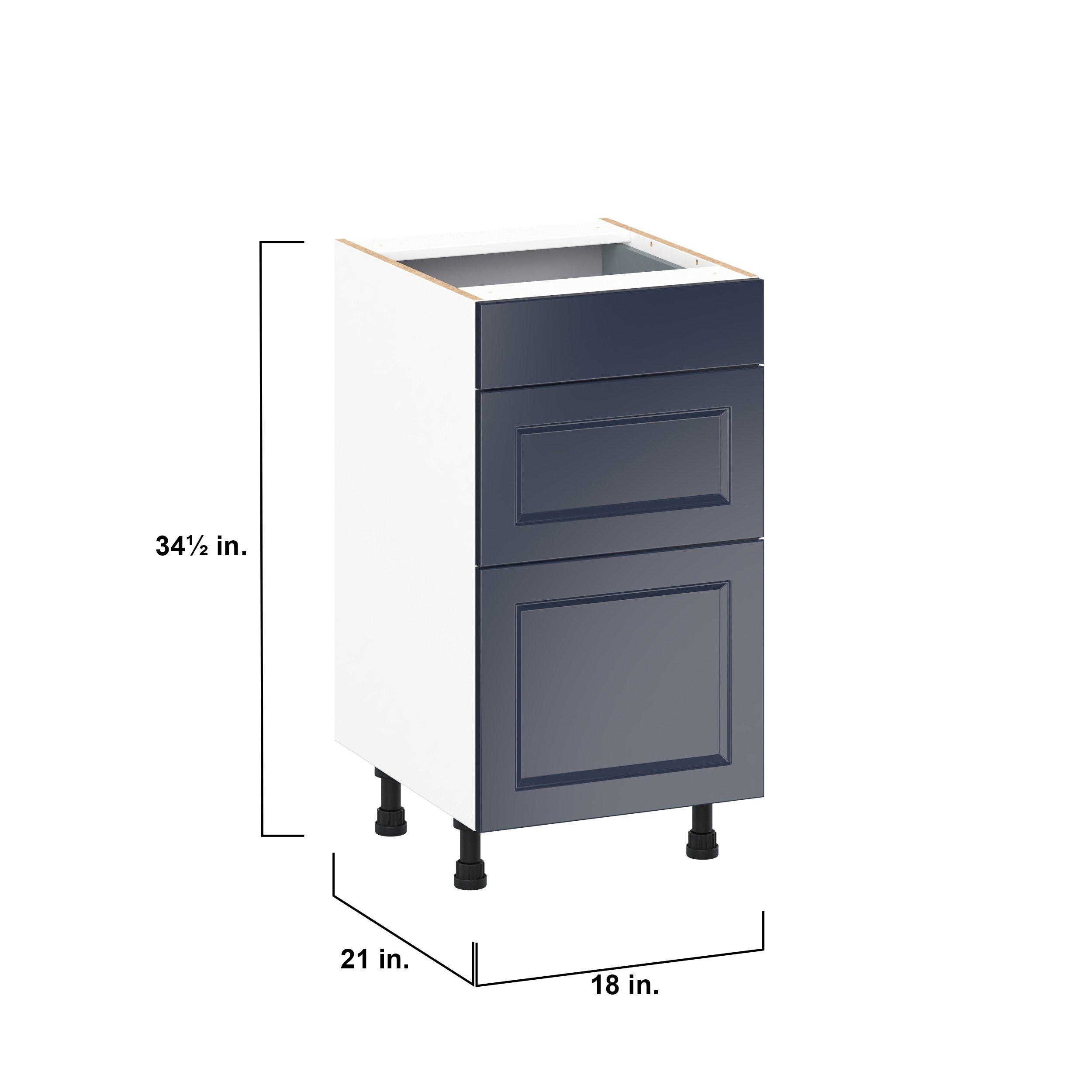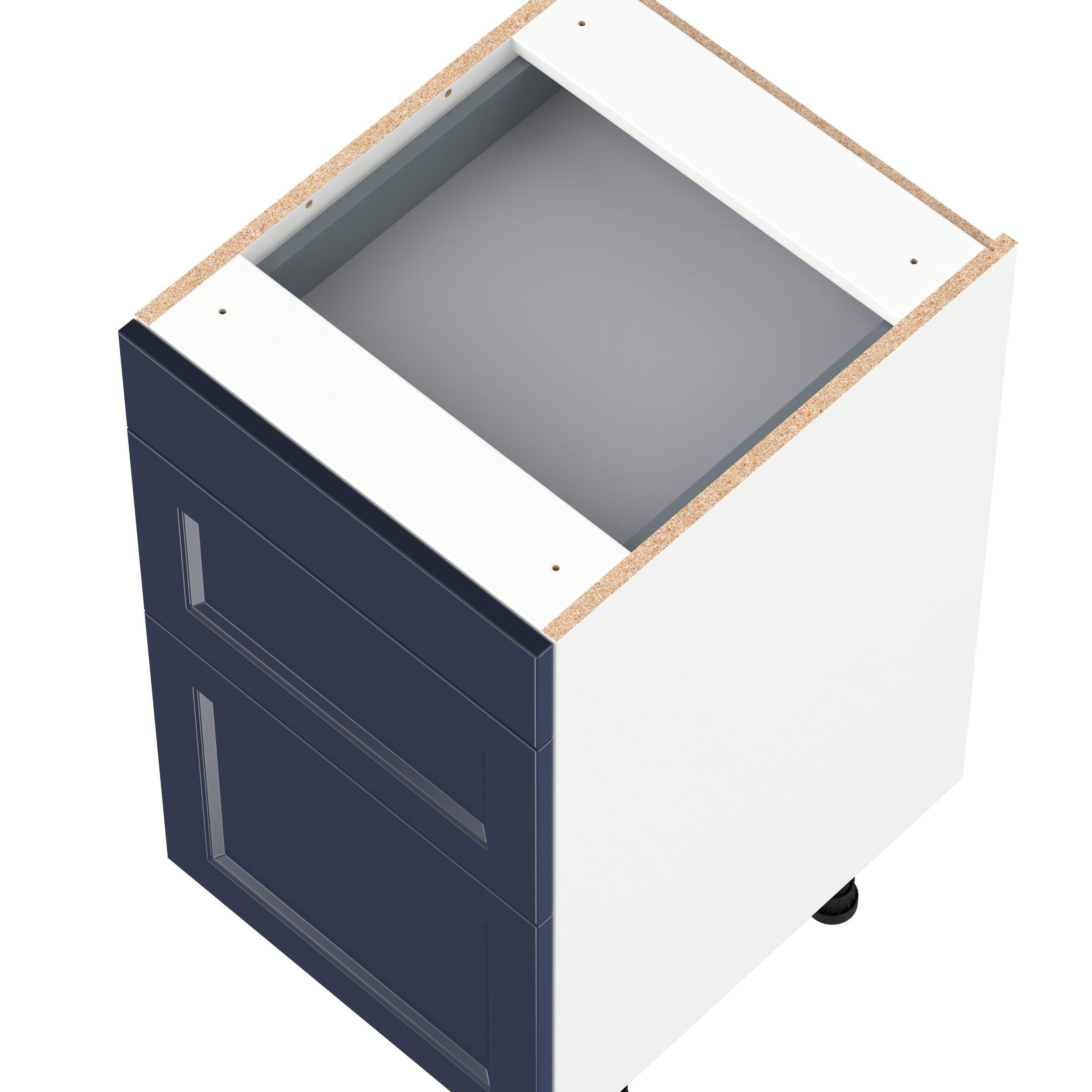 Make a statement with Peachtree premium painted shaker-inspired cabinets, offering both style and durability for years to come. Available in classic bright white and rich midnight blue, this collection is designed to fit seamlessly into both modern and transitional interiors. Crafted from one-piece MDF Studio Design Collection Peachtree 18 in. Painted Midnight Blue Vanity Drawer Base Cabinet is designed to resist hairline cracks while the easy-to-clean finish stands up to stains and moisture. Featuring 5-piece doors and dovetail drawer joints, these cabinets offer durability and elegance. This collection combines style with everyday storage solutions.