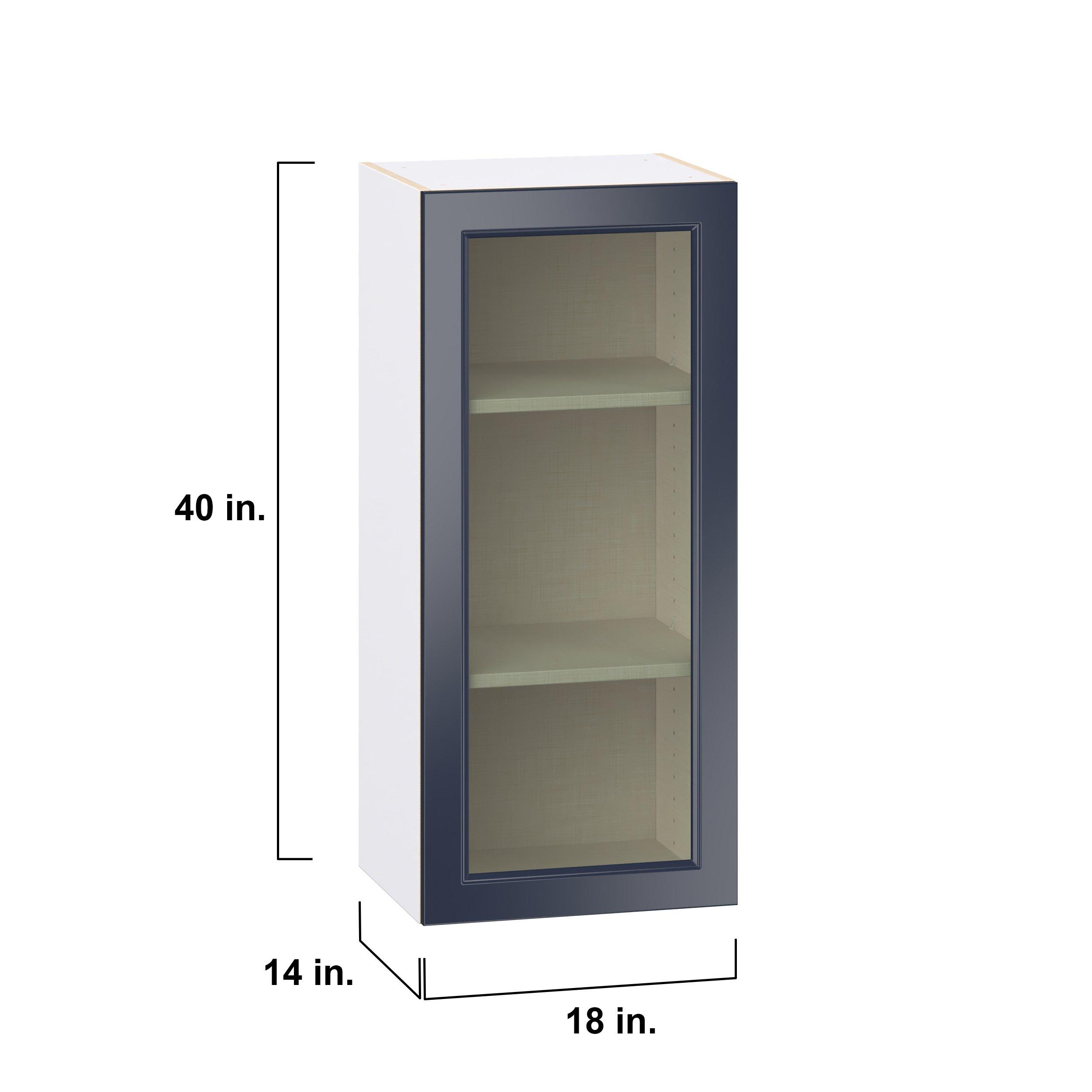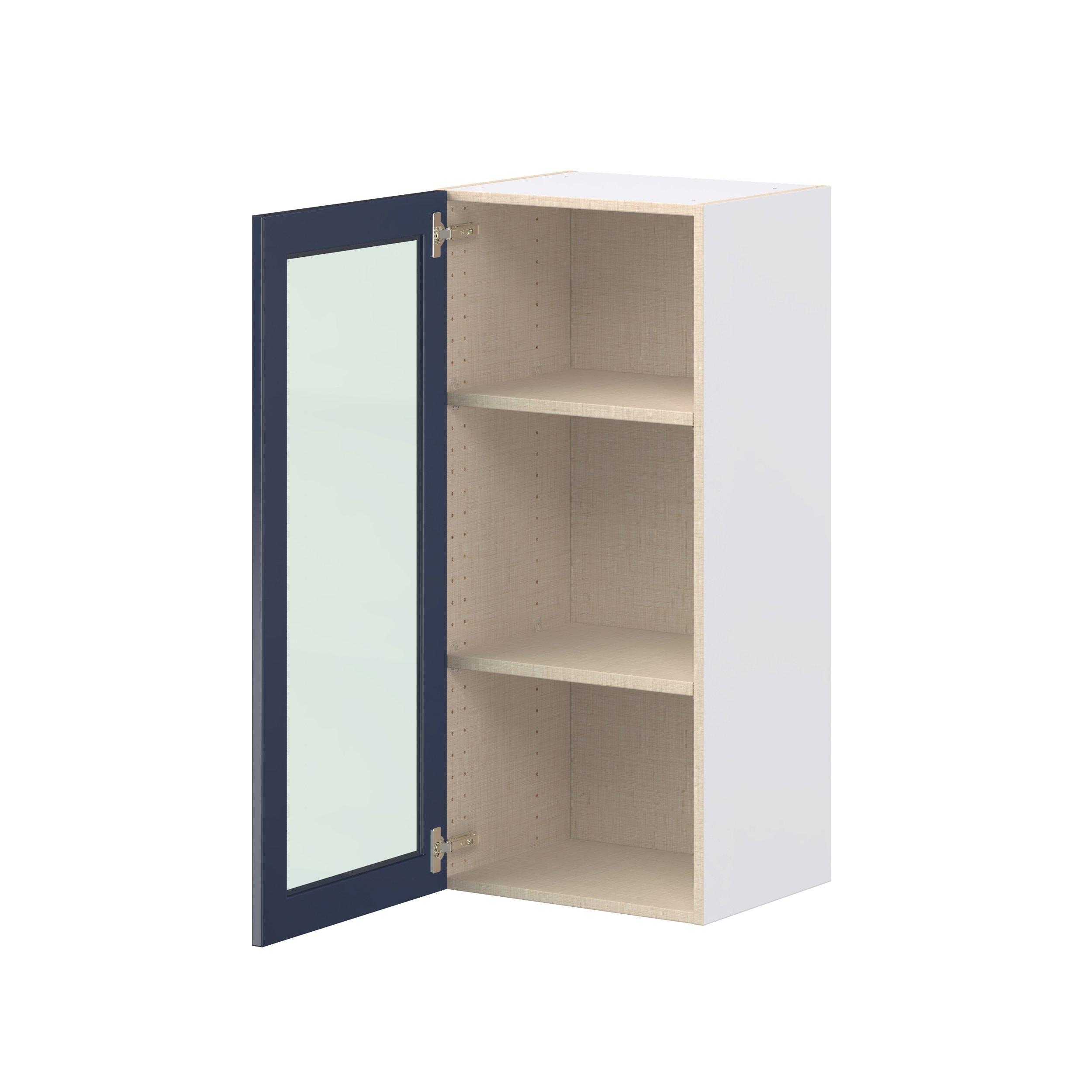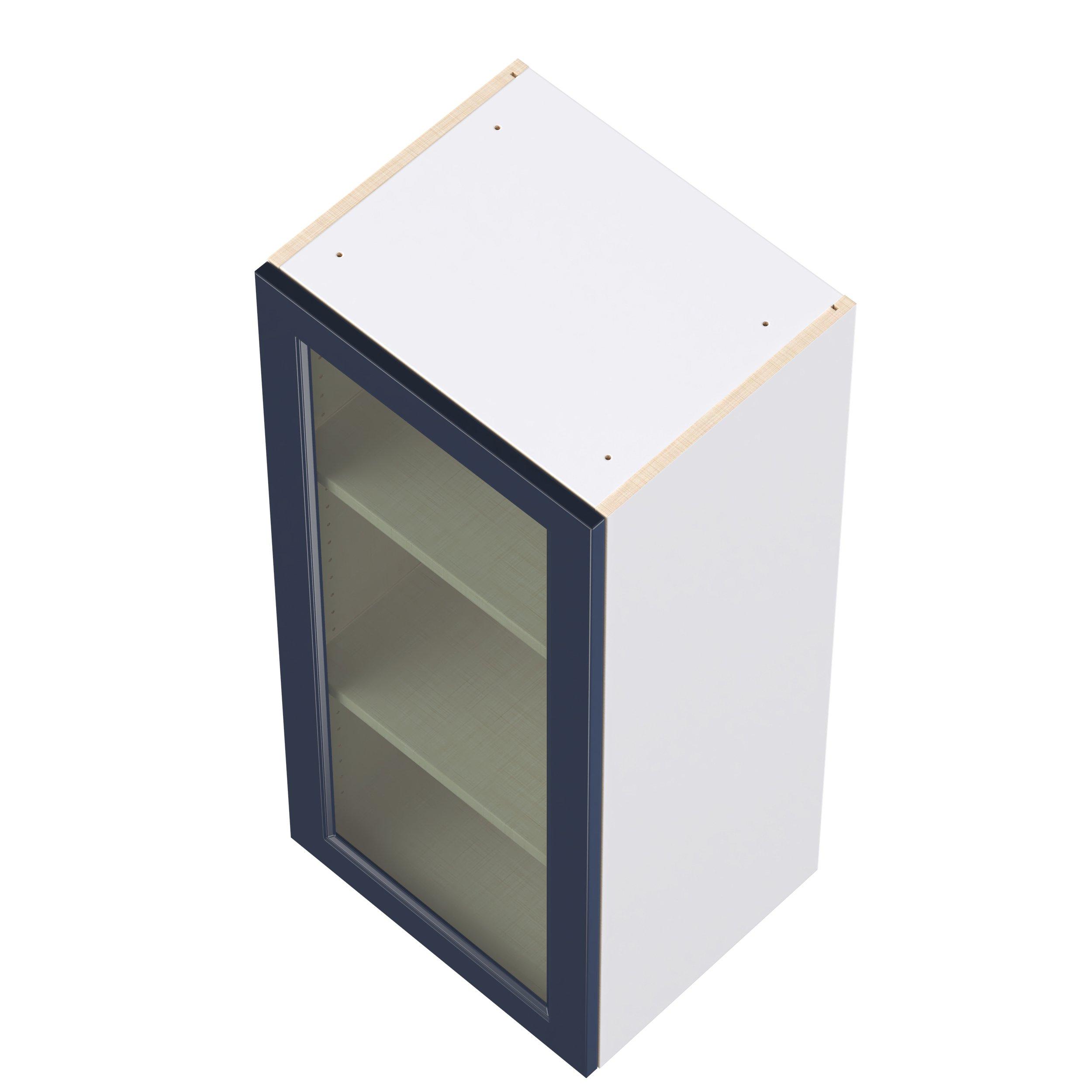 Make a statement with Peachtree premium painted shaker-inspired cabinets, offering both style and durability for years to come. Available in classic bright white and rich midnight blue, this collection is designed to fit seamlessly into both modern and transitional interiors. Crafted from one-piece MDF Studio Design Collection Peachtree 18 in. Painted Midnight Blue Wall Cabinet with Glass Door is designed to resist hairline cracks while the easy-to-clean finish stands up to stains and moisture. Featuring 5-piece doors and dovetail drawer joints, these cabinets offer durability and elegance. This collection combines style with everyday storage solutions.
