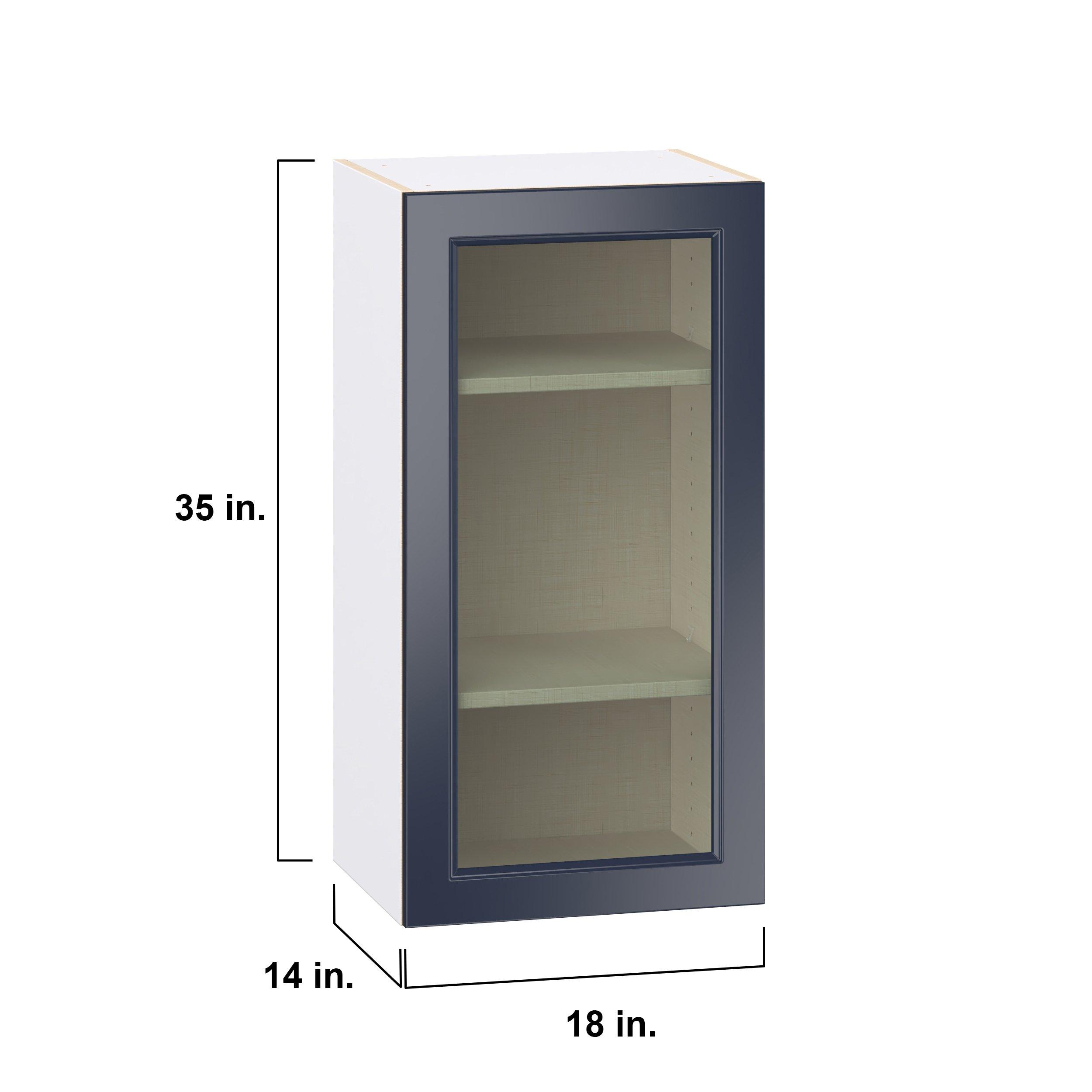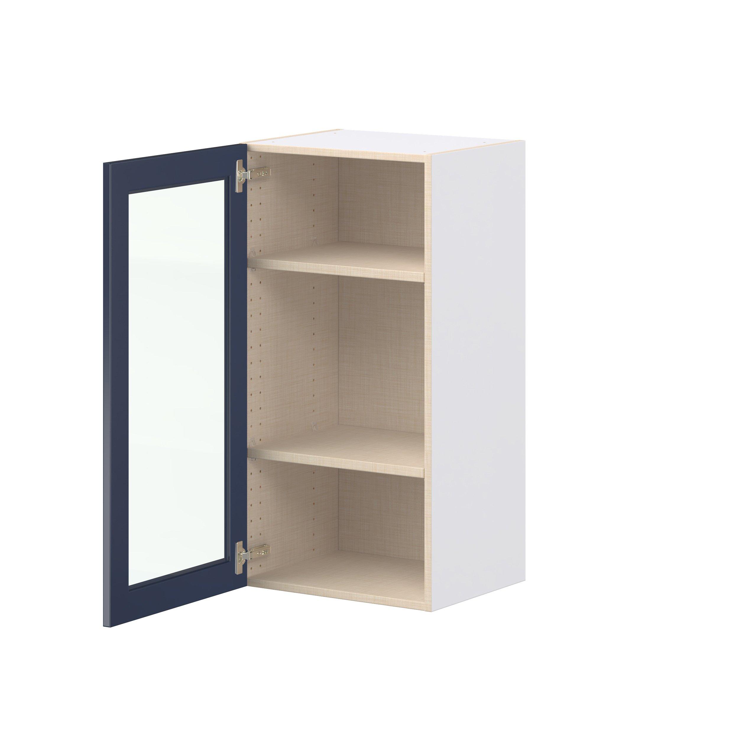 Make a statement with Peachtree premium painted shaker-inspired cabinets, offering both style and durability for years to come. Available in classic bright white and rich midnight blue, this collection is designed to fit seamlessly into both modern and transitional interiors. Crafted from one-piece MDF Studio Design Collection Peachtree 18 in. Painted Midnight Blue Wall Cabinet with Glass Door is designed to resist hairline cracks while the easy-to-clean finish stands up to stains and moisture. Featuring 5-piece doors and dovetail drawer joints, these cabinets offer durability and elegance. This collection combines style with everyday storage solutions.
