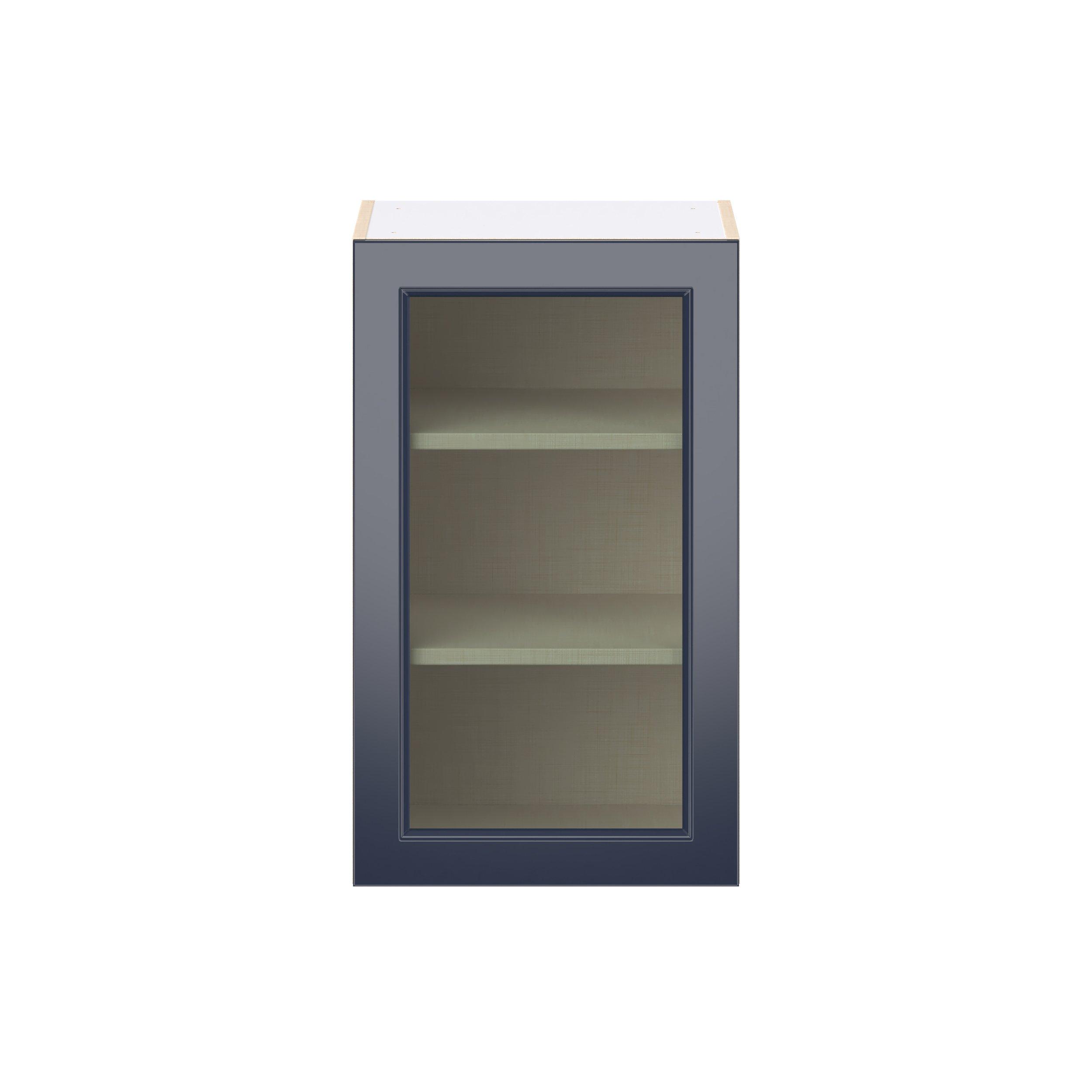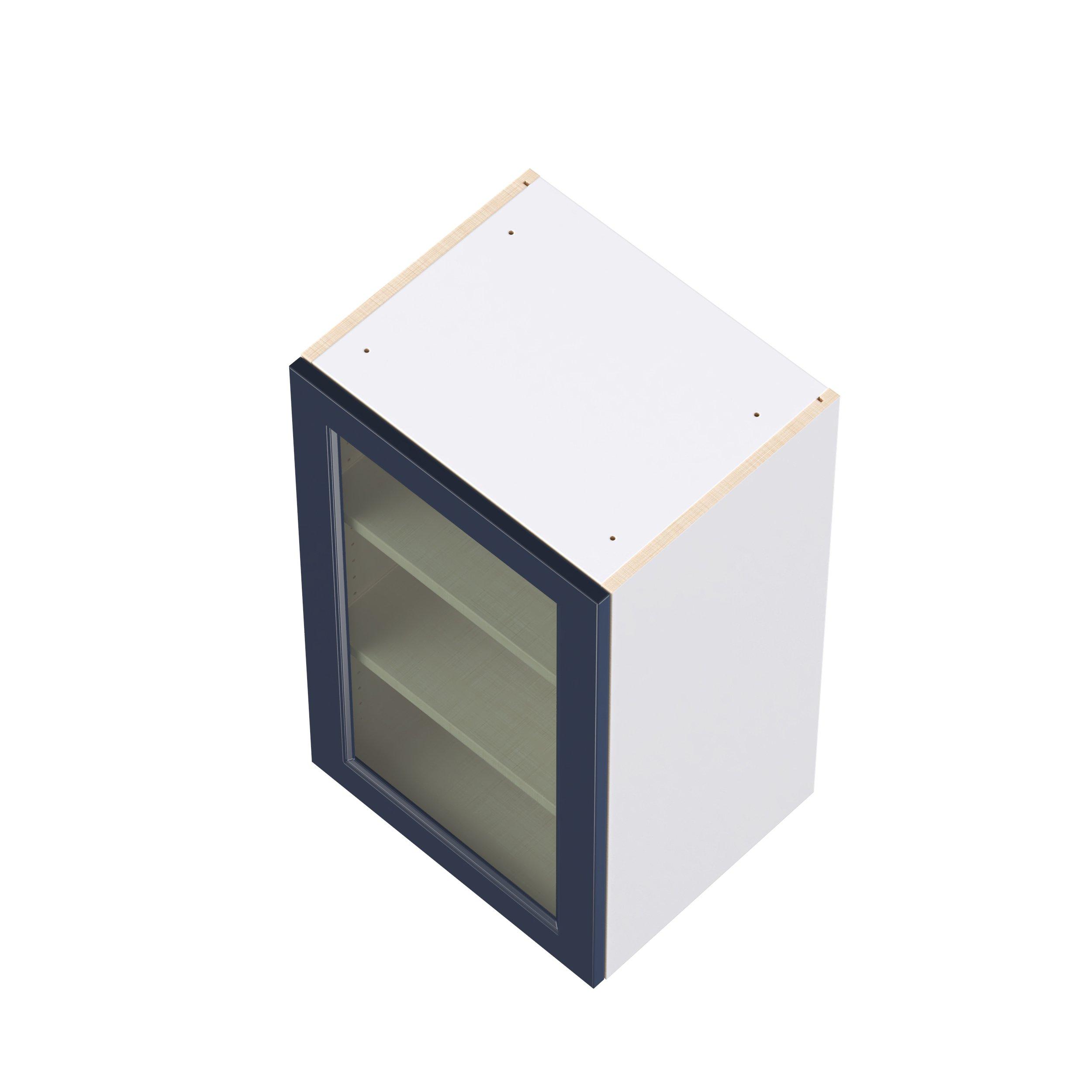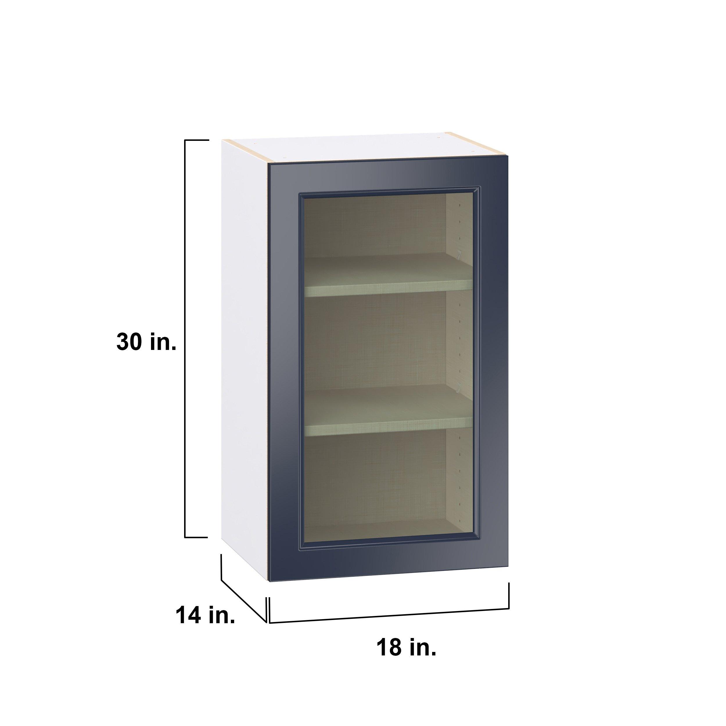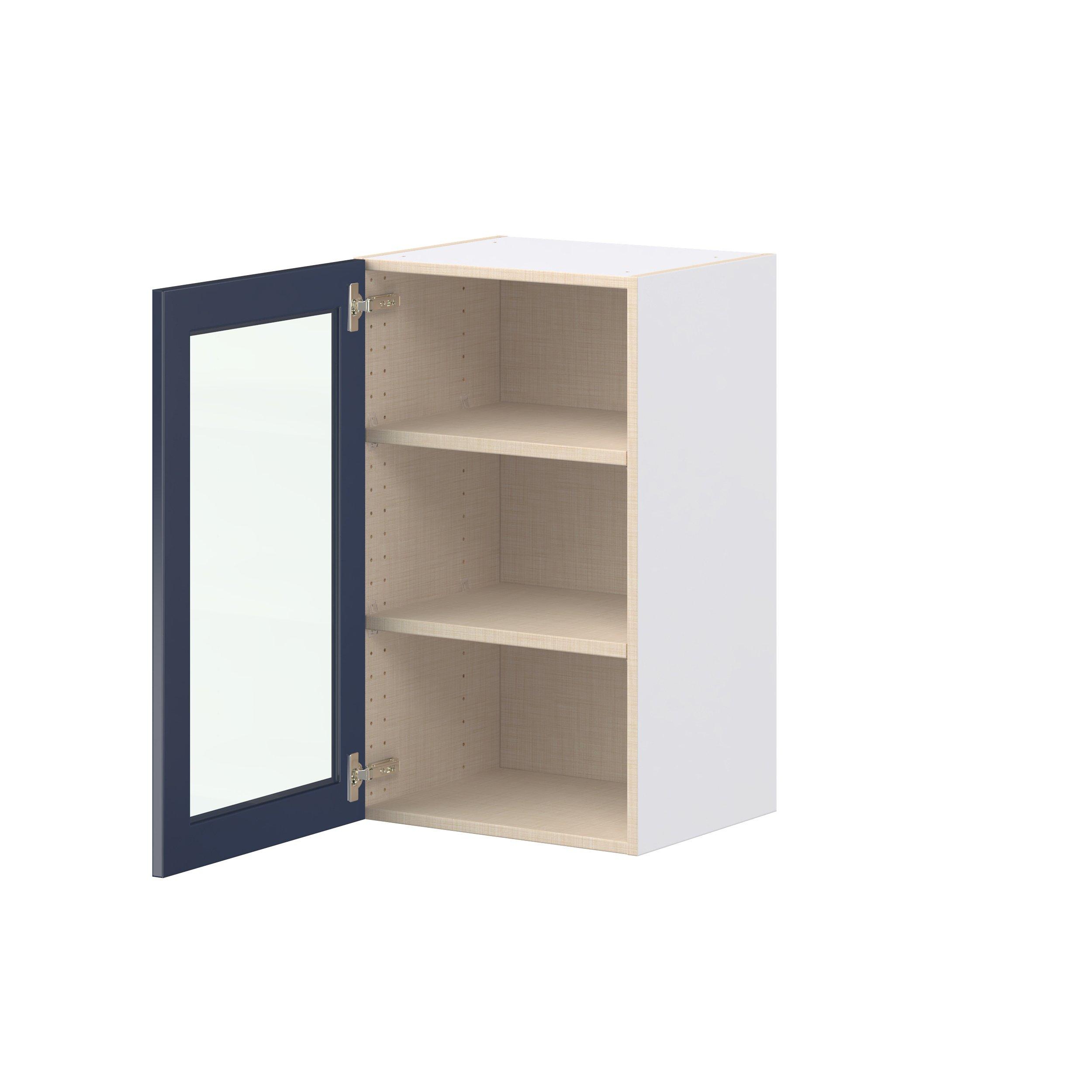 Make a statement with Peachtree premium painted shaker-inspired cabinets, offering both style and durability for years to come. Available in classic bright white and rich midnight blue, this collection is designed to fit seamlessly into both modern and transitional interiors. Crafted from one-piece MDF Studio Design Collection Peachtree 18 in. Painted Midnight Blue Wall Cabinet with Glass Door is designed to resist hairline cracks while the easy-to-clean finish stands up to stains and moisture. Featuring 5-piece doors and dovetail drawer joints, these cabinets offer durability and elegance. This collection combines style with everyday storage solutions.