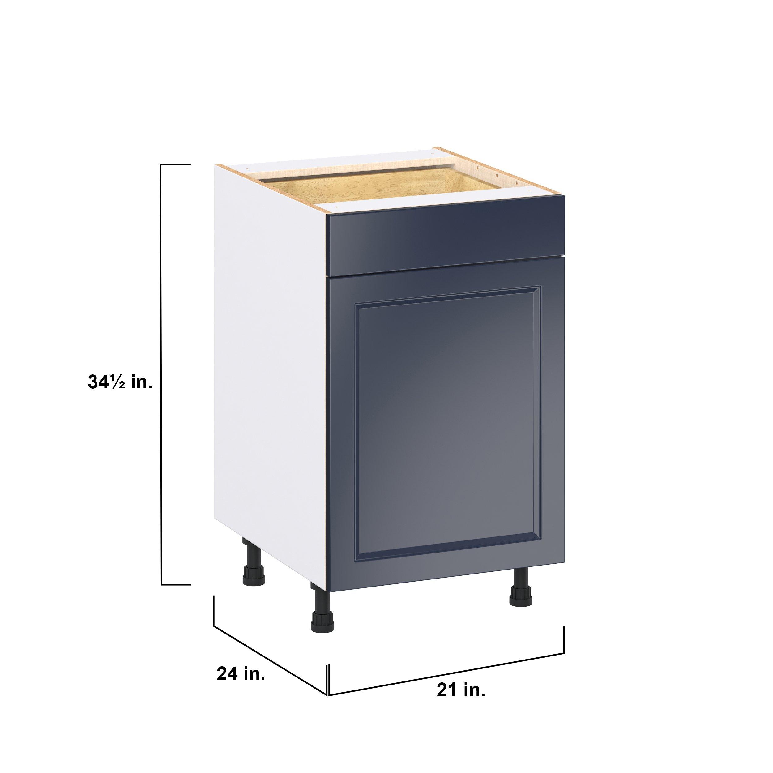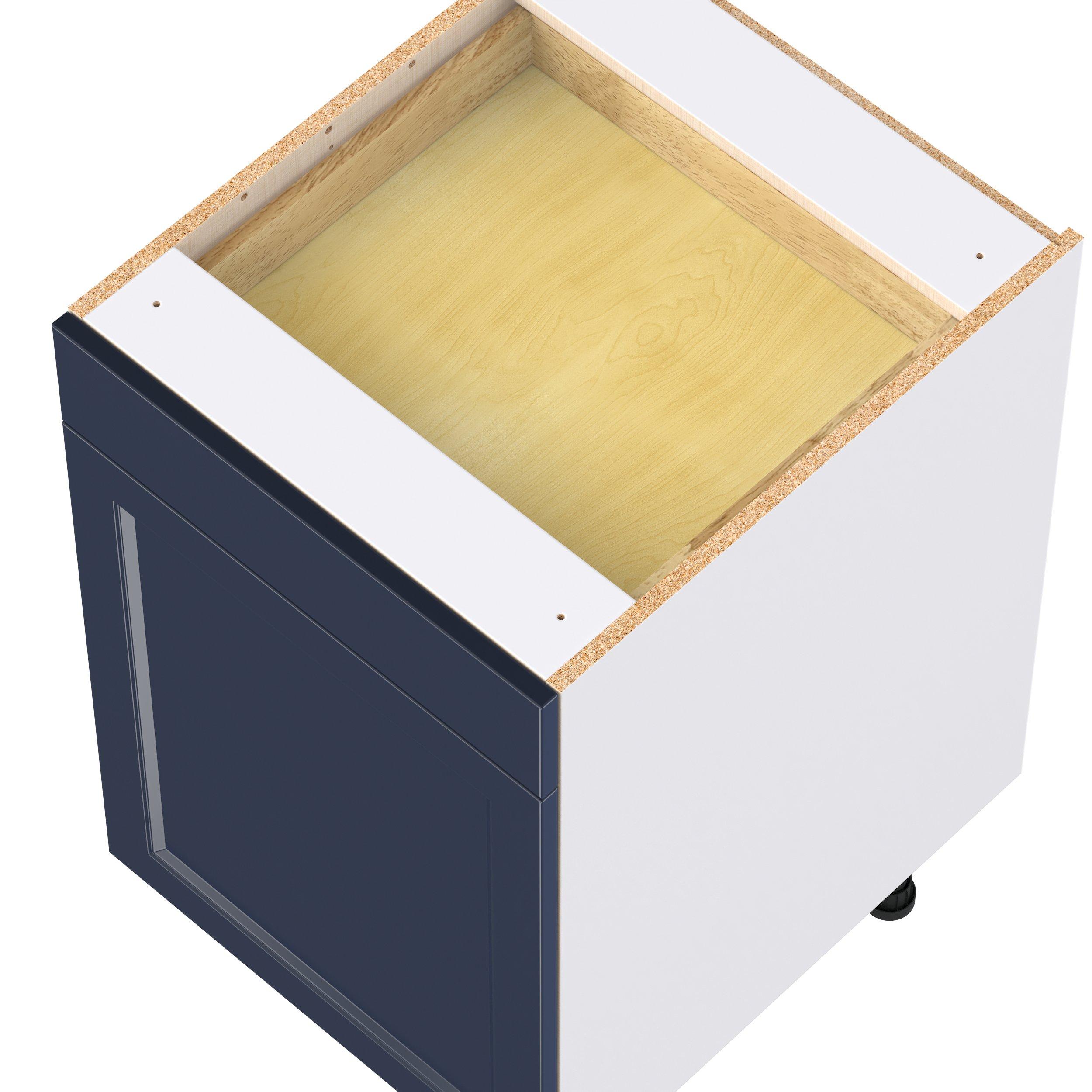 Make a statement with Peachtree premium painted shaker-inspired cabinets, offering both style and durability for years to come. Available in classic bright white and rich midnight blue, this collection is designed to fit seamlessly into both modern and transitional interiors. Crafted from one-piece MDF Studio Design Collection Peachtree 21 in. Painted Midnight Blue Door and Drawer Base Cabinet is designed to resist hairline cracks while the easy-to-clean finish stands up to stains and moisture. Featuring 5-piece doors and dovetail drawer joints, these cabinets offer durability and elegance. This collection combines style with everyday storage solutions.