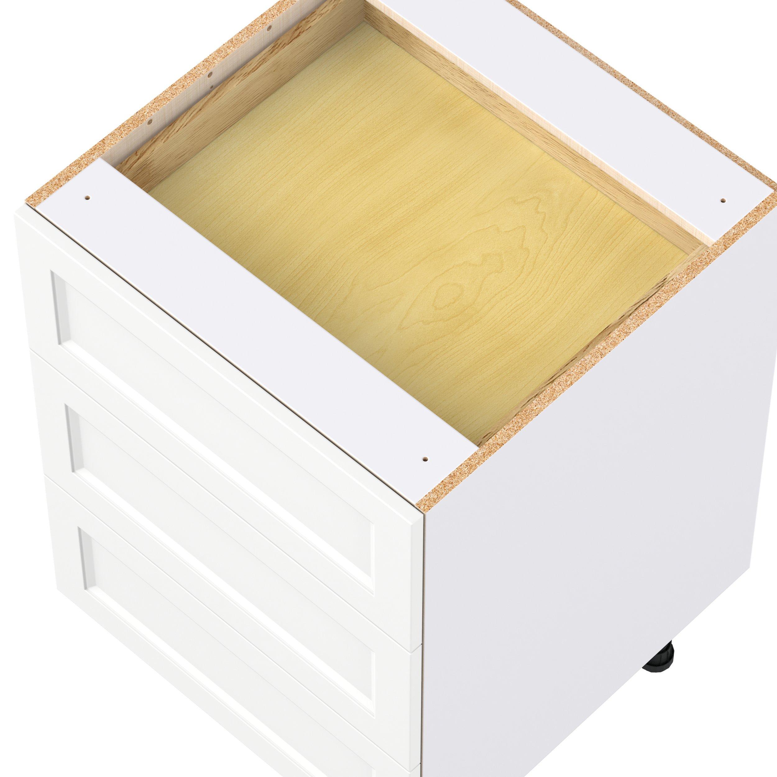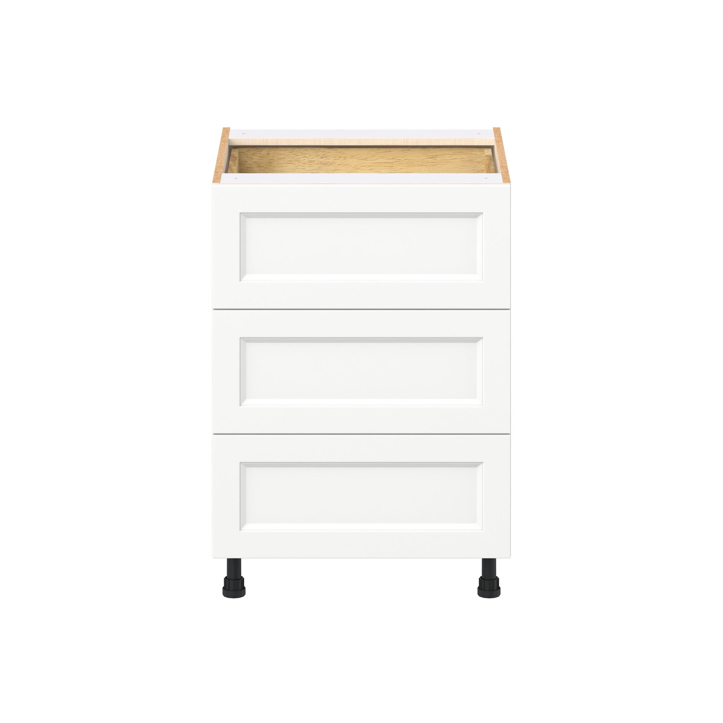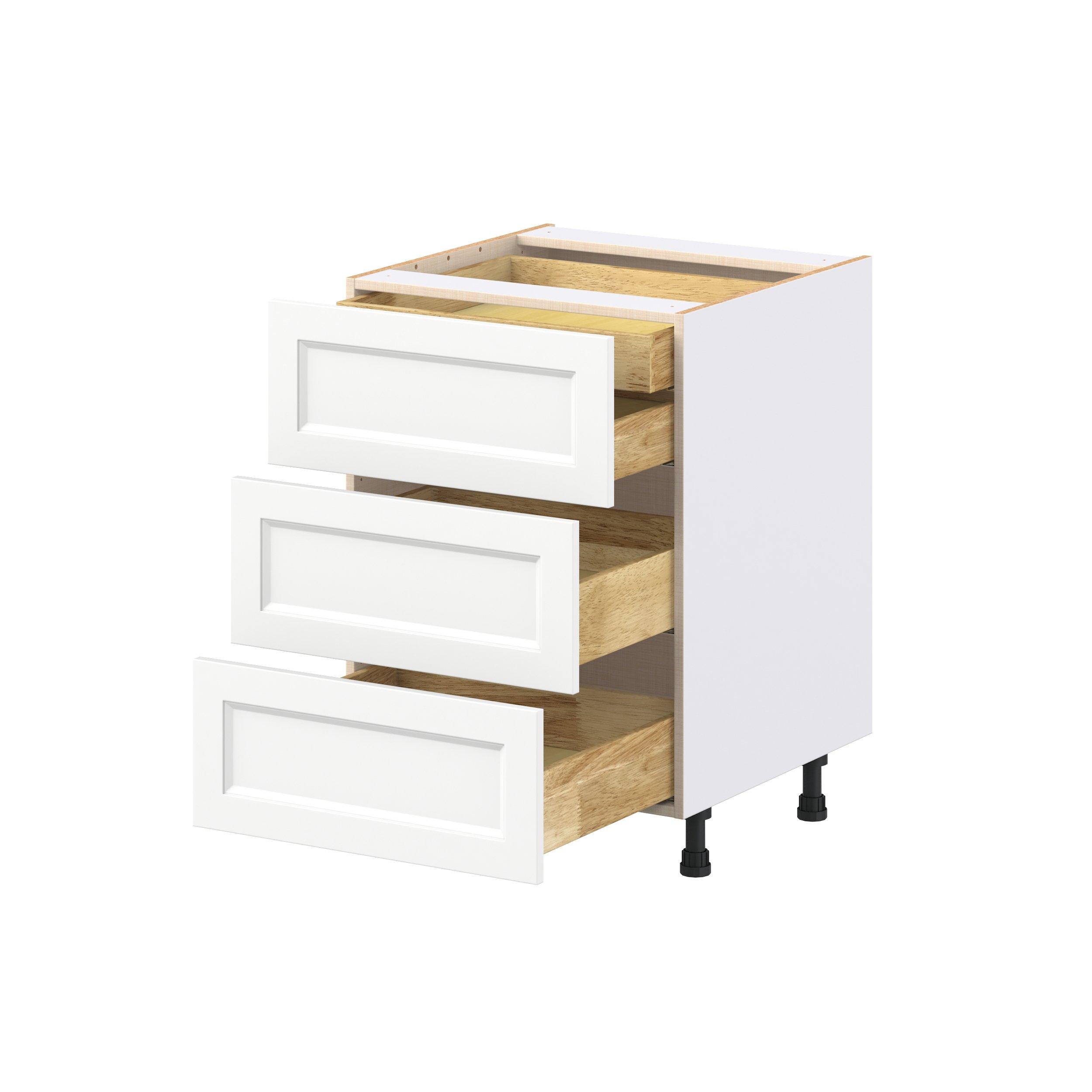 Make a statement with Peachtree premium painted shaker-inspired cabinets, offering both style and durability for years to come. Available in classic bright white and rich midnight blue, this collection is designed to fit seamlessly into both modern and transitional interiors. Crafted from one-piece MDF Studio Design Collection Peachtree 24 in. Painted Bright White Base Cabinet with Inner Pull-Out Drawer is designed to resist hairline cracks while the easy-to-clean finish stands up to stains and moisture. Featuring 5-piece doors and dovetail drawer joints, these cabinets offer durability and elegance. This collection combines style with everyday storage solutions.