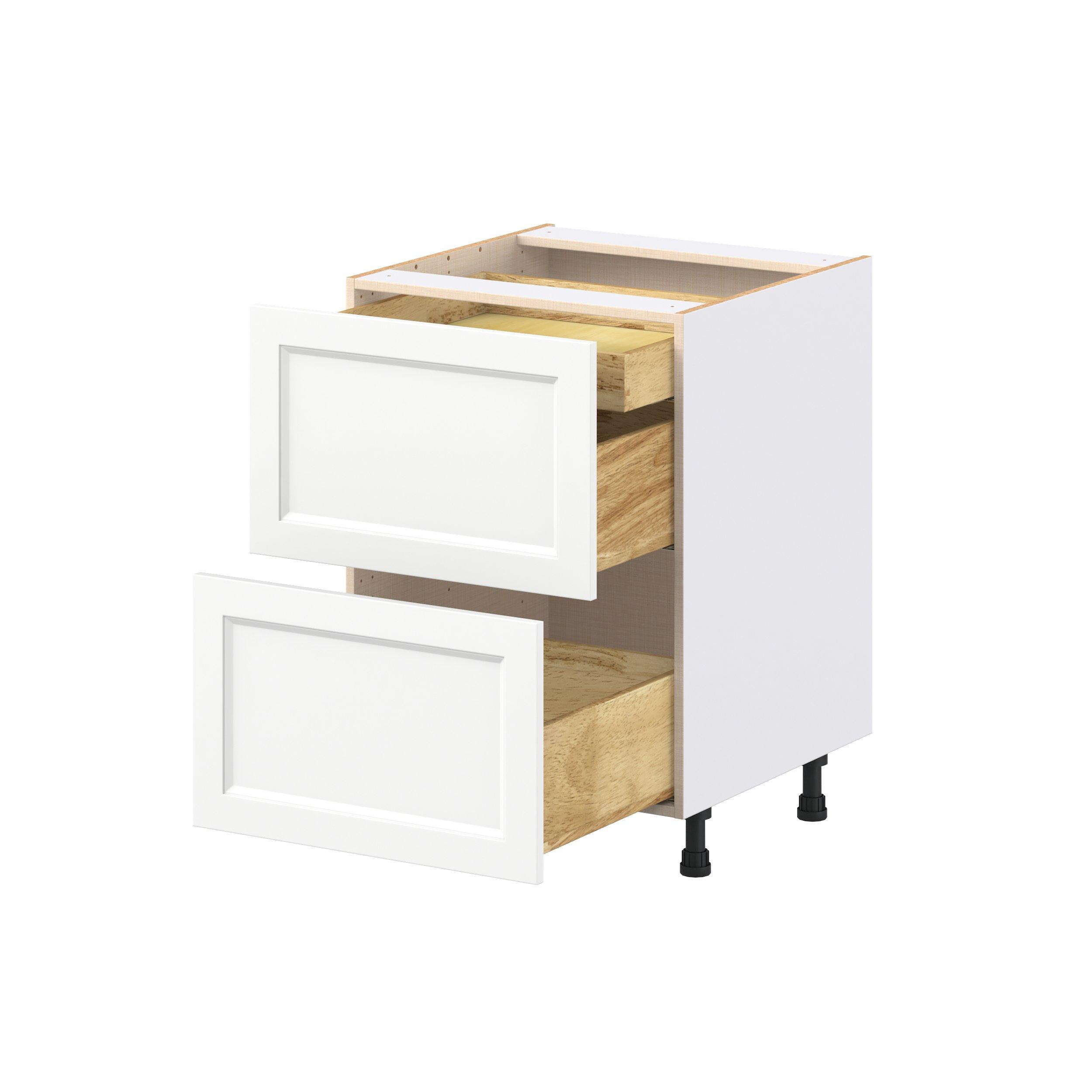 Make a statement with Peachtree premium painted shaker-inspired cabinets, offering both style and durability for years to come. Available in classic bright white and rich midnight blue, this collection is designed to fit seamlessly into both modern and transitional interiors. Crafted from one-piece MDF Studio Design Collection Peachtree 24 in. Painted Bright White Base Cabinet with Inner Pull-Out Drawer is designed to resist hairline cracks while the easy-to-clean finish stands up to stains and moisture. Featuring 5-piece doors and dovetail drawer joints, these cabinets offer durability and elegance. This collection combines style with everyday storage solutions.
