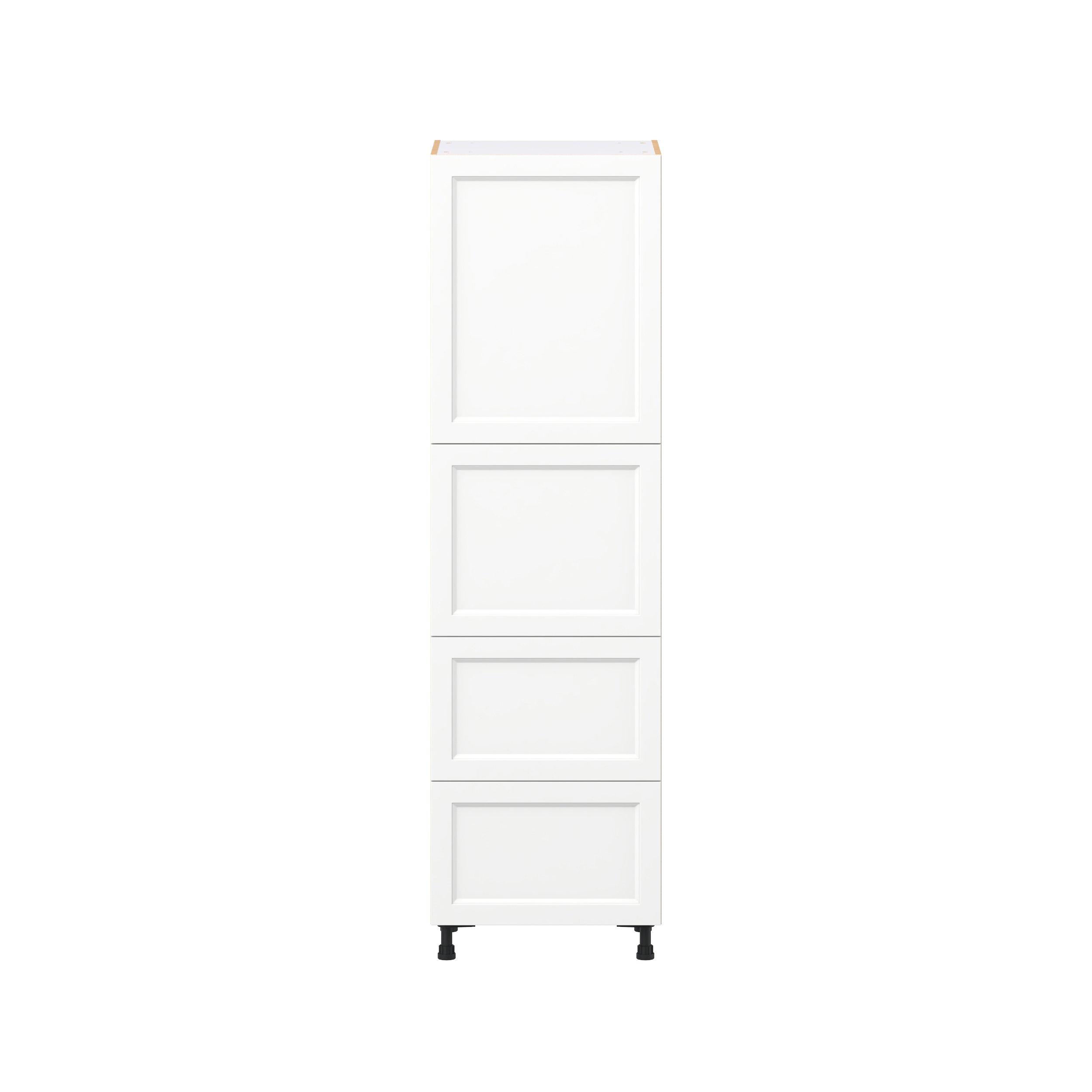 Make a statement with Peachtree premium painted shaker-inspired cabinets, offering both style and durability for years to come. Available in classic bright white and rich midnight blue, this collection is designed to fit seamlessly into both modern and transitional interiors. Crafted from one-piece MDF Studio Design Collection Peachtree 24 in. Painted Bright White Door and Drawer Pantry Cabinet with Inner Pull-Out is designed to resist hairline cracks while the easy-to-clean finish stands up to stains and moisture. Featuring 5-piece doors and dovetail drawer joints, these cabinets offer durability and elegance. This collection combines style with everyday storage solutions.
