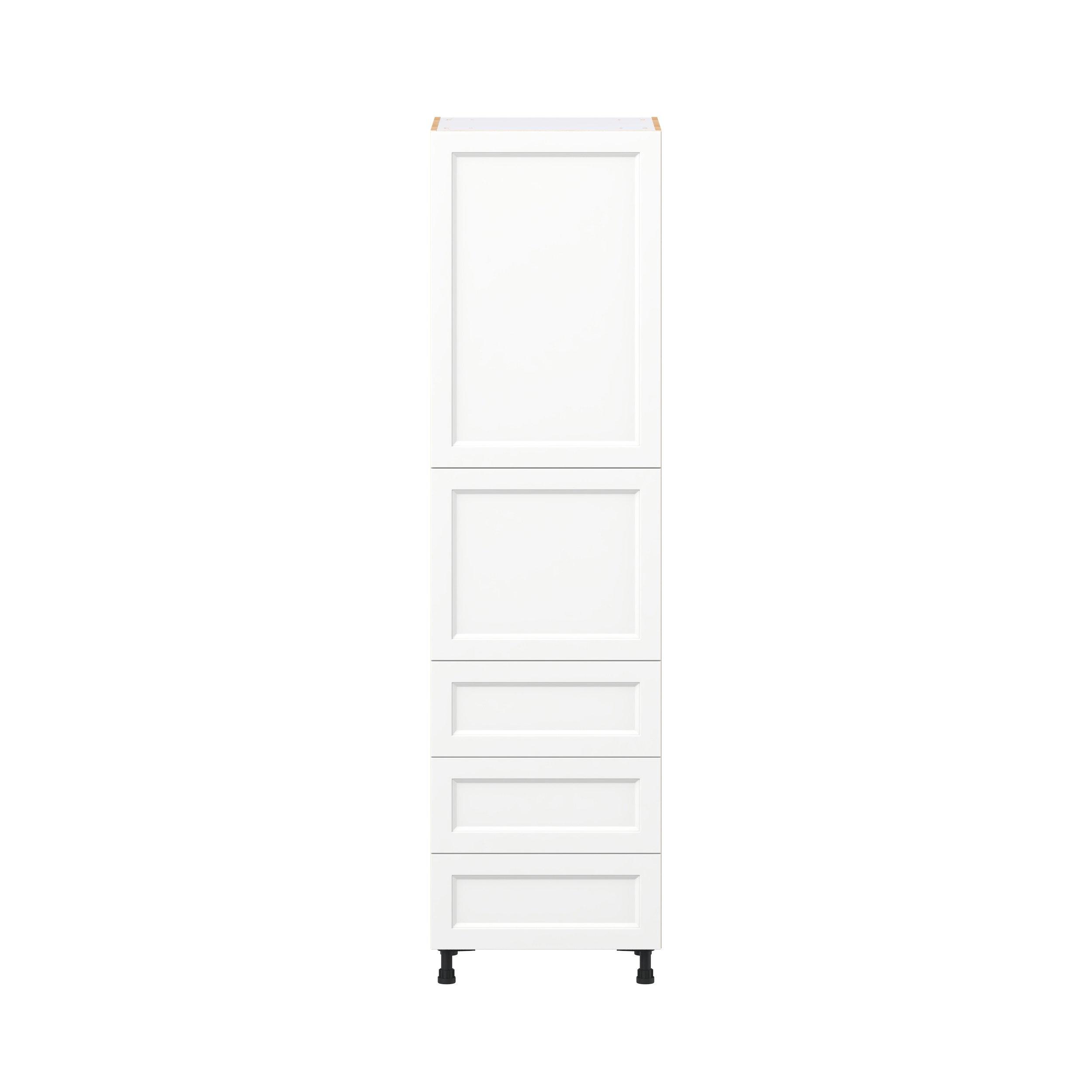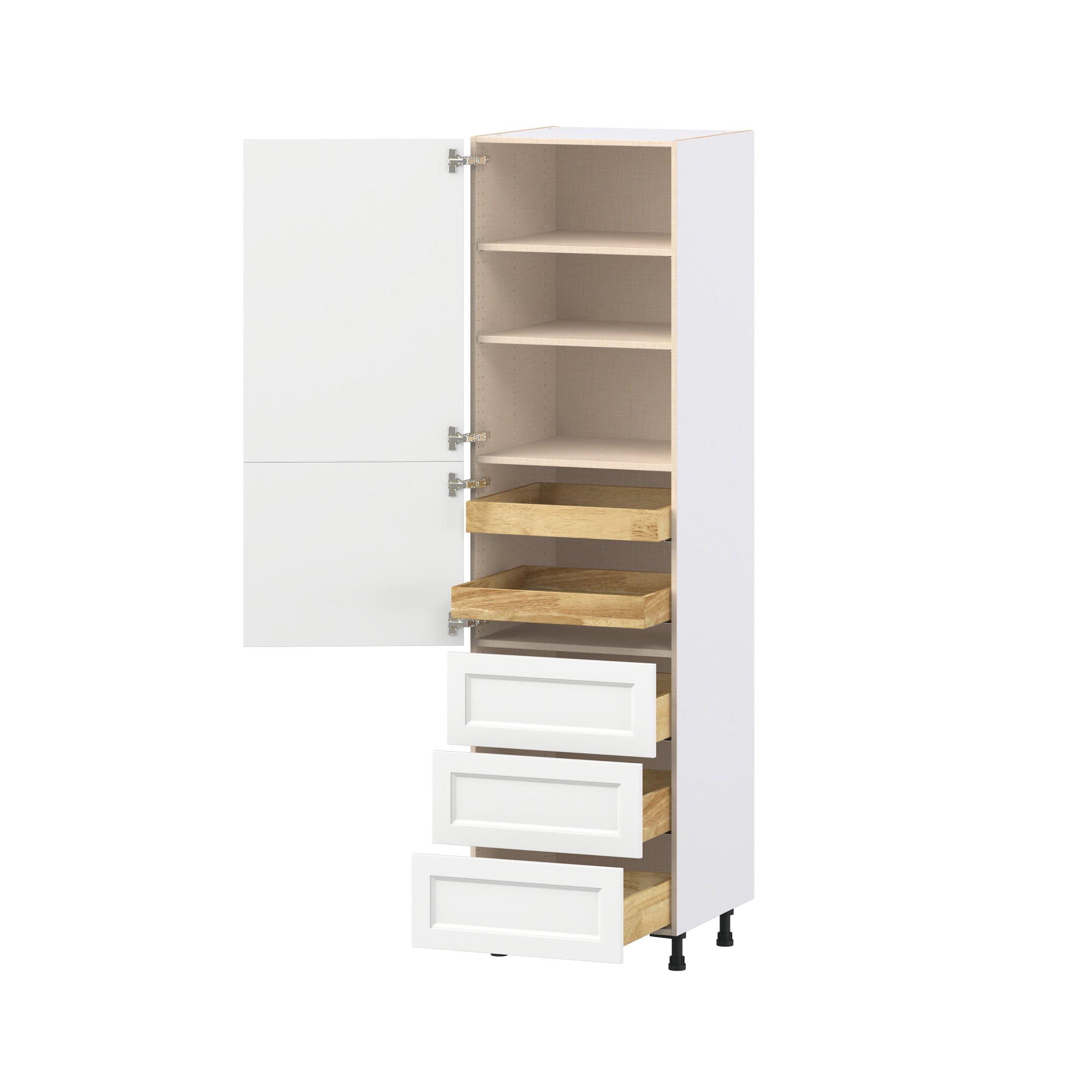 Make a statement with Peachtree premium painted shaker-inspired cabinets, offering both style and durability for years to come. Available in classic bright white and rich midnight blue, this collection is designed to fit seamlessly into both modern and transitional interiors. Crafted from one-piece MDF Studio Design Collection Peachtree 24 in. Painted Bright White Door and Drawer Pantry Cabinet with Inner Pull-Out is designed to resist hairline cracks while the easy-to-clean finish stands up to stains and moisture. Featuring 5-piece doors and dovetail drawer joints, these cabinets offer durability and elegance. This collection combines style with everyday storage solutions.