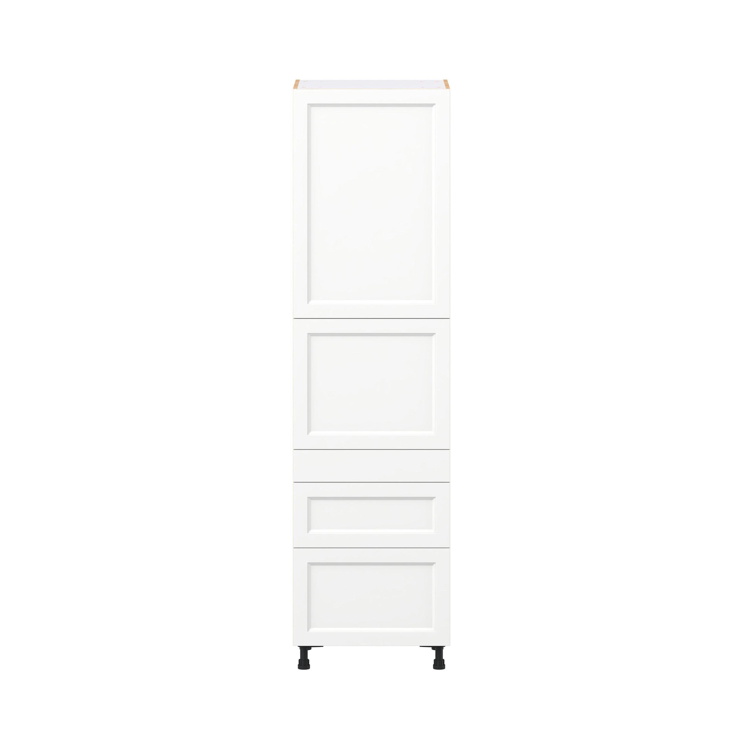 Make a statement with Peachtree premium painted shaker-inspired cabinets, offering both style and durability for years to come. Available in classic bright white and rich midnight blue, this collection is designed to fit seamlessly into both modern and transitional interiors. Crafted from one-piece MDF Studio Design Collection Peachtree 24 in. Painted Bright White Door and Drawer Pantry Cabinet with Inner Pull-Out is designed to resist hairline cracks while the easy-to-clean finish stands up to stains and moisture. Featuring 5-piece doors and dovetail drawer joints, these cabinets offer durability and elegance. This collection combines style with everyday storage solutions.