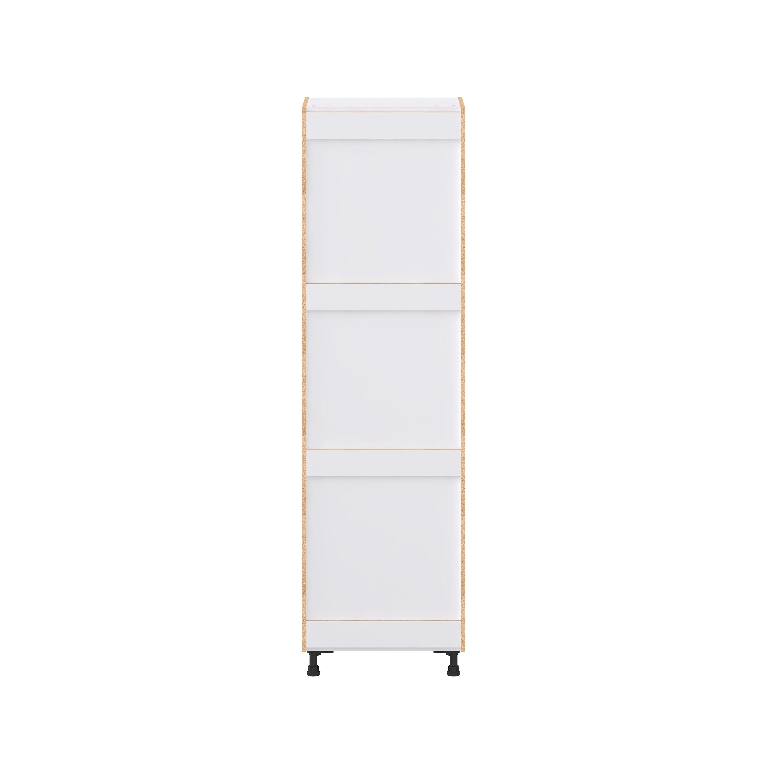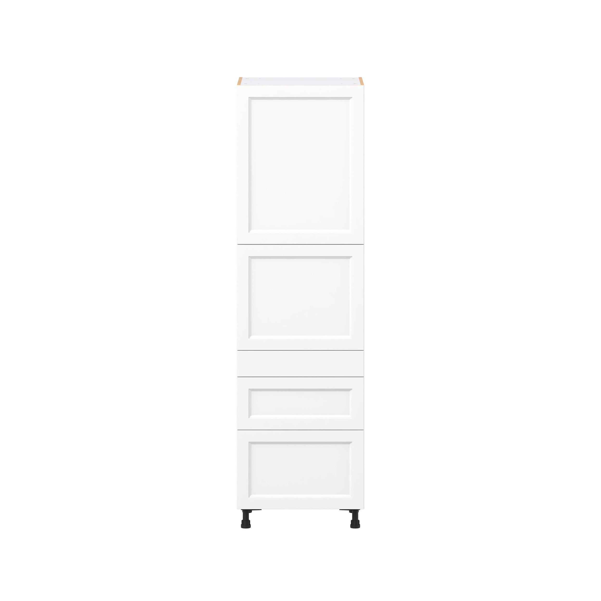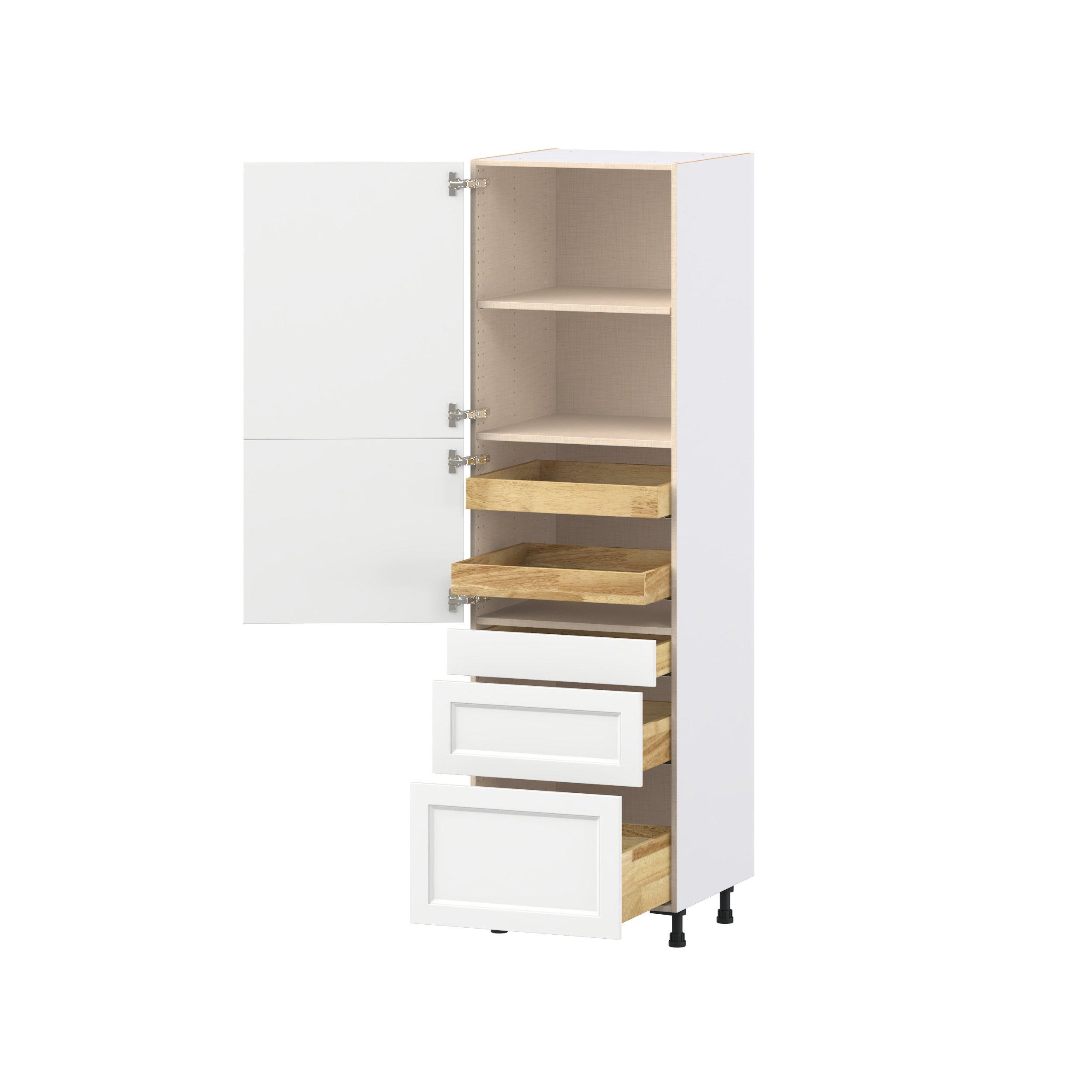 Make a statement with Peachtree premium painted shaker-inspired cabinets, offering both style and durability for years to come. Available in classic bright white and rich midnight blue, this collection is designed to fit seamlessly into both modern and transitional interiors. Crafted from one-piece MDF Studio Design Collection Peachtree 24 in. Painted Bright White Door and Drawer Pantry Cabinet with Inner Pull-Out is designed to resist hairline cracks while the easy-to-clean finish stands up to stains and moisture. Featuring 5-piece doors and dovetail drawer joints, these cabinets offer durability and elegance. This collection combines style with everyday storage solutions.