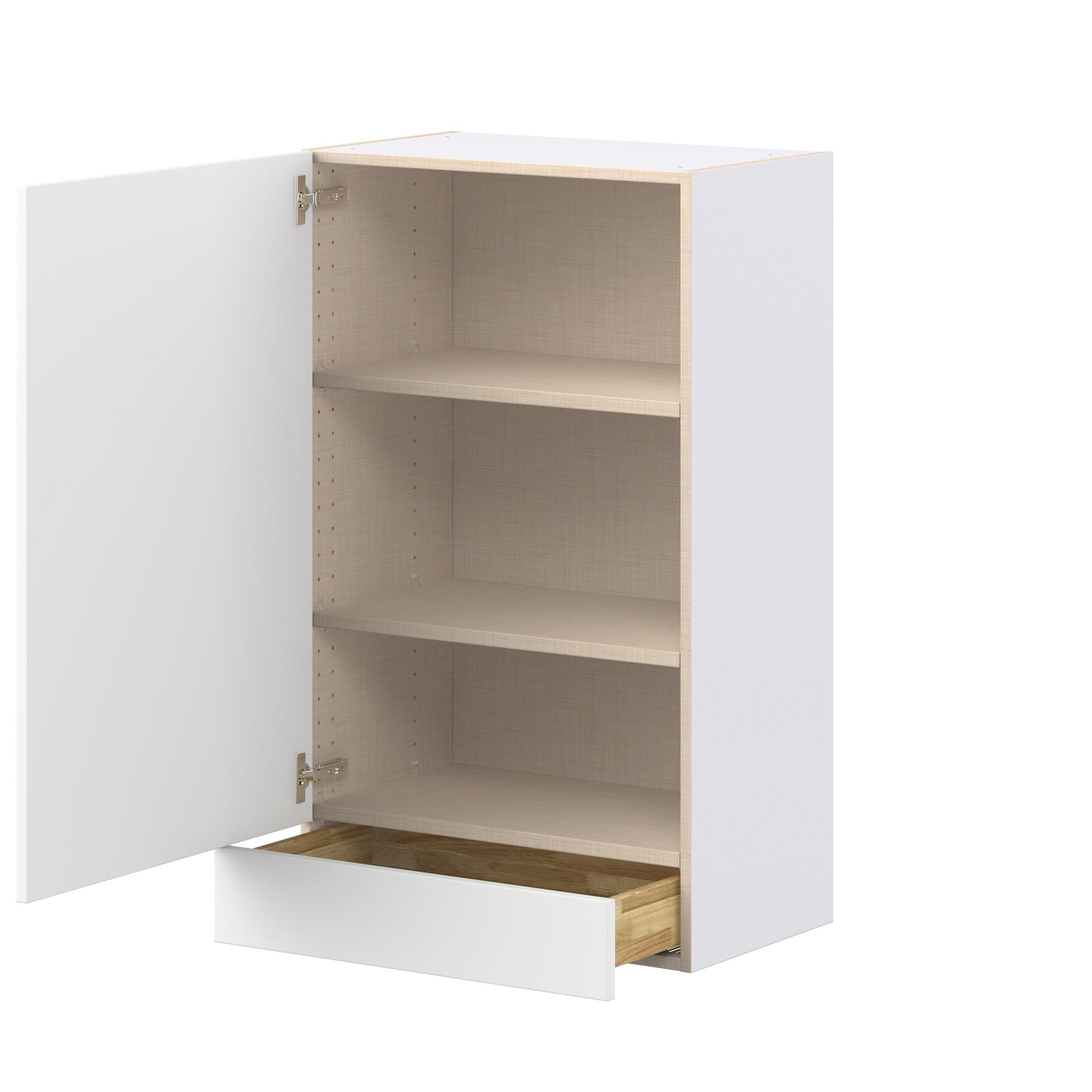 Make a statement with Peachtree premium painted shaker-inspired cabinets, offering both style and durability for years to come. Available in classic bright white and rich midnight blue, this collection is designed to fit seamlessly into both modern and transitional interiors. Crafted from one-piece MDF Studio Design Collection Peachtree 24 in. Painted Bright White Door and Drawer Wall Cabinet is designed to resist hairline cracks while the easy-to-clean finish stands up to stains and moisture. Featuring 5-piece doors and dovetail drawer joints, these cabinets offer durability and elegance. This collection combines style with everyday storage solutions.