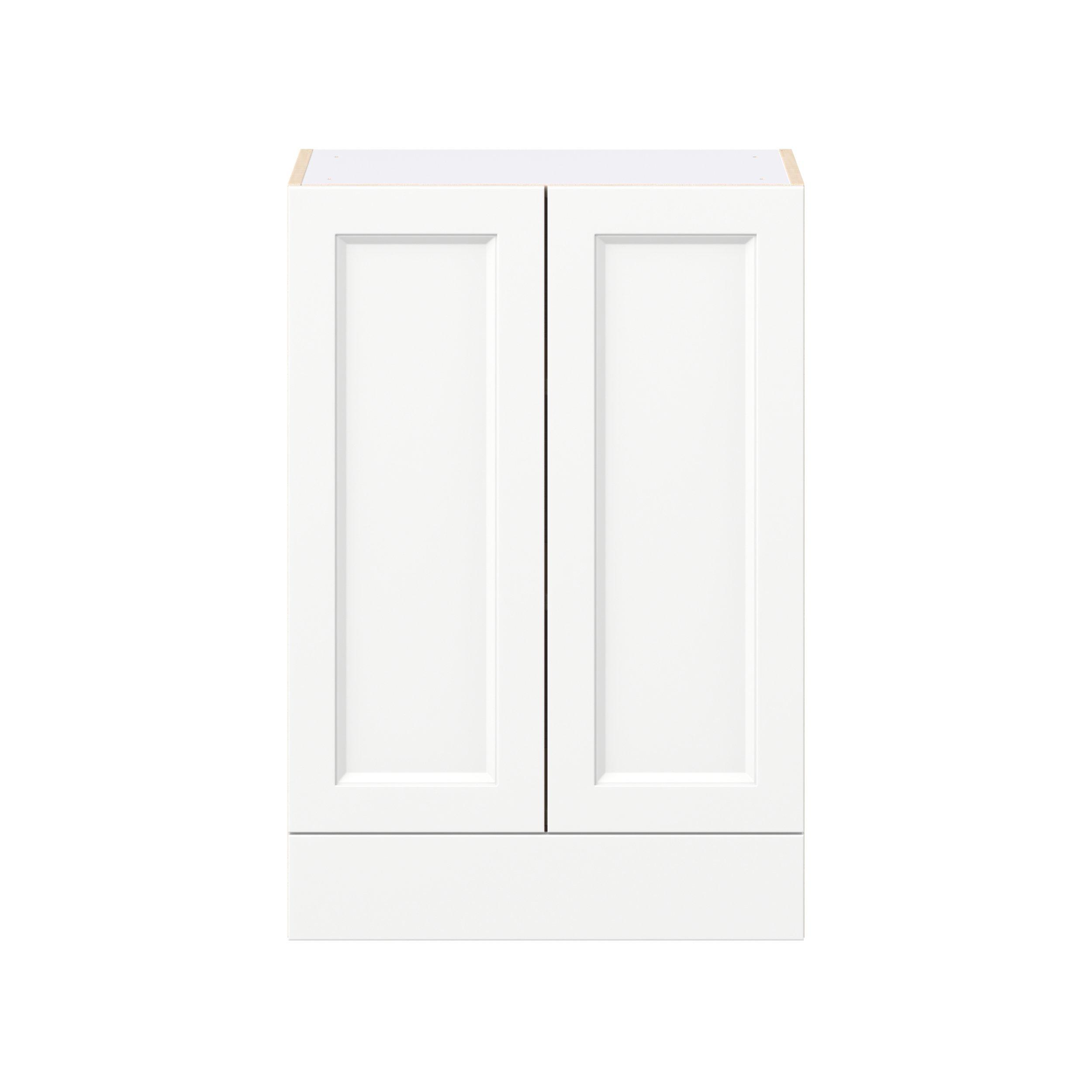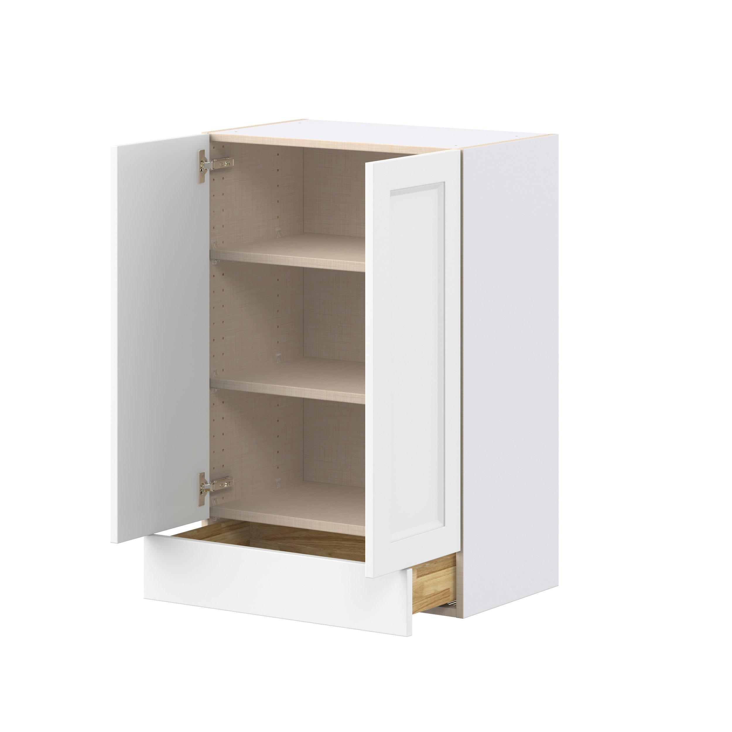 Make a statement with Peachtree premium painted shaker-inspired cabinets, offering both style and durability for years to come. Available in classic bright white and rich midnight blue, this collection is designed to fit seamlessly into both modern and transitional interiors. Crafted from one-piece MDF Studio Design Collection Peachtree 24 in. Painted Bright White Door and Drawer Wall Cabinet is designed to resist hairline cracks while the easy-to-clean finish stands up to stains and moisture. Featuring 5-piece doors and dovetail drawer joints, these cabinets offer durability and elegance. This collection combines style with everyday storage solutions.