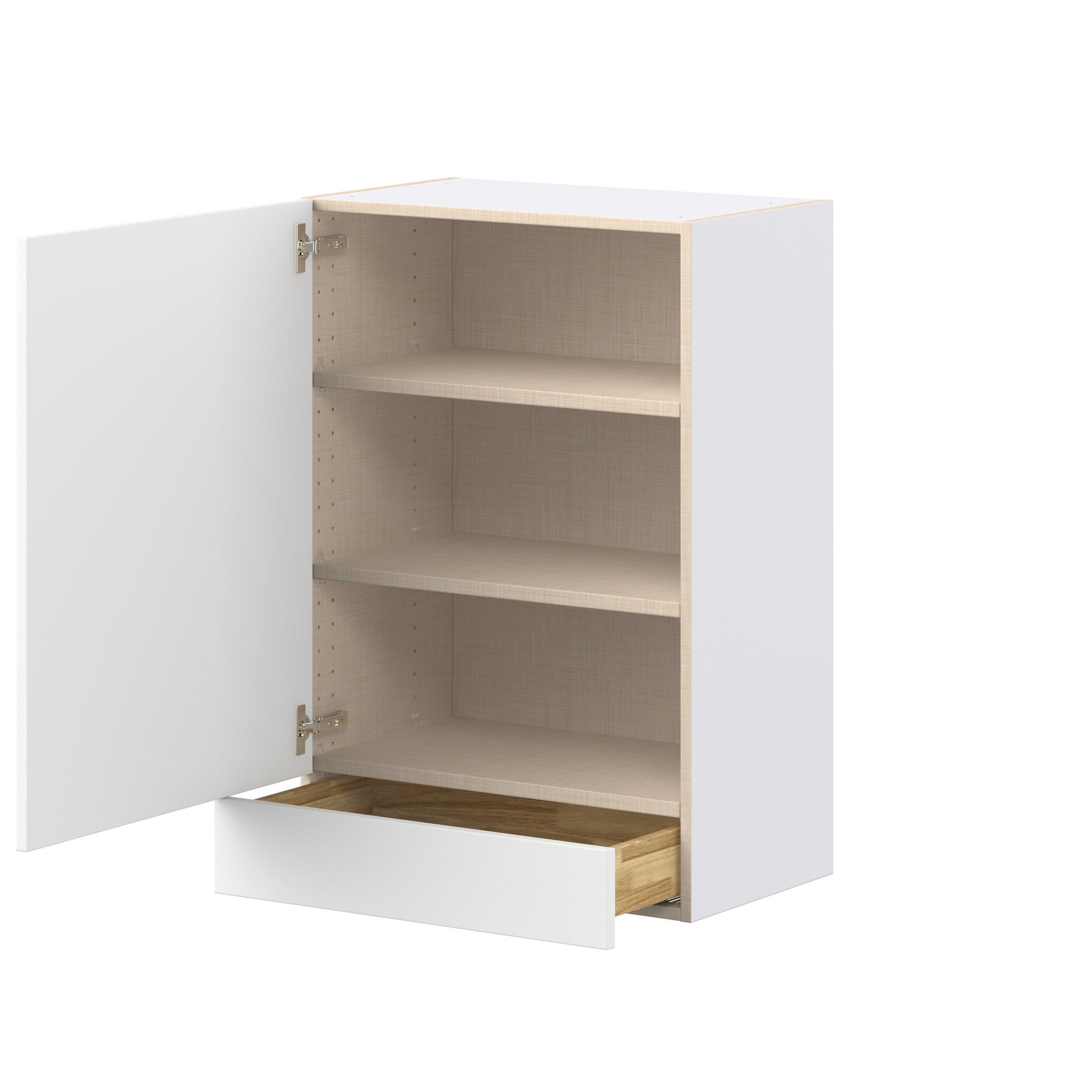 Make a statement with Peachtree premium painted shaker-inspired cabinets, offering both style and durability for years to come. Available in classic bright white and rich midnight blue, this collection is designed to fit seamlessly into both modern and transitional interiors. Crafted from one-piece MDF Studio Design Collection Peachtree 24 in. Painted Bright White Door and Drawer Wall Cabinet is designed to resist hairline cracks while the easy-to-clean finish stands up to stains and moisture. Featuring 5-piece doors and dovetail drawer joints, these cabinets offer durability and elegance. This collection combines style with everyday storage solutions.