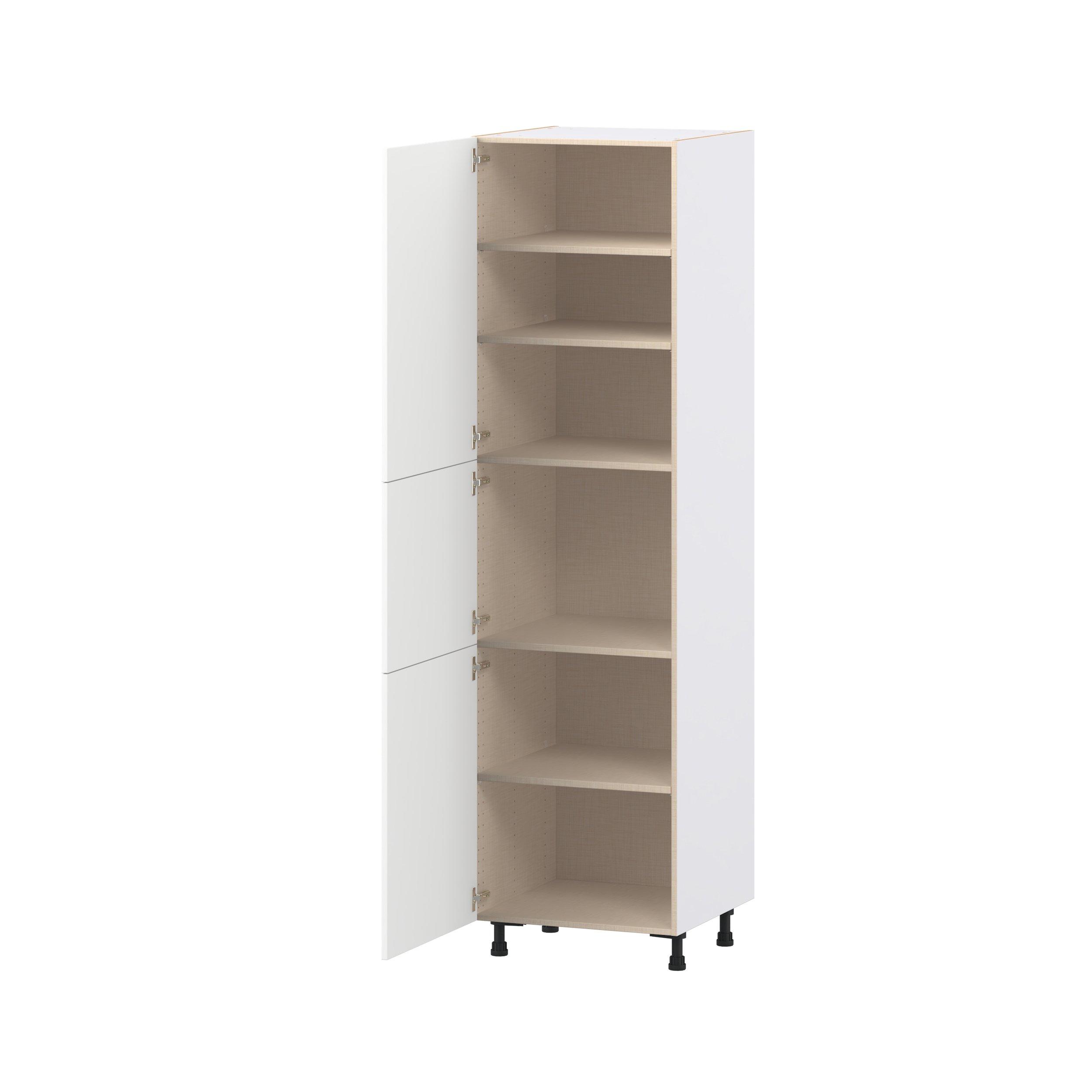 Make a statement with Peachtree premium painted shaker-inspired cabinets, offering both style and durability for years to come. Available in classic bright white and rich midnight blue, this collection is designed to fit seamlessly into both modern and transitional interiors. Crafted from one-piece MDF Studio Design Collection Peachtree 24 in. Painted Bright White Door Pantry Cabinet is designed to resist hairline cracks while the easy-to-clean finish stands up to stains and moisture. Featuring 5-piece doors and dovetail drawer joints, these cabinets offer durability and elegance. This collection combines style with everyday storage solutions.