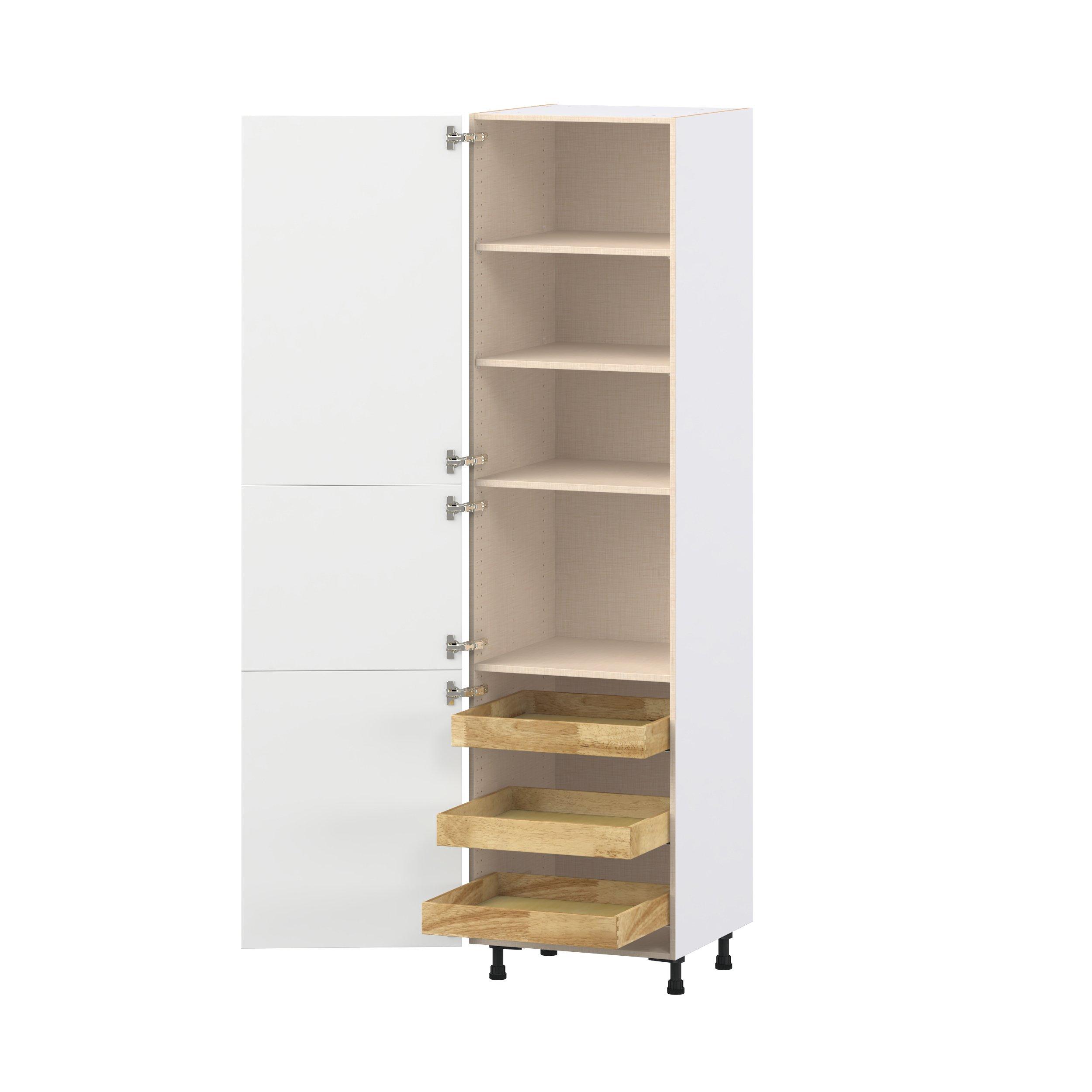 Make a statement with Peachtree premium painted shaker-inspired cabinets, offering both style and durability for years to come. Available in classic bright white and rich midnight blue, this collection is designed to fit seamlessly into both modern and transitional interiors. Crafted from one-piece MDF Studio Design Collection Peachtree 24 in. Painted Bright White Pantry Cabinet with Inner Pull-Out Drawer is designed to resist hairline cracks while the easy-to-clean finish stands up to stains and moisture. Featuring 5-piece doors and dovetail drawer joints, these cabinets offer durability and elegance. This collection combines style with everyday storage solutions.
