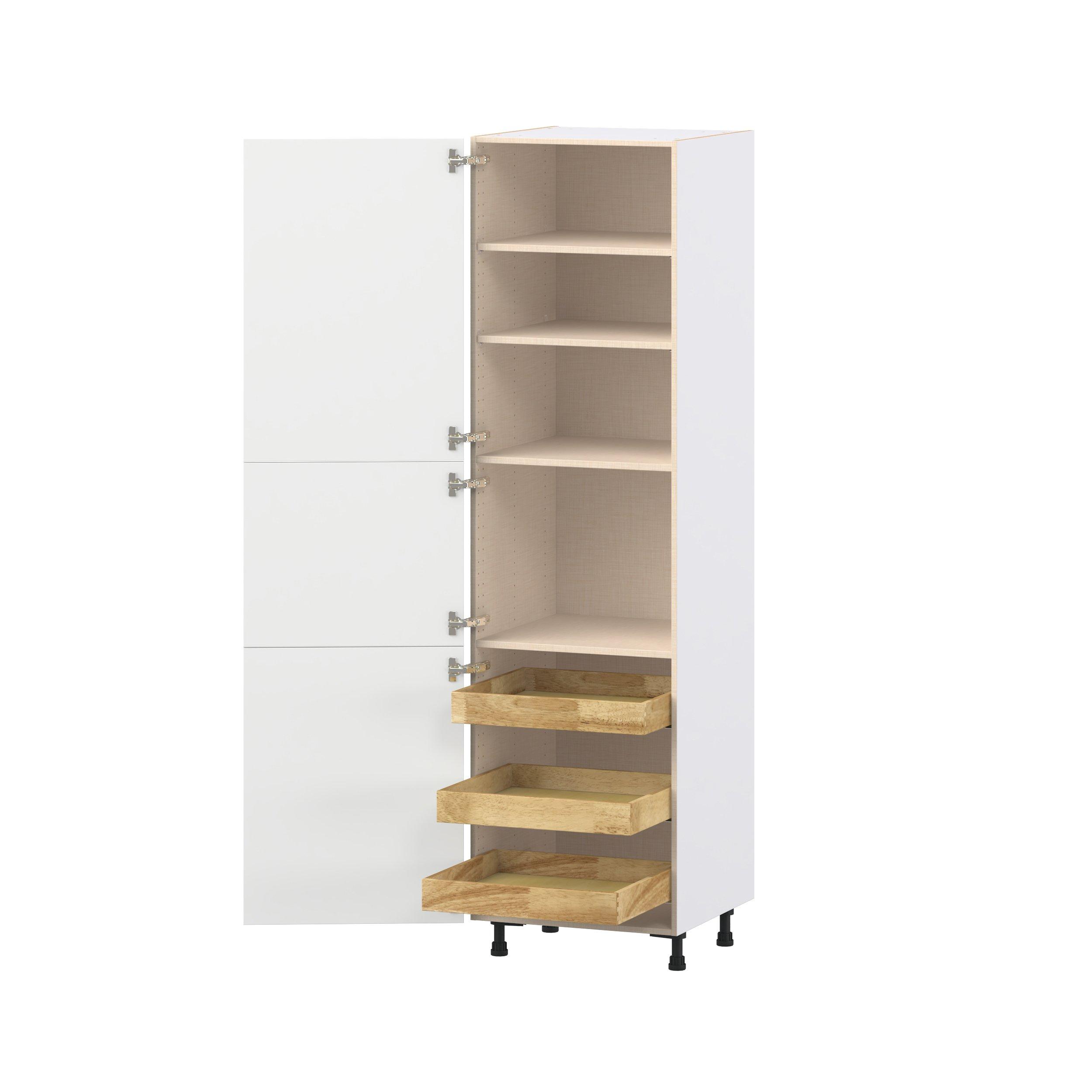 Make a statement with Peachtree premium painted shaker-inspired cabinets, offering both style and durability for years to come. Available in classic bright white and rich midnight blue, this collection is designed to fit seamlessly into both modern and transitional interiors. Crafted from one-piece MDF Studio Design Collection Peachtree 24 in. Painted Bright White Pantry Cabinet with Inner Pull-Out Drawer is designed to resist hairline cracks while the easy-to-clean finish stands up to stains and moisture. Featuring 5-piece doors and dovetail drawer joints, these cabinets offer durability and elegance. This collection combines style with everyday storage solutions.