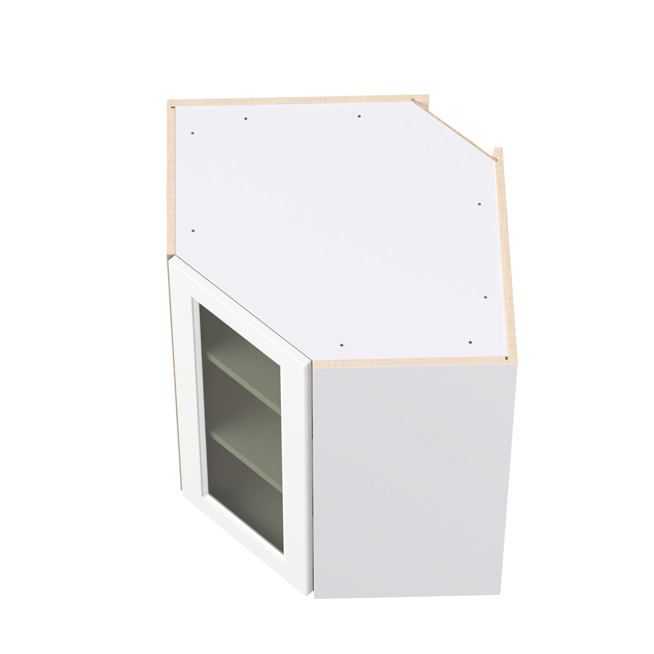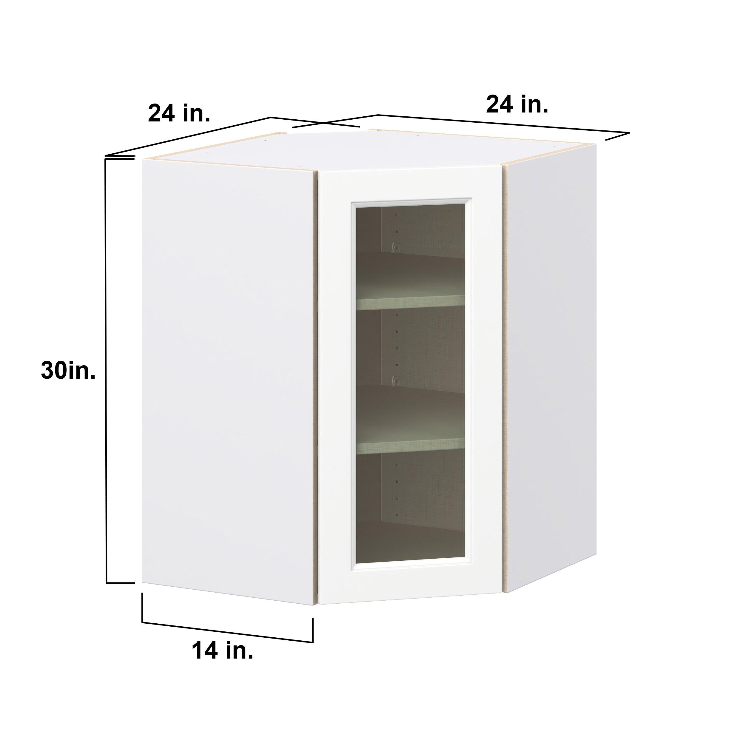 Make a statement with Peachtree premium painted shaker-inspired cabinets, offering both style and durability for years to come. Available in classic bright white and rich midnight blue, this collection is designed to fit seamlessly into both modern and transitional interiors. Crafted from one-piece MDF Studio Design Collection Peachtree 24 in. Painted Bright White Wall Angle Corner Cabinet with Glass Door is designed to resist hairline cracks while the easy-to-clean finish stands up to stains and moisture. Featuring 5-piece doors and dovetail drawer joints, these cabinets offer durability and elegance. This collection combines style with everyday storage solutions.