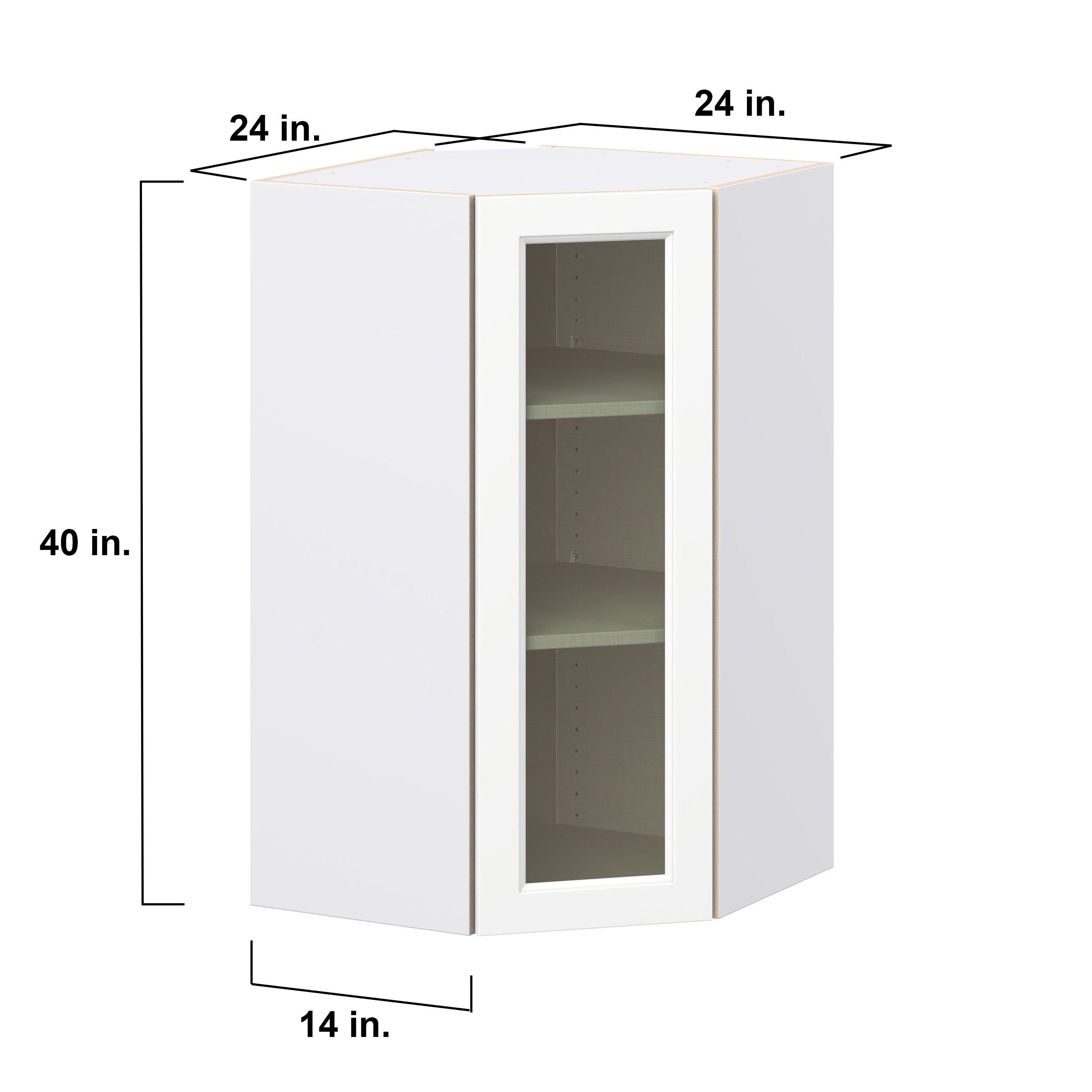Make a statement with Peachtree premium painted shaker-inspired cabinets, offering both style and durability for years to come. Available in classic bright white and rich midnight blue, this collection is designed to fit seamlessly into both modern and transitional interiors. Crafted from one-piece MDF Studio Design Collection Peachtree 24 in. Painted Bright White Wall Angle Corner Cabinet with Glass Door is designed to resist hairline cracks while the easy-to-clean finish stands up to stains and moisture. Featuring 5-piece doors and dovetail drawer joints, these cabinets offer durability and elegance. This collection combines style with everyday storage solutions.
