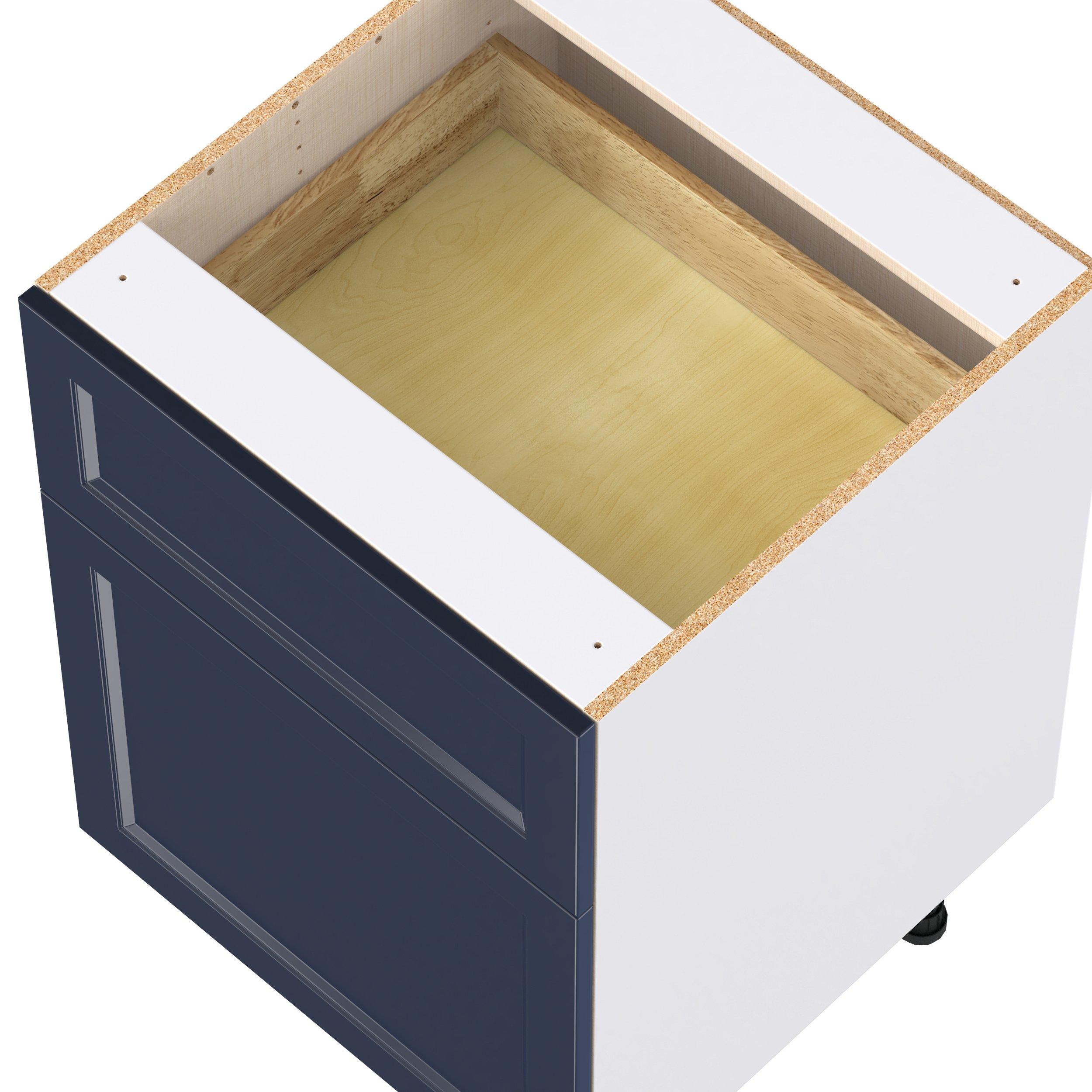 Make a statement with Peachtree premium painted shaker-inspired cabinets, offering both style and durability for years to come. Available in classic bright white and rich midnight blue, this collection is designed to fit seamlessly into both modern and transitional interiors. Crafted from one-piece MDF Studio Design Collection Peachtree 24 in. Painted Midnight Blue Door and Drawer Base Cabinet is designed to resist hairline cracks while the easy-to-clean finish stands up to stains and moisture. Featuring 5-piece doors and dovetail drawer joints, these cabinets offer durability and elegance. This collection combines style with everyday storage solutions.