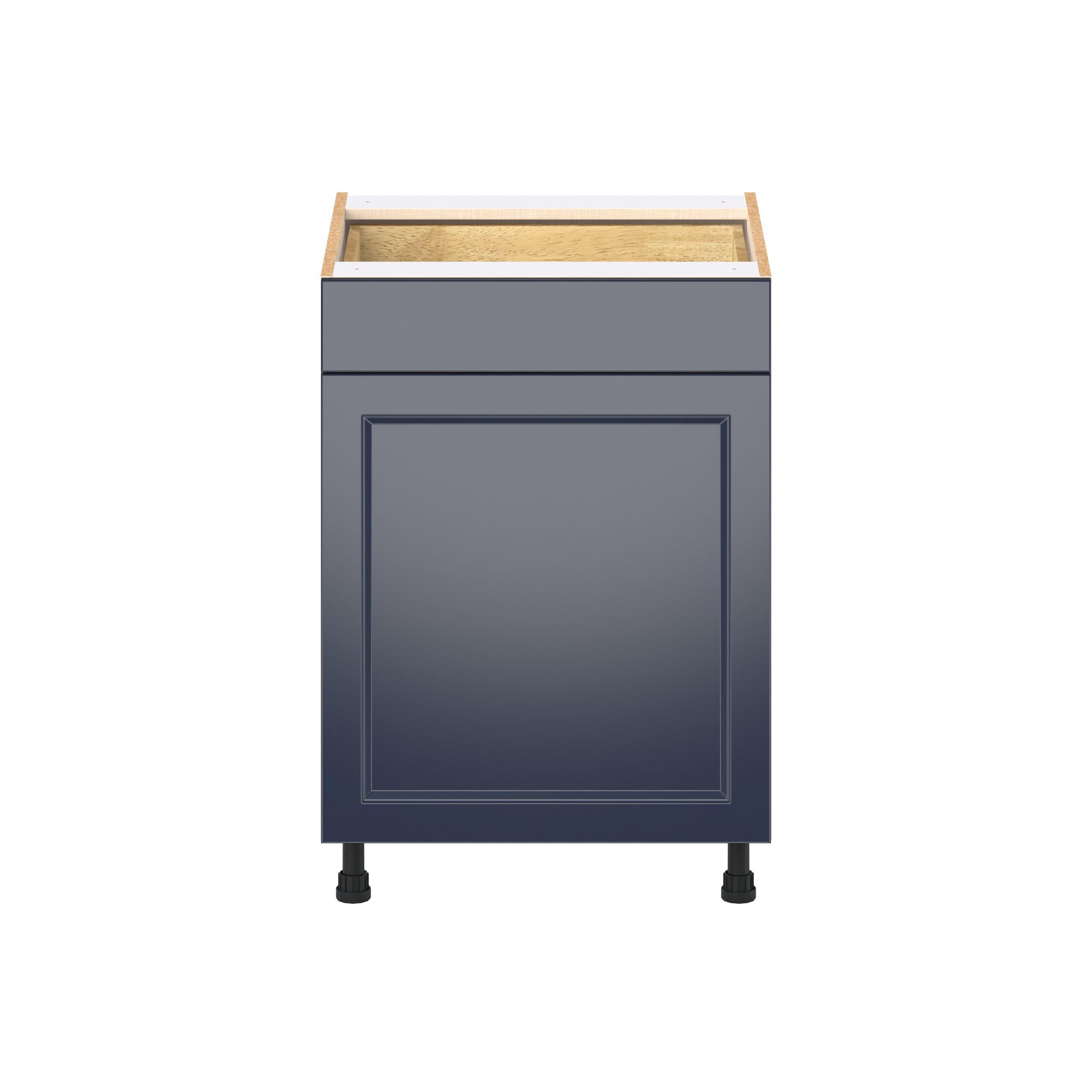 Make a statement with Peachtree premium painted shaker-inspired cabinets, offering both style and durability for years to come. Available in classic bright white and rich midnight blue, this collection is designed to fit seamlessly into both modern and transitional interiors. Crafted from one-piece MDF Studio Design Collection Peachtree 24 in. Painted Midnight Blue Door and Drawer Base Cabinet is designed to resist hairline cracks while the easy-to-clean finish stands up to stains and moisture. Featuring 5-piece doors and dovetail drawer joints, these cabinets offer durability and elegance. This collection combines style with everyday storage solutions.