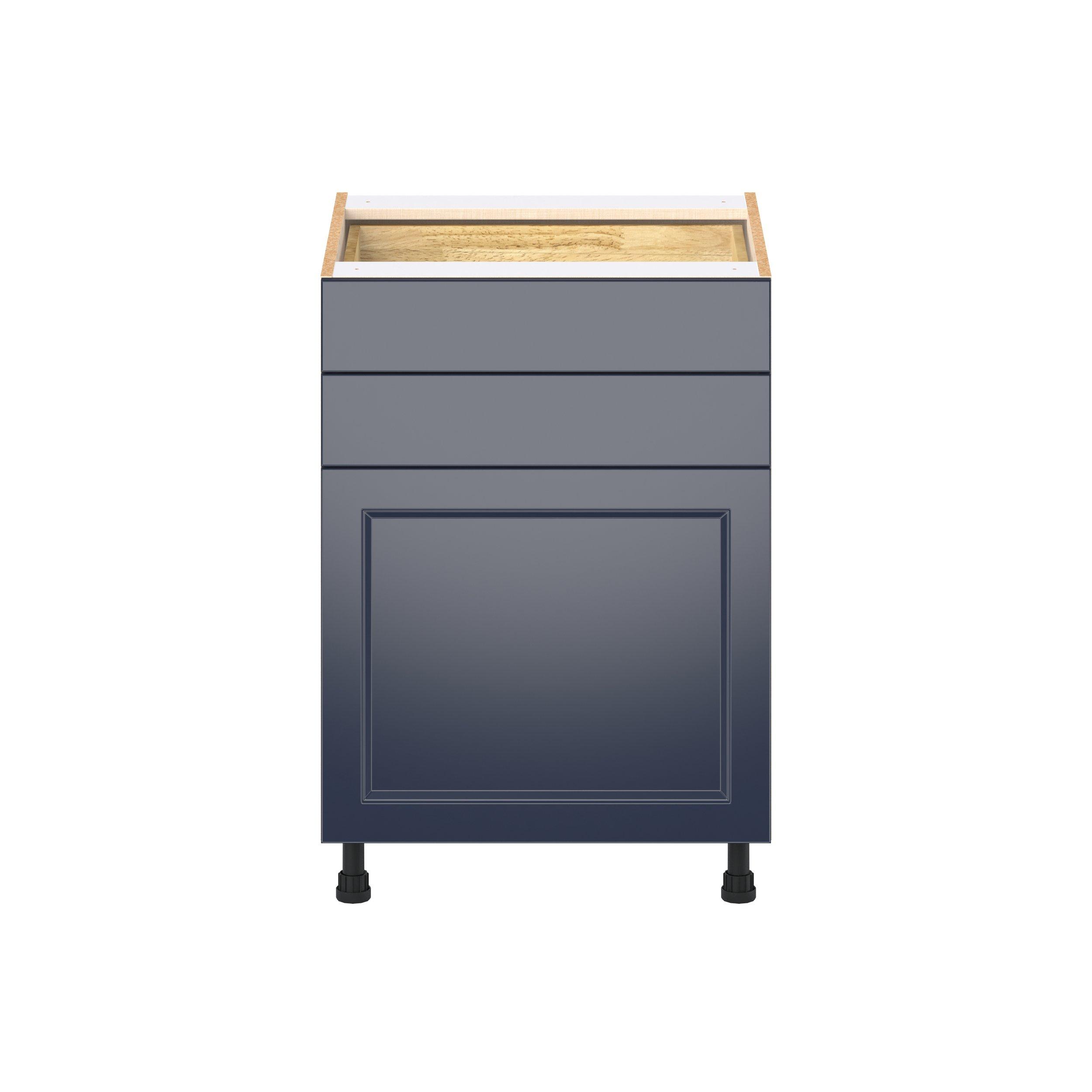 Make a statement with Peachtree premium painted shaker-inspired cabinets, offering both style and durability for years to come. Available in classic bright white and rich midnight blue, this collection is designed to fit seamlessly into both modern and transitional interiors. Crafted from one-piece MDF Studio Design Collection Peachtree 24 in. Painted Midnight Blue Door and Drawer Base Cabinet is designed to resist hairline cracks while the easy-to-clean finish stands up to stains and moisture. Featuring 5-piece doors and dovetail drawer joints, these cabinets offer durability and elegance. This collection combines style with everyday storage solutions.