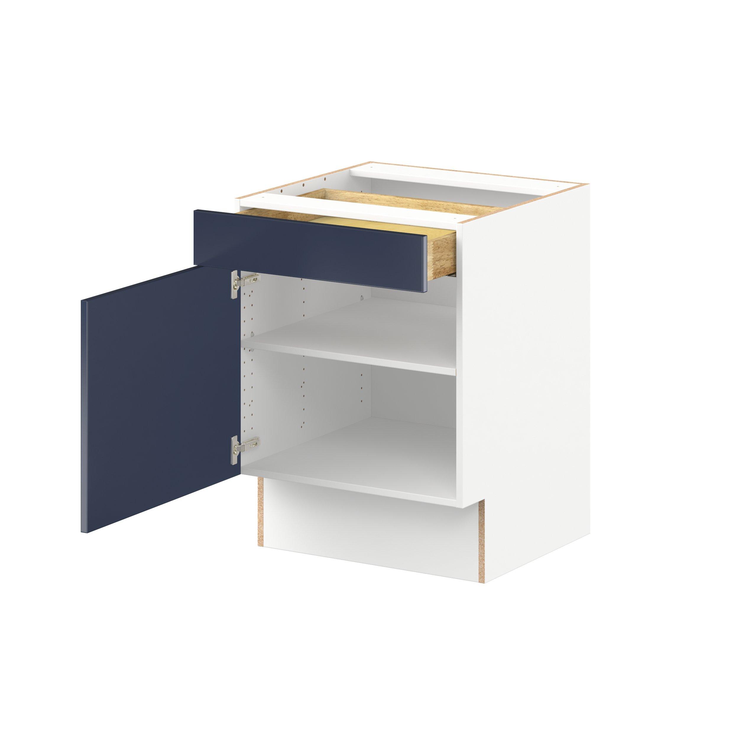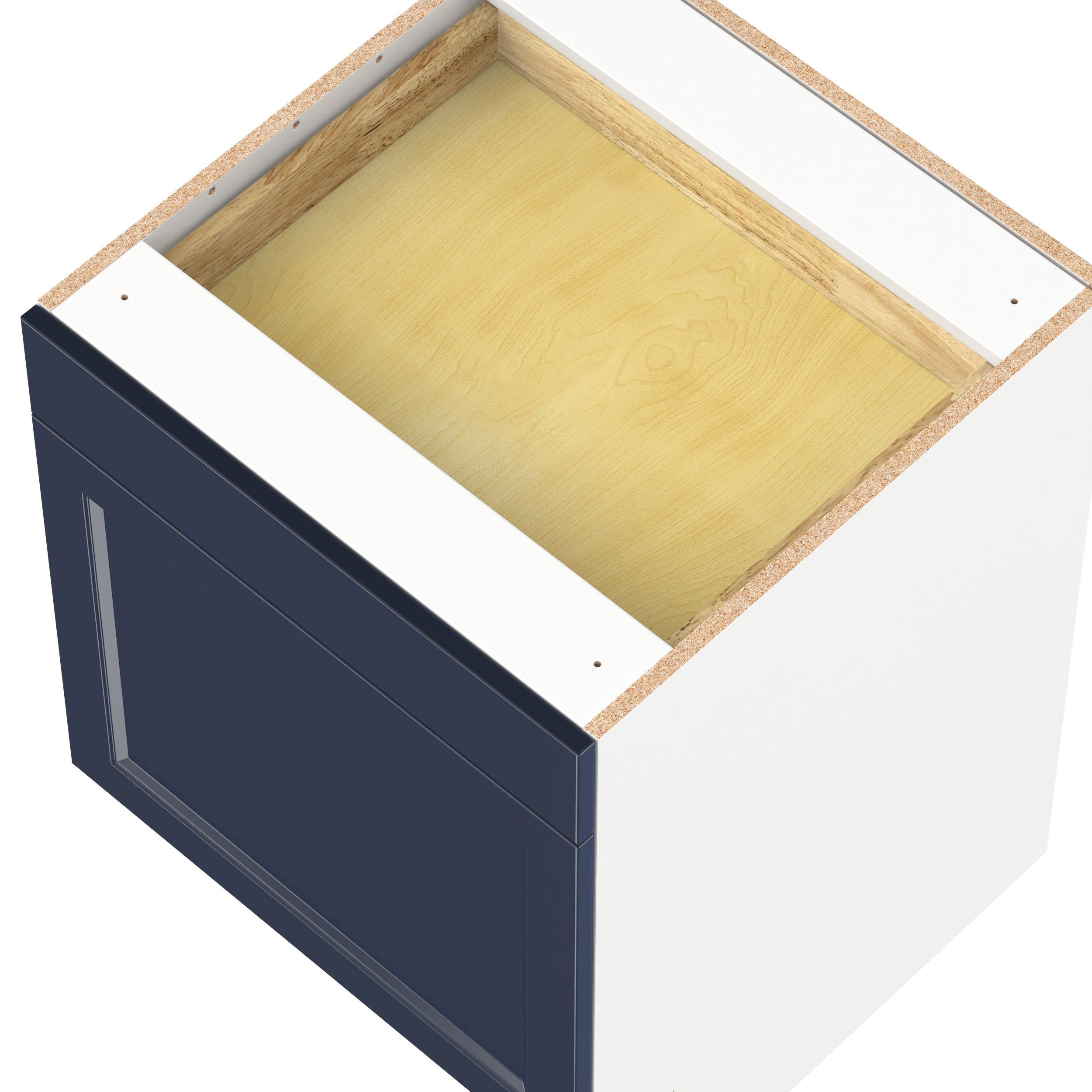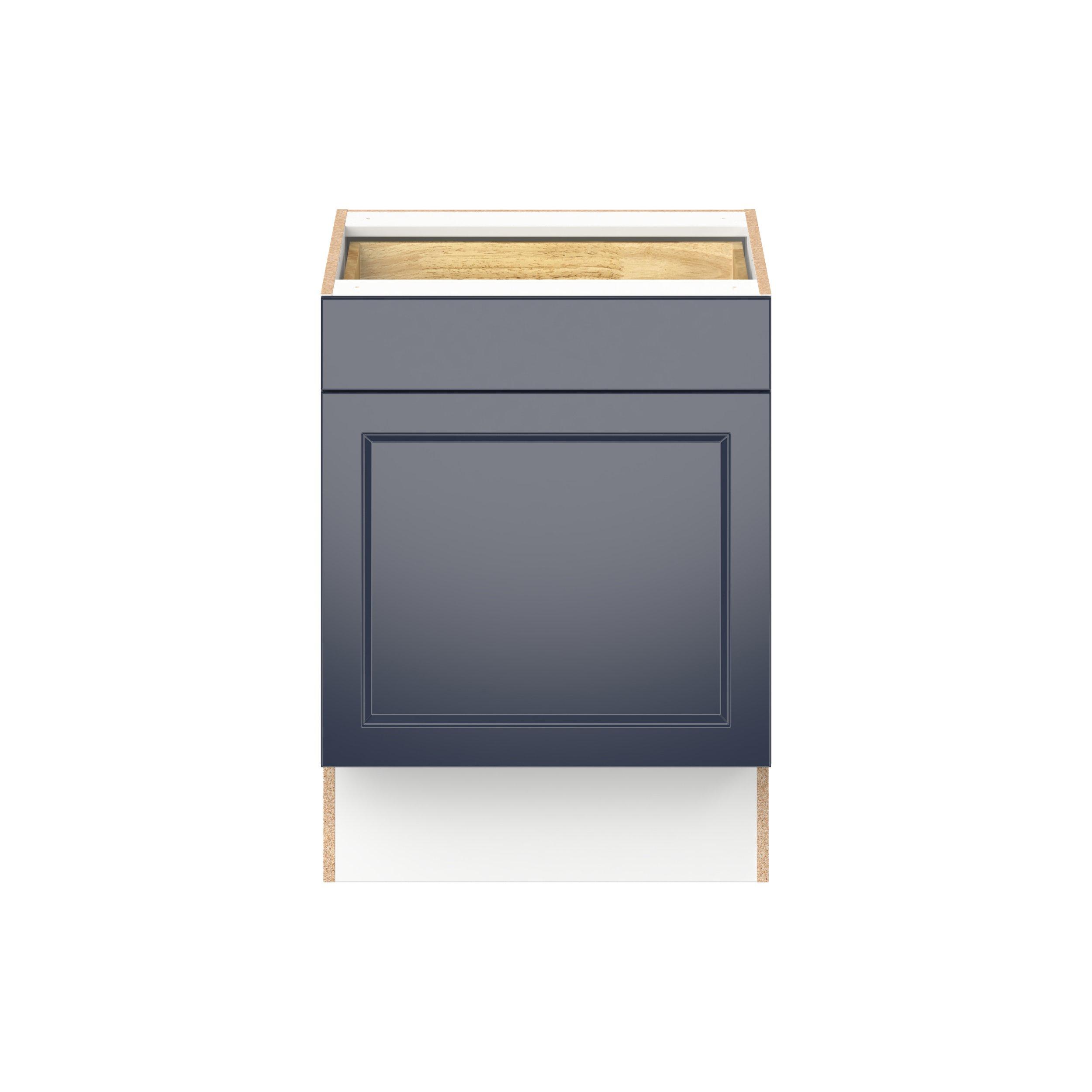 Make a statement with Peachtree premium painted shaker-inspired cabinets, offering both style and durability for years to come. Available in classic bright white and rich midnight blue, this collection is designed to fit seamlessly into both modern and transitional interiors. Crafted from one-piece MDF Studio Design Collection Peachtree 24 in. Painted Midnight Blue Door and Drawer Base Cabinet is designed to resist hairline cracks while the easy-to-clean finish stands up to stains and moisture. Featuring 5-piece doors and dovetail drawer joints, these cabinets offer durability and elegance. This collection combines style with everyday storage solutions.