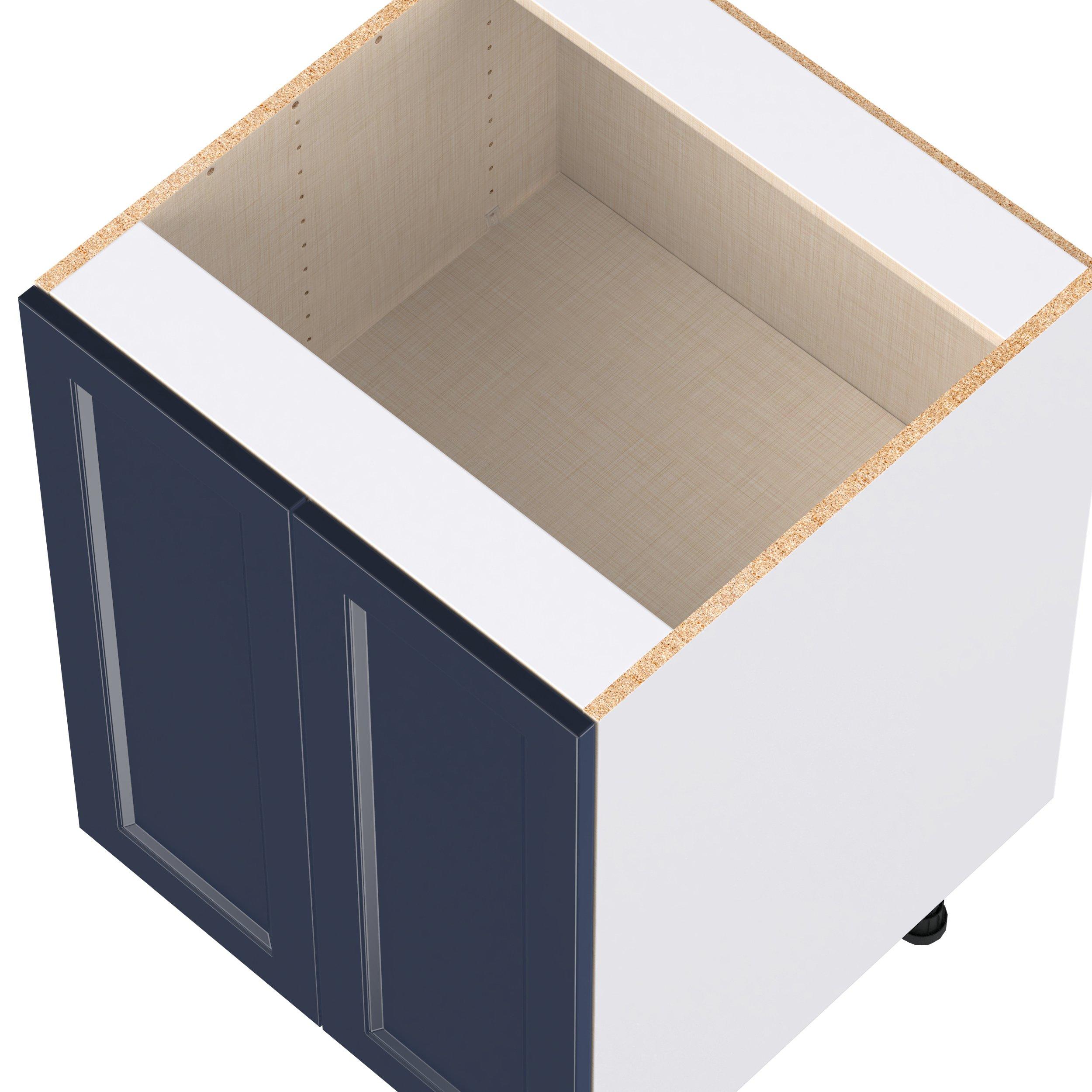 Make a statement with Peachtree premium painted shaker-inspired cabinets, offering both style and durability for years to come. Available in classic bright white and rich midnight blue, this collection is designed to fit seamlessly into both modern and transitional interiors. Crafted from one-piece MDF Studio Design Collection Peachtree 24 in. Painted Midnight Blue Door Base Cabinet is designed to resist hairline cracks while the easy-to-clean finish stands up to stains and moisture. Featuring 5-piece doors and dovetail drawer joints, these cabinets offer durability and elegance. This collection combines style with everyday storage solutions.