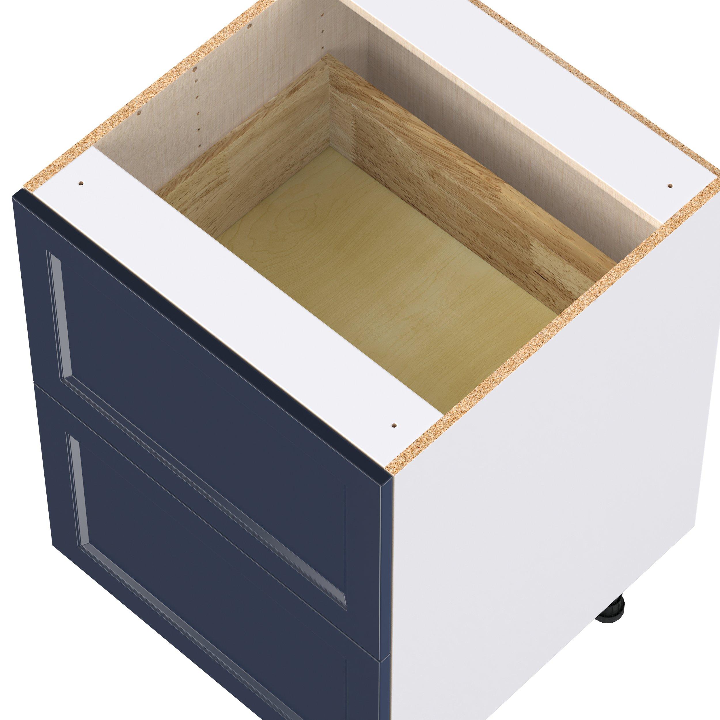 Make a statement with Peachtree premium painted shaker-inspired cabinets, offering both style and durability for years to come. Available in classic bright white and rich midnight blue, this collection is designed to fit seamlessly into both modern and transitional interiors. Crafted from one-piece MDF Studio Design Collection Peachtree 24 in. Painted Midnight Blue Drawer Base Cabinet is designed to resist hairline cracks while the easy-to-clean finish stands up to stains and moisture. Featuring 5-piece doors and dovetail drawer joints, these cabinets offer durability and elegance. This collection combines style with everyday storage solutions.