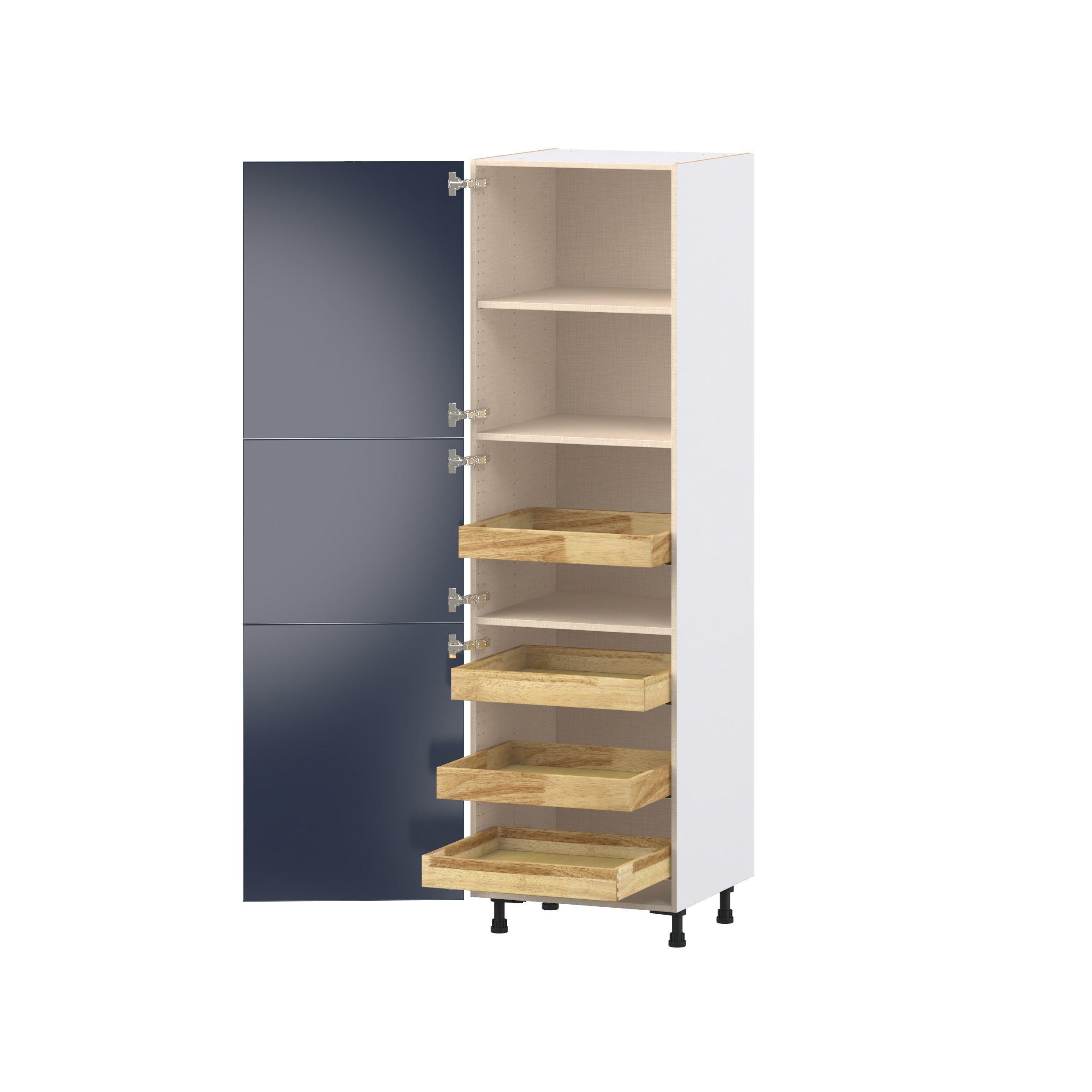 Make a statement with Peachtree premium painted shaker-inspired cabinets, offering both style and durability for years to come. Available in classic bright white and rich midnight blue, this collection is designed to fit seamlessly into both modern and transitional interiors. Crafted from one-piece MDF Studio Design Collection Peachtree 24 in. Painted Midnight Blue Pantry Cabinet with Inner Pull-Out Drawer is designed to resist hairline cracks while the easy-to-clean finish stands up to stains and moisture. Featuring 5-piece doors and dovetail drawer joints, these cabinets offer durability and elegance. This collection combines style with everyday storage solutions.