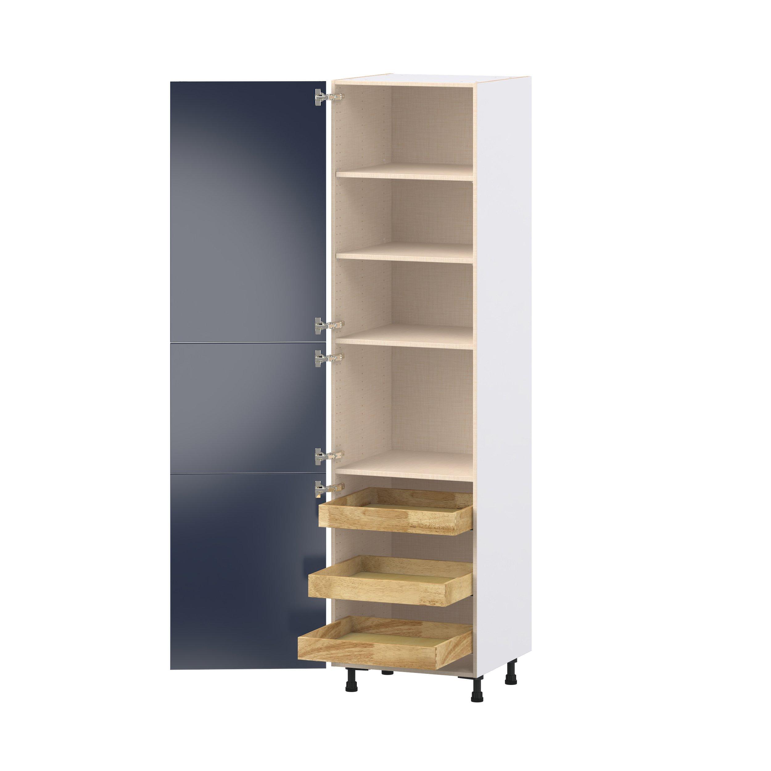 Make a statement with Peachtree premium painted shaker-inspired cabinets, offering both style and durability for years to come. Available in classic bright white and rich midnight blue, this collection is designed to fit seamlessly into both modern and transitional interiors. Crafted from one-piece MDF Studio Design Collection Peachtree 24 in. Painted Midnight Blue Pantry Cabinet with Inner Pull-Out Drawer is designed to resist hairline cracks while the easy-to-clean finish stands up to stains and moisture. Featuring 5-piece doors and dovetail drawer joints, these cabinets offer durability and elegance. This collection combines style with everyday storage solutions.