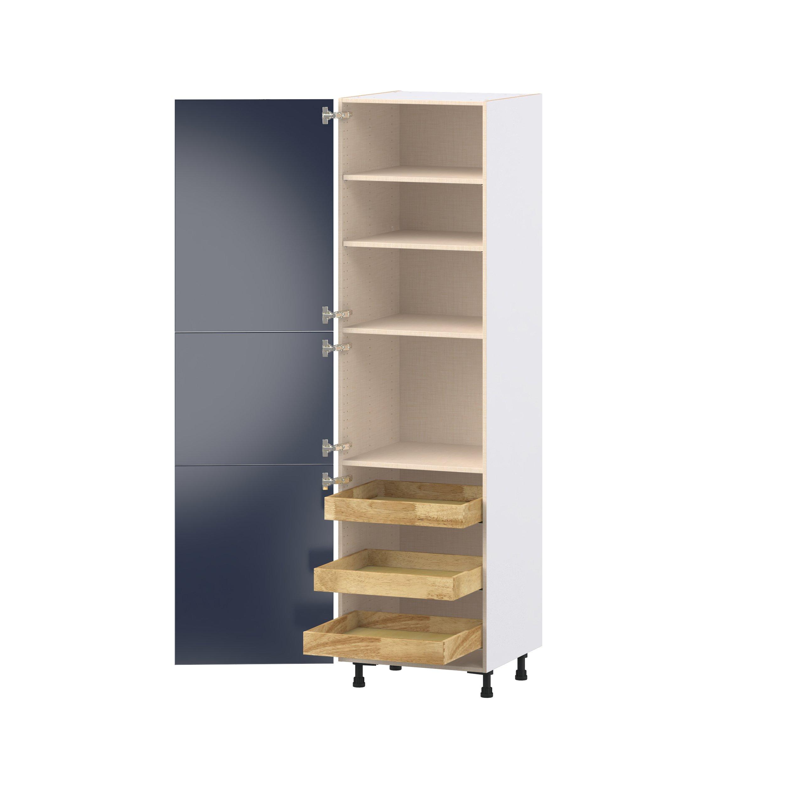 Make a statement with Peachtree premium painted shaker-inspired cabinets, offering both style and durability for years to come. Available in classic bright white and rich midnight blue, this collection is designed to fit seamlessly into both modern and transitional interiors. Crafted from one-piece MDF Studio Design Collection Peachtree 24 in. Painted Midnight Blue Pantry Cabinet with Inner Pull-Out Drawer is designed to resist hairline cracks while the easy-to-clean finish stands up to stains and moisture. Featuring 5-piece doors and dovetail drawer joints, these cabinets offer durability and elegance. This collection combines style with everyday storage solutions.