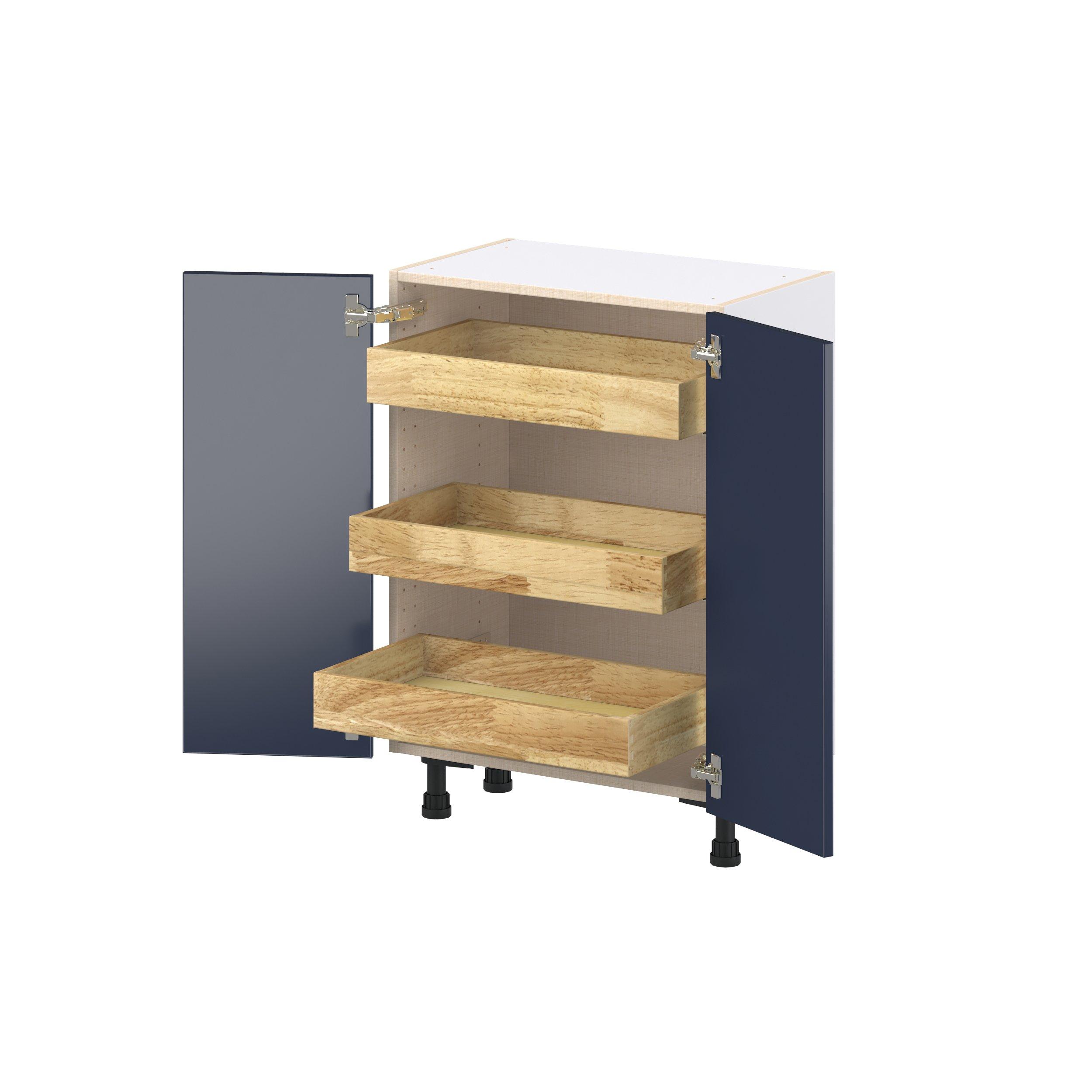 Make a statement with Peachtree premium painted shaker-inspired cabinets, offering both style and durability for years to come. Available in classic bright white and rich midnight blue, this collection is designed to fit seamlessly into both modern and transitional interiors. Crafted from one-piece MDF Studio Design Collection Peachtree 24 in. Painted Midnight Blue Shallow Base Cabinet with Inner Pull-Out Drawer is designed to resist hairline cracks while the easy-to-clean finish stands up to stains and moisture. Featuring 5-piece doors and dovetail drawer joints, these cabinets offer durability and elegance. This collection combines style with everyday storage solutions.