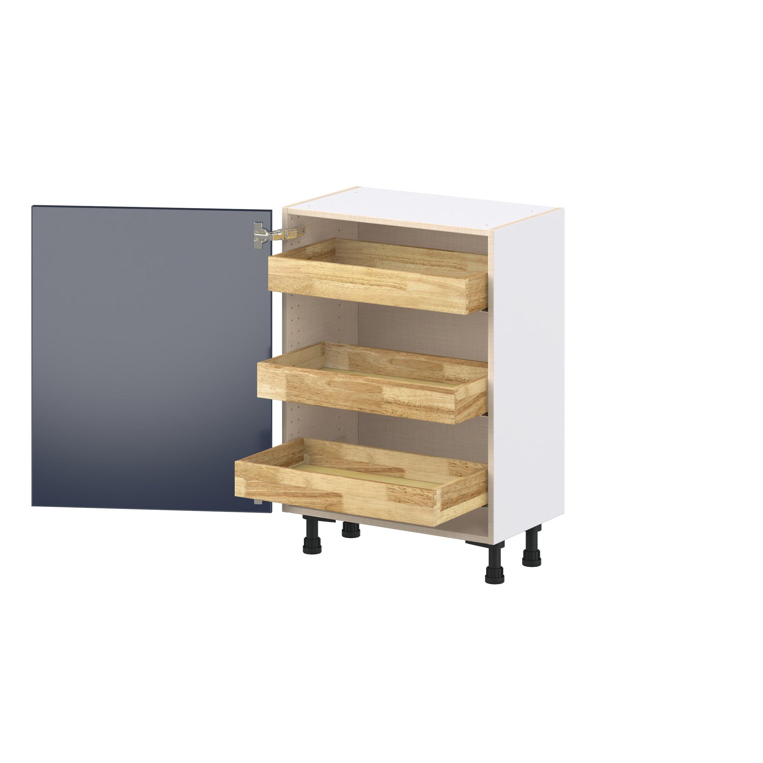 Make a statement with Peachtree premium painted shaker-inspired cabinets, offering both style and durability for years to come. Available in classic bright white and rich midnight blue, this collection is designed to fit seamlessly into both modern and transitional interiors. Crafted from one-piece MDF Studio Design Collection Peachtree 24 in. Painted Midnight Blue Shallow Base Cabinet with Inner Pull-Out Drawer is designed to resist hairline cracks while the easy-to-clean finish stands up to stains and moisture. Featuring 5-piece doors and dovetail drawer joints, these cabinets offer durability and elegance. This collection combines style with everyday storage solutions.