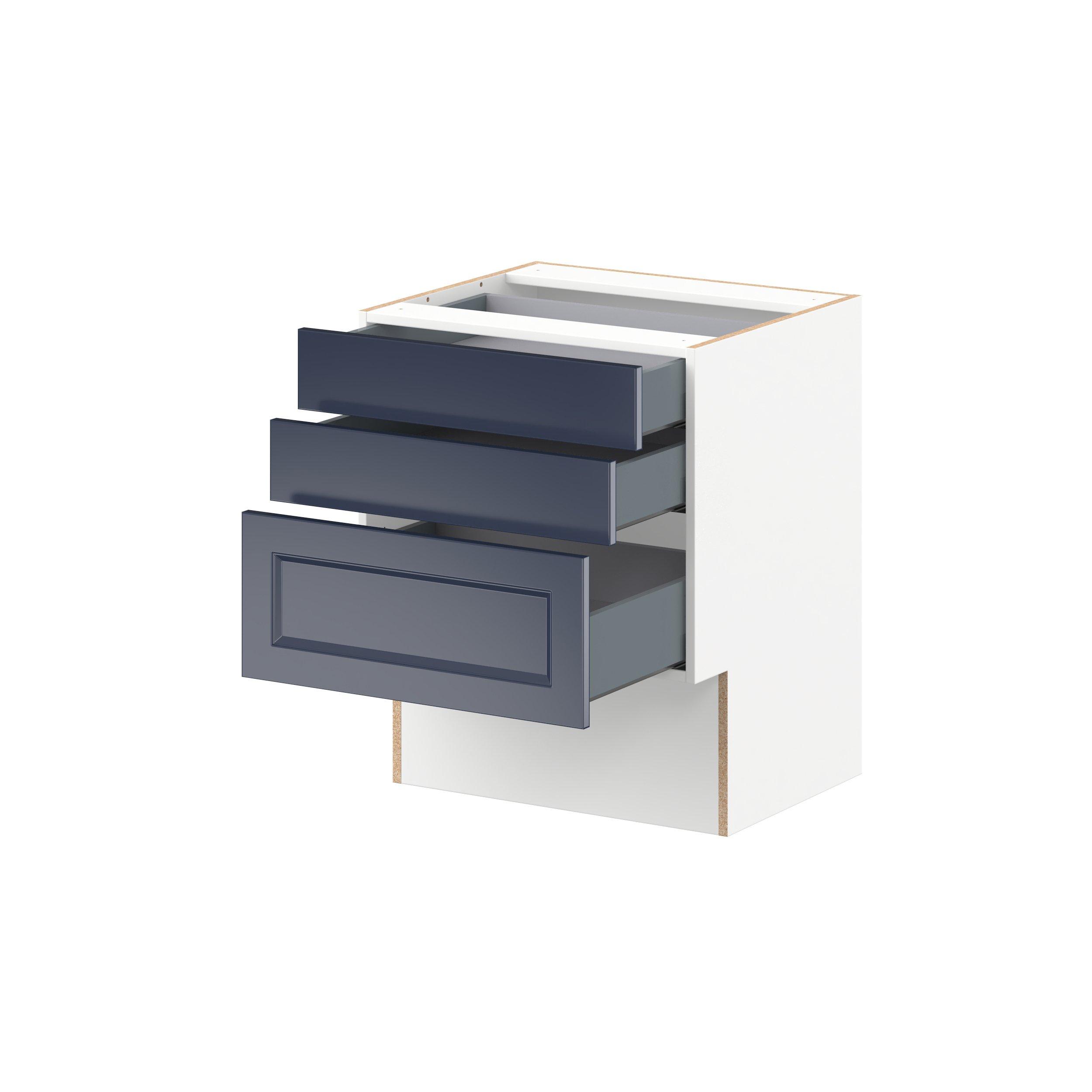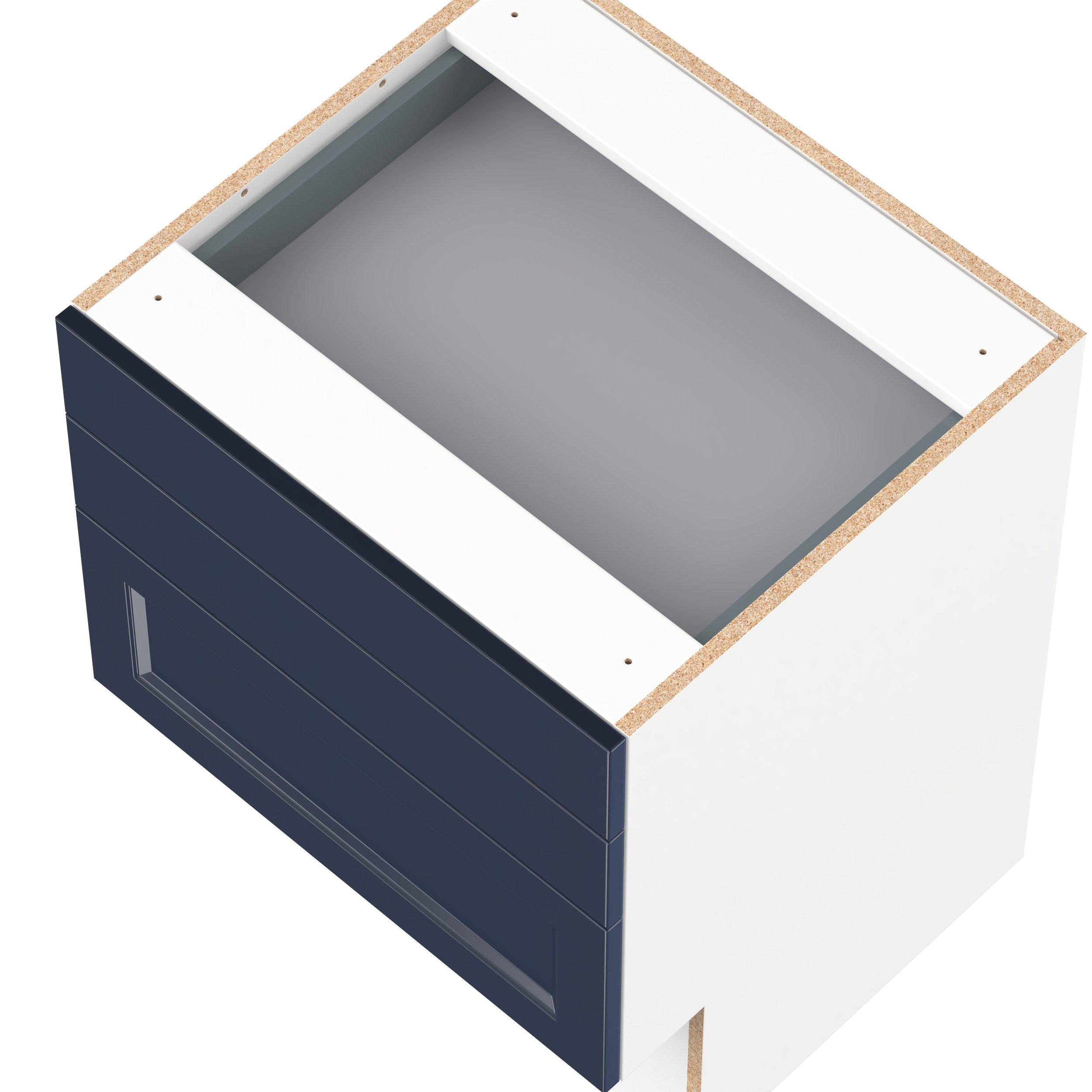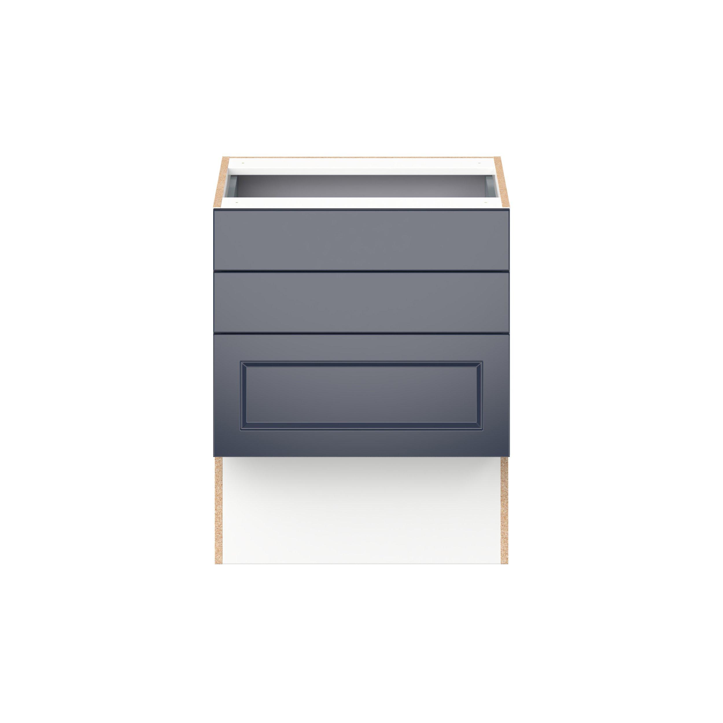 Make a statement with Peachtree premium painted shaker-inspired cabinets, offering both style and durability for years to come. Available in classic bright white and rich midnight blue, this collection is designed to fit seamlessly into both modern and transitional interiors. Crafted from one-piece MDF Studio Design Collection Peachtree 24 in. Painted Midnight Blue Vanity Drawer Base Cabinet is designed to resist hairline cracks while the easy-to-clean finish stands up to stains and moisture. Featuring 5-piece doors and dovetail drawer joints, these cabinets offer durability and elegance. This collection combines style with everyday storage solutions.