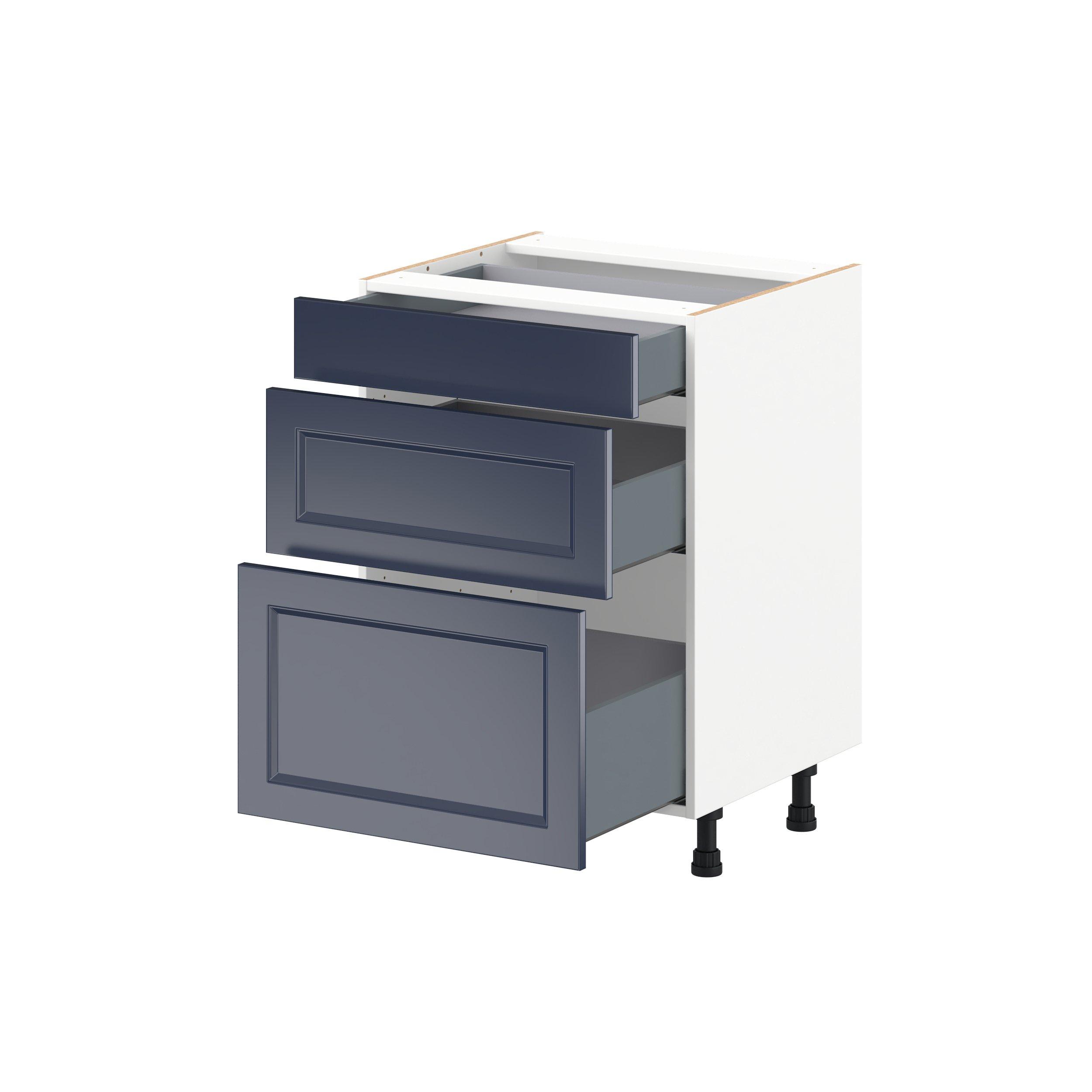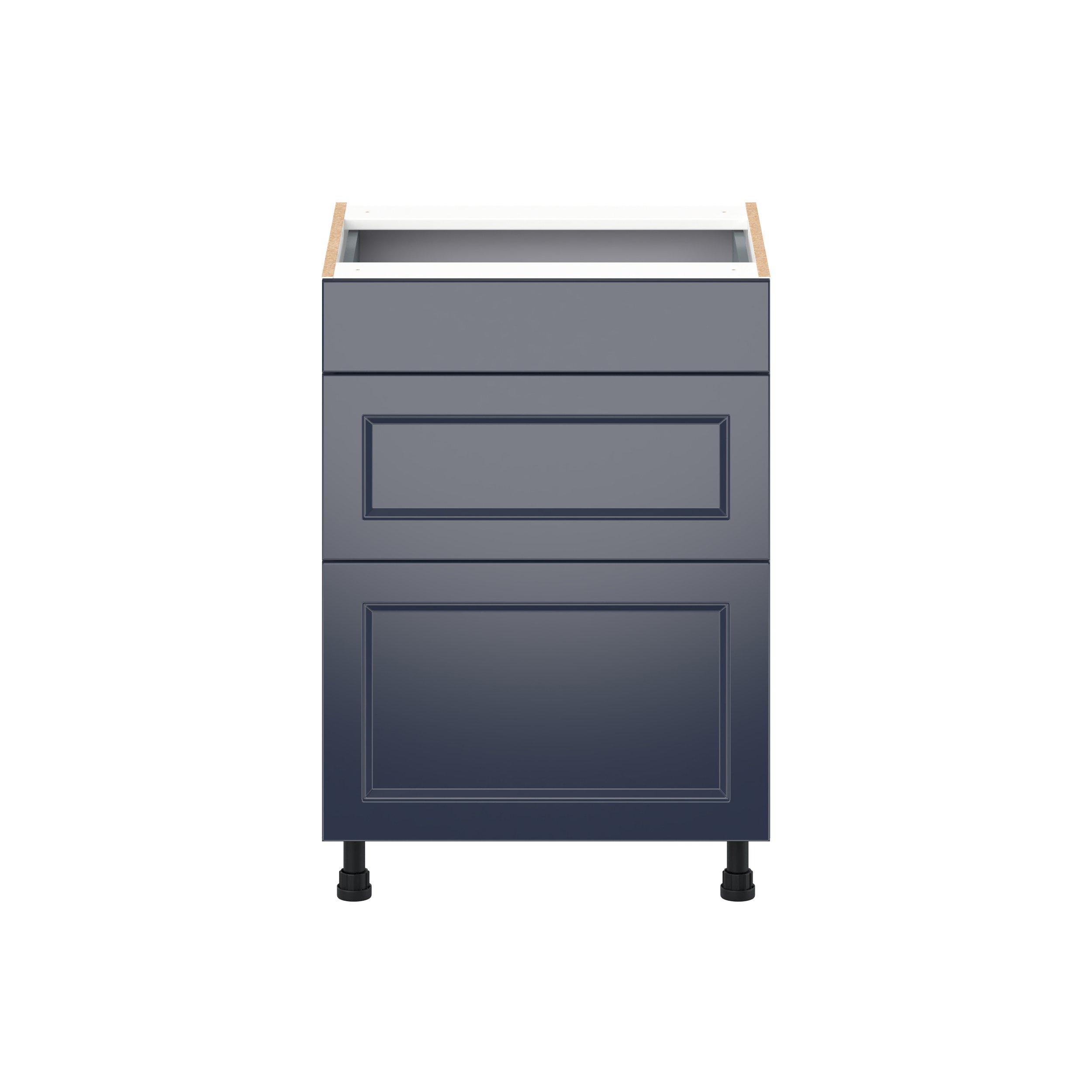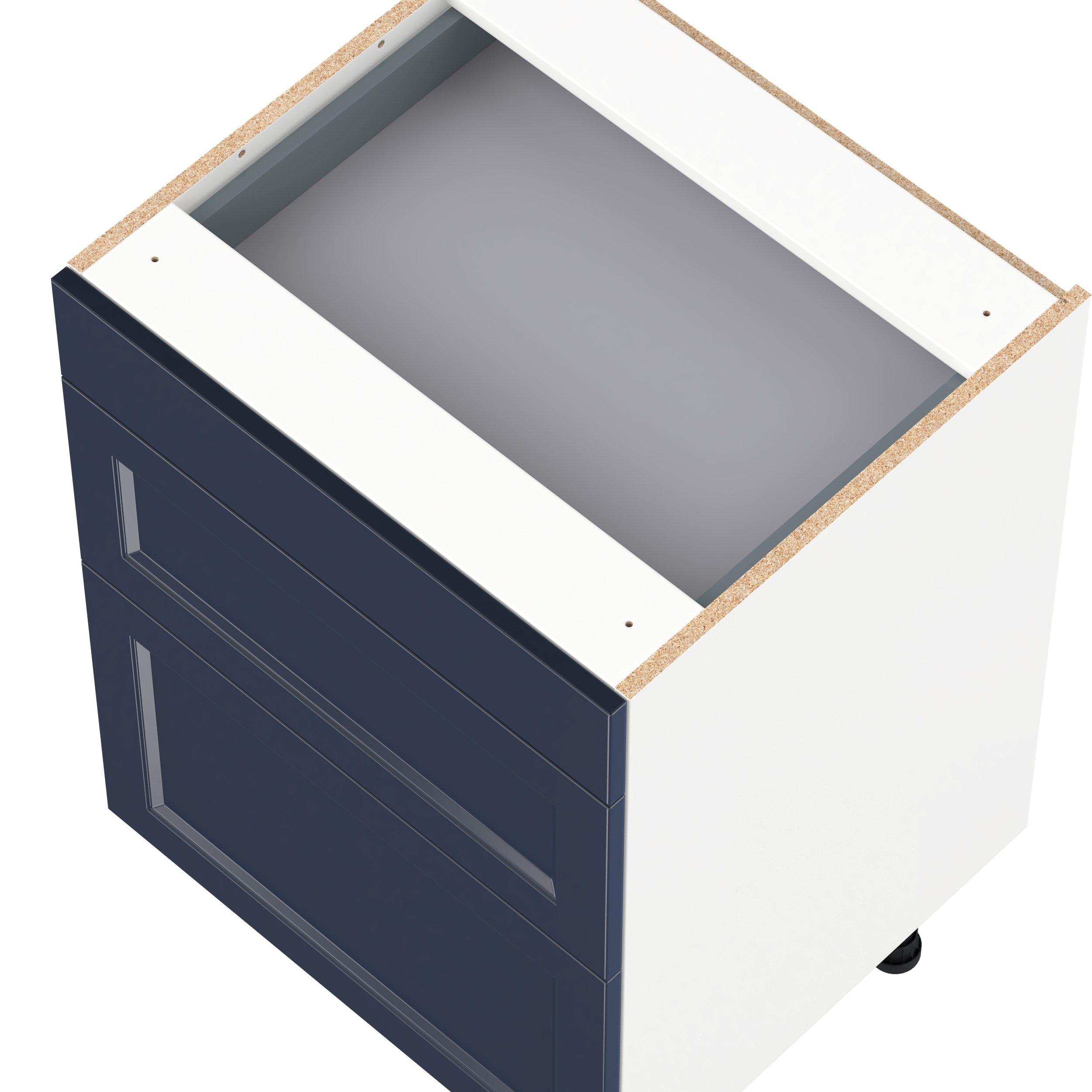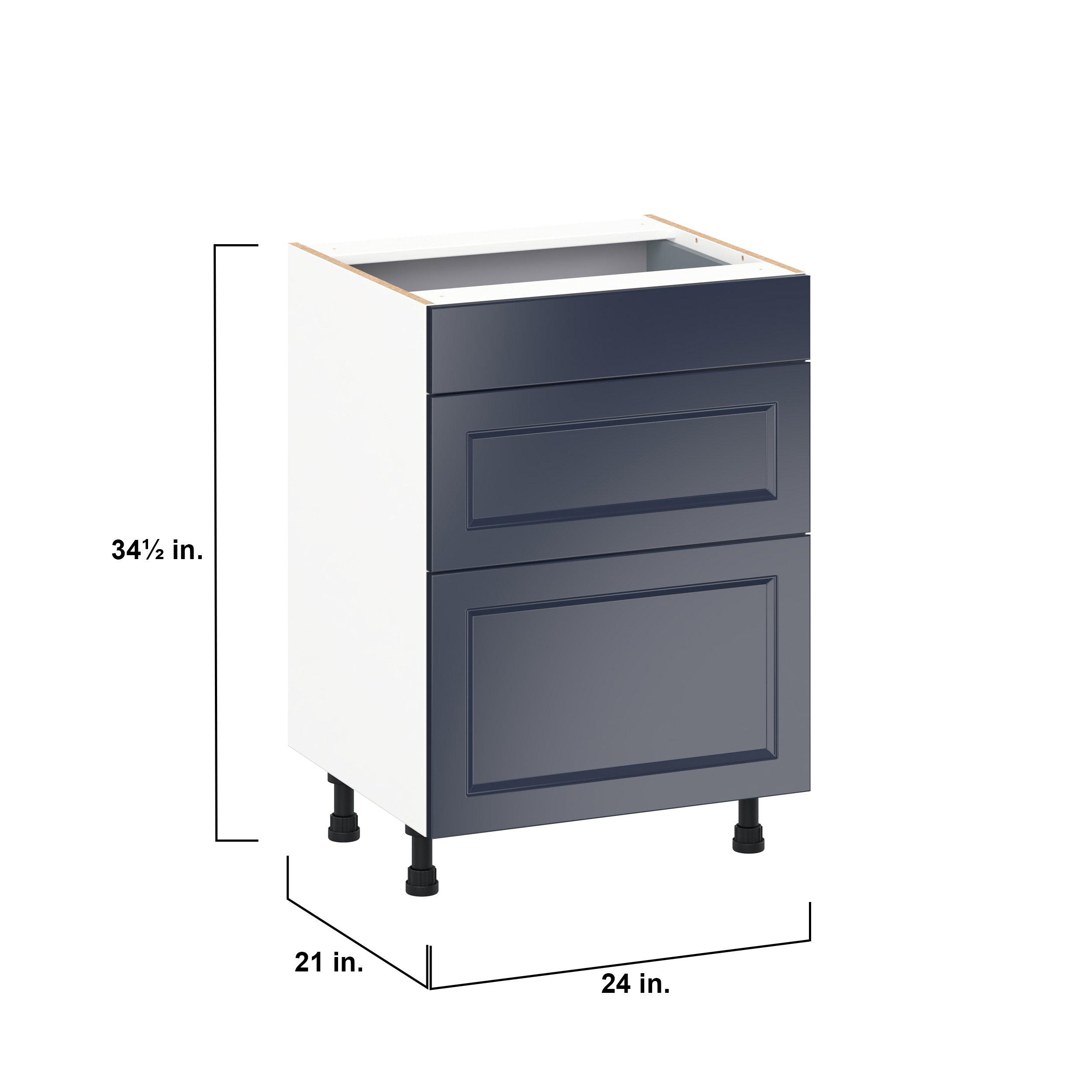 Make a statement with Peachtree premium painted shaker-inspired cabinets, offering both style and durability for years to come. Available in classic bright white and rich midnight blue, this collection is designed to fit seamlessly into both modern and transitional interiors. Crafted from one-piece MDF Studio Design Collection Peachtree 24 in. Painted Midnight Blue Vanity Drawer Base Cabinet is designed to resist hairline cracks while the easy-to-clean finish stands up to stains and moisture. Featuring 5-piece doors and dovetail drawer joints, these cabinets offer durability and elegance. This collection combines style with everyday storage solutions.
