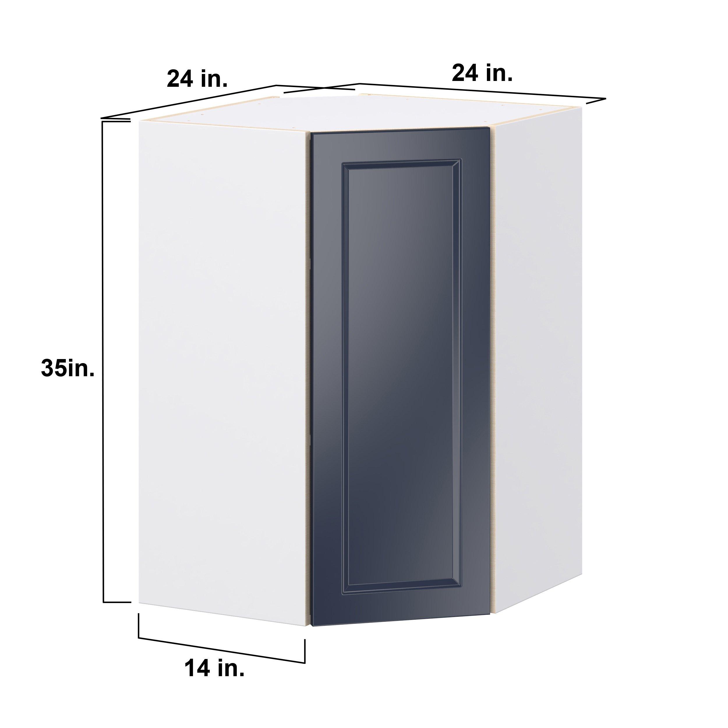Make a statement with Peachtree premium painted shaker-inspired cabinets, offering both style and durability for years to come. Available in classic bright white and rich midnight blue, this collection is designed to fit seamlessly into both modern and transitional interiors. Crafted from one-piece MDF Studio Design Collection Peachtree 24 in. Painted Midnight Blue Wall Angle Corner Cabinet is designed to resist hairline cracks while the easy-to-clean finish stands up to stains and moisture. Featuring 5-piece doors and dovetail drawer joints, these cabinets offer durability and elegance. This collection combines style with everyday storage solutions.