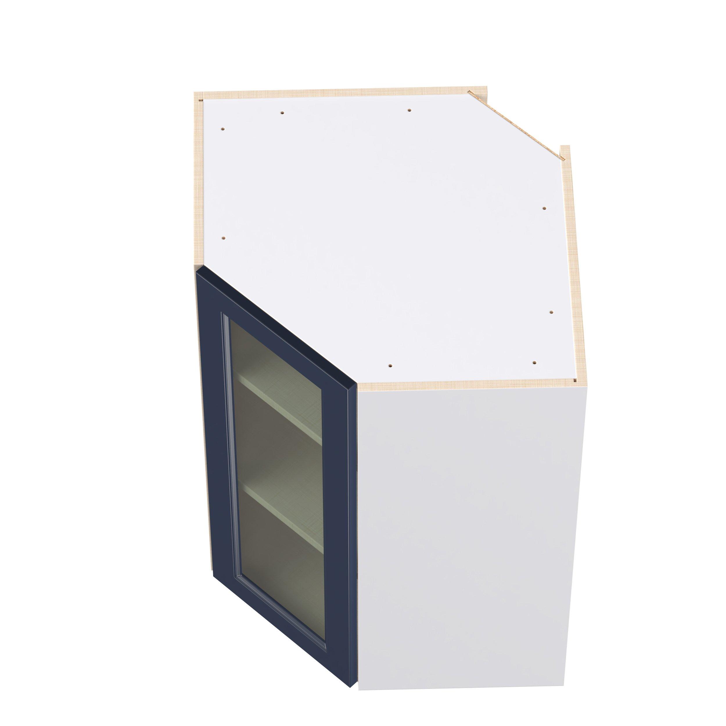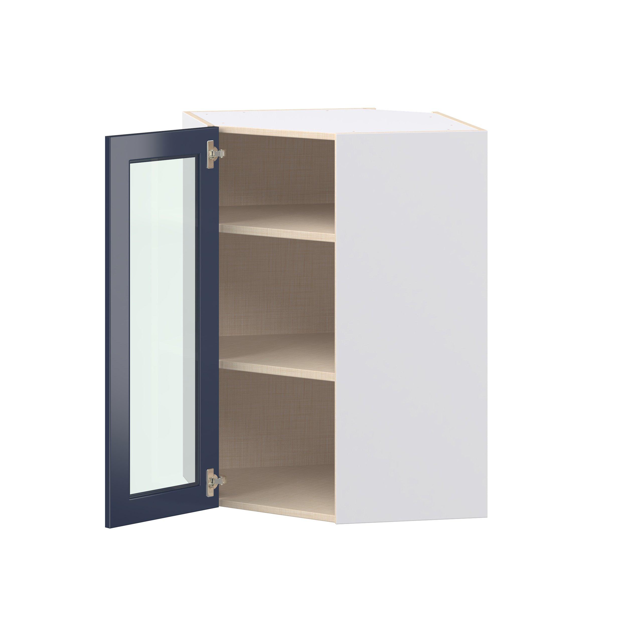 Make a statement with Peachtree premium painted shaker-inspired cabinets, offering both style and durability for years to come. Available in classic bright white and rich midnight blue, this collection is designed to fit seamlessly into both modern and transitional interiors. Crafted from one-piece MDF Studio Design Collection Peachtree 24 in. Painted Midnight Blue Wall Angle Corner Cabinet with Glass Door is designed to resist hairline cracks while the easy-to-clean finish stands up to stains and moisture. Featuring 5-piece doors and dovetail drawer joints, these cabinets offer durability and elegance. This collection combines style with everyday storage solutions.