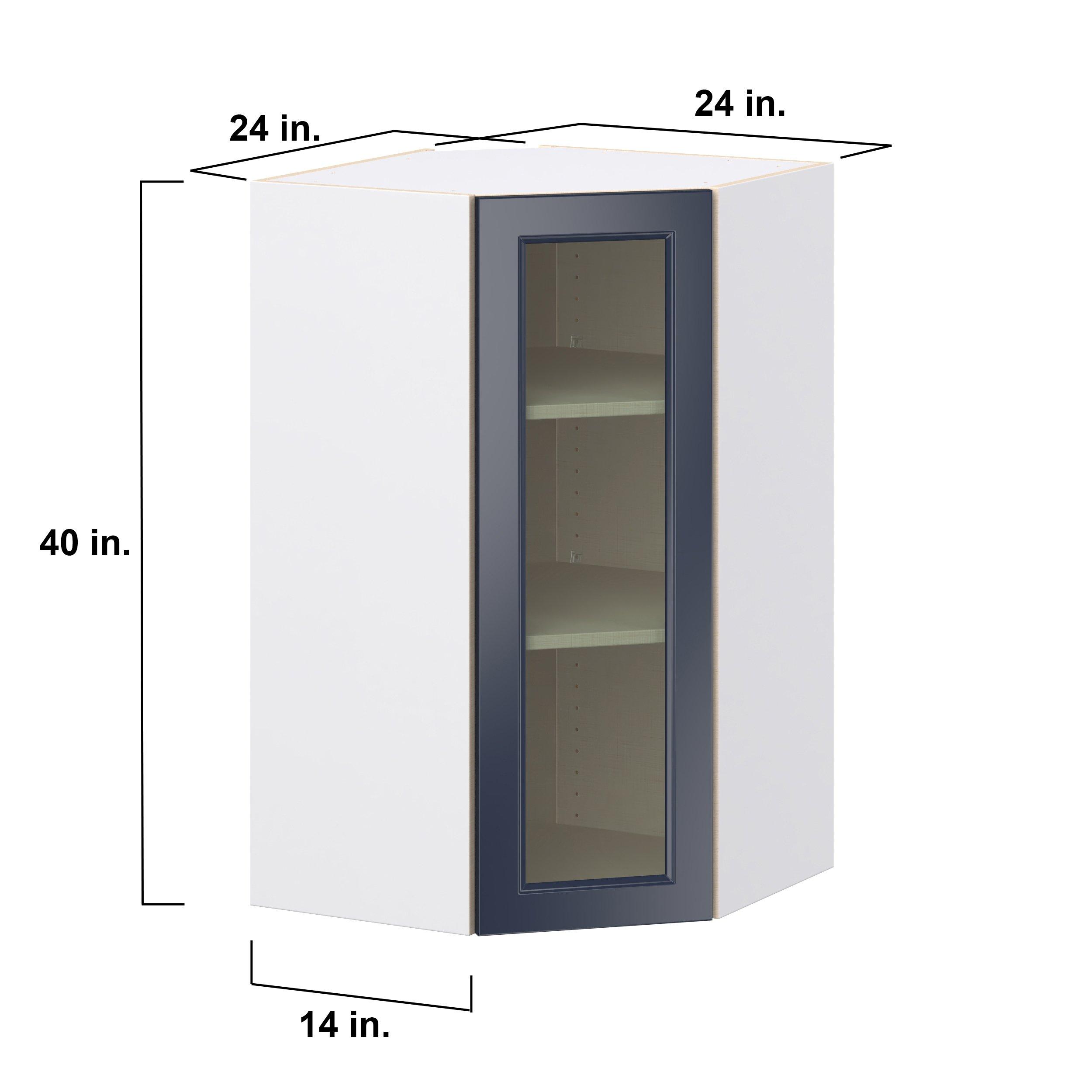 Make a statement with Peachtree premium painted shaker-inspired cabinets, offering both style and durability for years to come. Available in classic bright white and rich midnight blue, this collection is designed to fit seamlessly into both modern and transitional interiors. Crafted from one-piece MDF Studio Design Collection Peachtree 24 in. Painted Midnight Blue Wall Angle Corner Cabinet with Glass Door is designed to resist hairline cracks while the easy-to-clean finish stands up to stains and moisture. Featuring 5-piece doors and dovetail drawer joints, these cabinets offer durability and elegance. This collection combines style with everyday storage solutions.