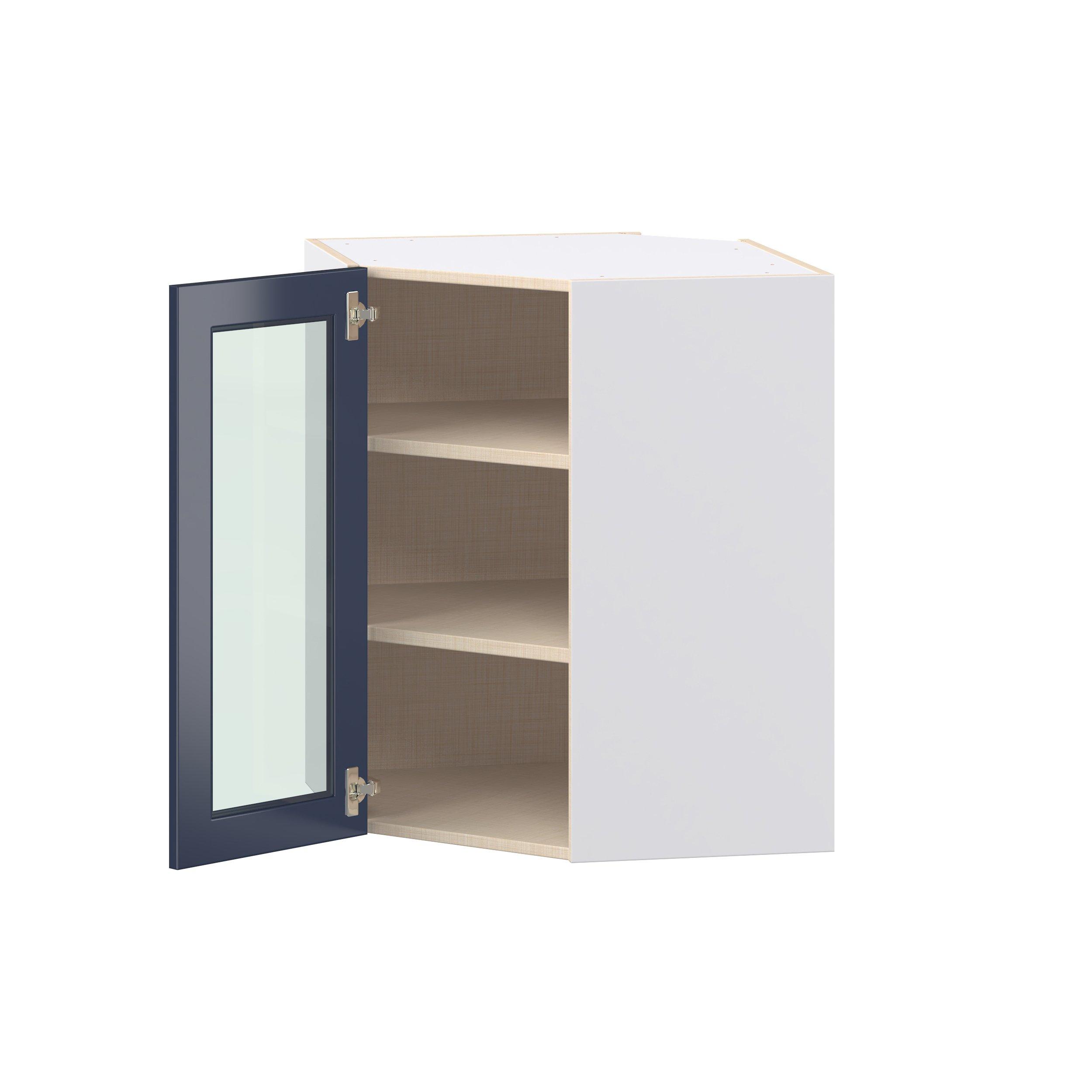 Make a statement with Peachtree premium painted shaker-inspired cabinets, offering both style and durability for years to come. Available in classic bright white and rich midnight blue, this collection is designed to fit seamlessly into both modern and transitional interiors. Crafted from one-piece MDF Studio Design Collection Peachtree 24 in. Painted Midnight Blue Wall Angle Corner Cabinet with Glass Door is designed to resist hairline cracks while the easy-to-clean finish stands up to stains and moisture. Featuring 5-piece doors and dovetail drawer joints, these cabinets offer durability and elegance. This collection combines style with everyday storage solutions.