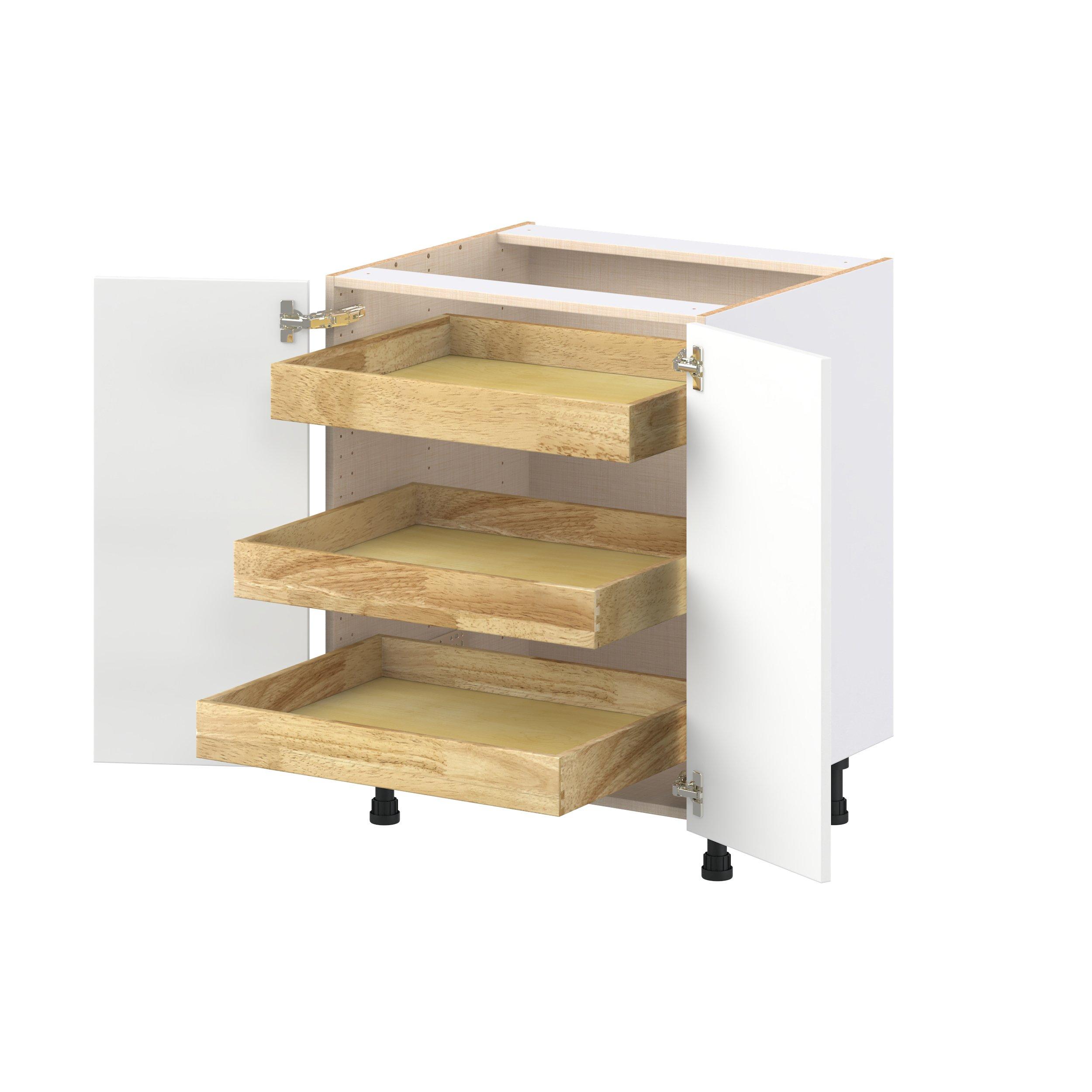 Make a statement with Peachtree premium painted shaker-inspired cabinets, offering both style and durability for years to come. Available in classic bright white and rich midnight blue, this collection is designed to fit seamlessly into both modern and transitional interiors. Crafted from one-piece MDF Studio Design Collection Peachtree 27 in. Painted Bright White Base Cabinet with Inner Pull-Out Drawer is designed to resist hairline cracks while the easy-to-clean finish stands up to stains and moisture. Featuring 5-piece doors and dovetail drawer joints, these cabinets offer durability and elegance. This collection combines style with everyday storage solutions.